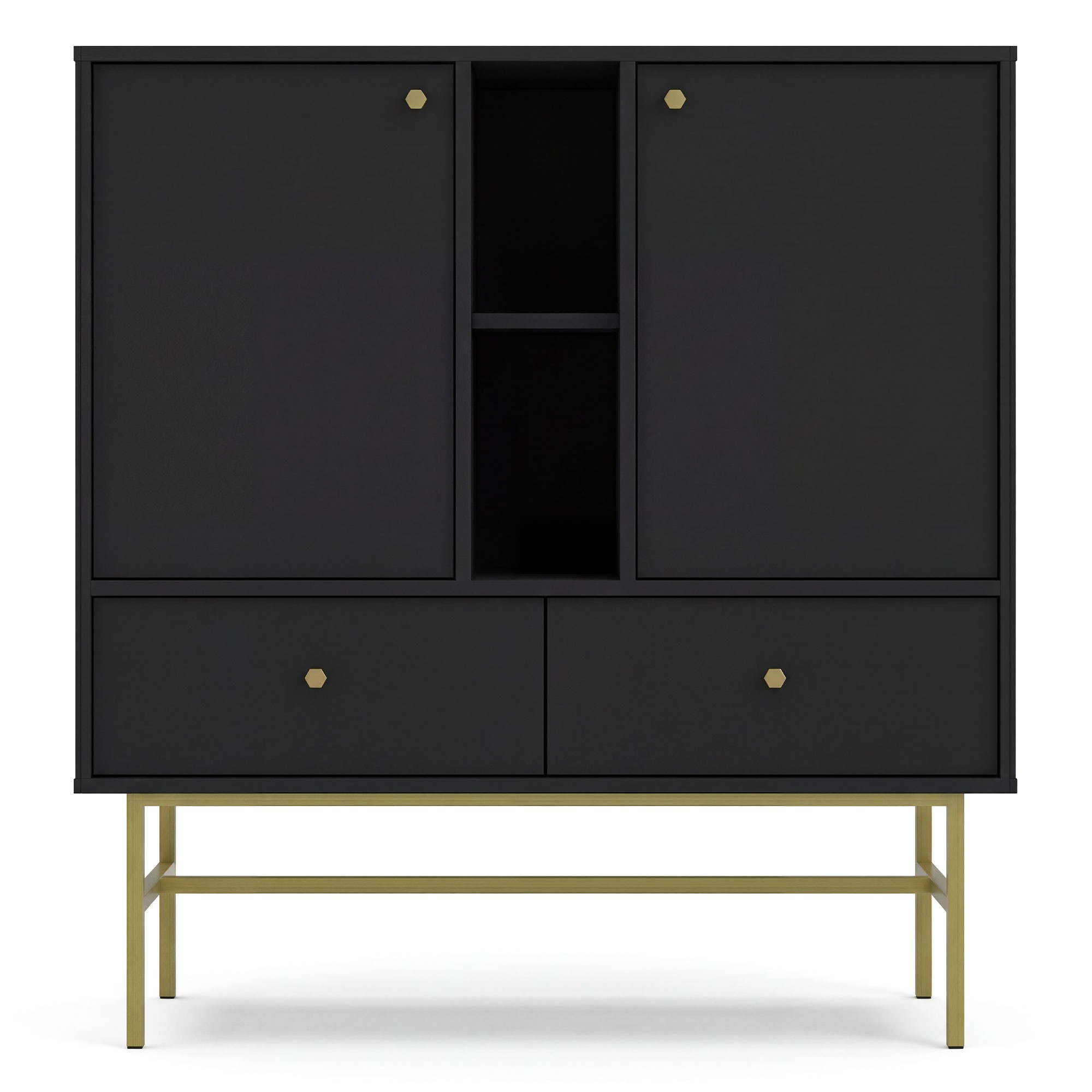 Komoda TOKYO 3 2F2S | Typ 825 | Czarny grafit | Złoty stelaż