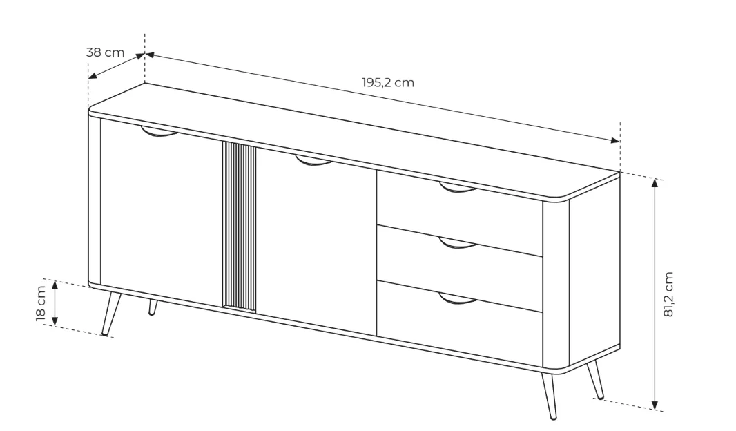 Komoda 195 2D3S VERIS dąb dunin + czarna to wyjątkowy mebel, który łączy w sobie elegancję, nowoczesny charakter i funkcjonalność, tworząc idealne rozwiązanie do stylowych wnętrz. Jej solidny korpus został wykonany z wysokiej jakości materiałów, dzięki czemu komoda zachwyca trwałością i odpornością na codzienne użytkowanie. Fronty w dekorze dąb dunin wzbogacone zostały o efektowną ryflowaną wstawkę, która nadaje całości wyjątkowej głębi i eleganckiego wyrazu. W połączeniu z czarnymi akcentami mebel prezentuje się niezwykle stylowo i doskonale wpisuje się w aktualne trendy wnętrzarskie. Przemyślana konstrukcja komody oferuje wiele praktycznych rozwiązań do przechowywania. Trzy pojemne szuflady umieszczone na prowadnicach kulkowych z pełnym wysuwem gwarantują wygodny dostęp do zawartości, a dwie zamykane szafki z półkami zapewniają idealne miejsce na rzeczy, które chcesz mieć zawsze uporządkowane i pod ręką. Całość uzupełniają stabilne, czarne nogi wykonane z metalu i malowane proszkowo, które nie tylko podkreślają nowoczesny wygląd mebla, ale także zapewniają mu doskonałą stabilność. Delikatnie zaokrąglone krawędzie dodają subtelnej elegancji i zwiększają bezpieczeństwo użytkowania, a ciche zawiasy sprawiają, że korzystanie z mebla jest wyjątkowo komfortowe. Komoda VERIS 195 2D3S to mebel, który stanie się ozdobą każdego wnętrza – od nowoczesnego salonu, przez elegancką jadalnię, aż po przestrzeń biurową czy pokój dzienny. Jej uniwersalny design i połączenie ciepłego odcienia drewna z ponadczasową czernią sprawiają, że pasuje do wielu aranżacji i tworzy harmonijną całość w każdym wnętrzu. To nie tylko praktyczny element wyposażenia, ale także designerski akcent, który podkreśli charakter Twojego domu i nada mu wyjątkowego stylu.
