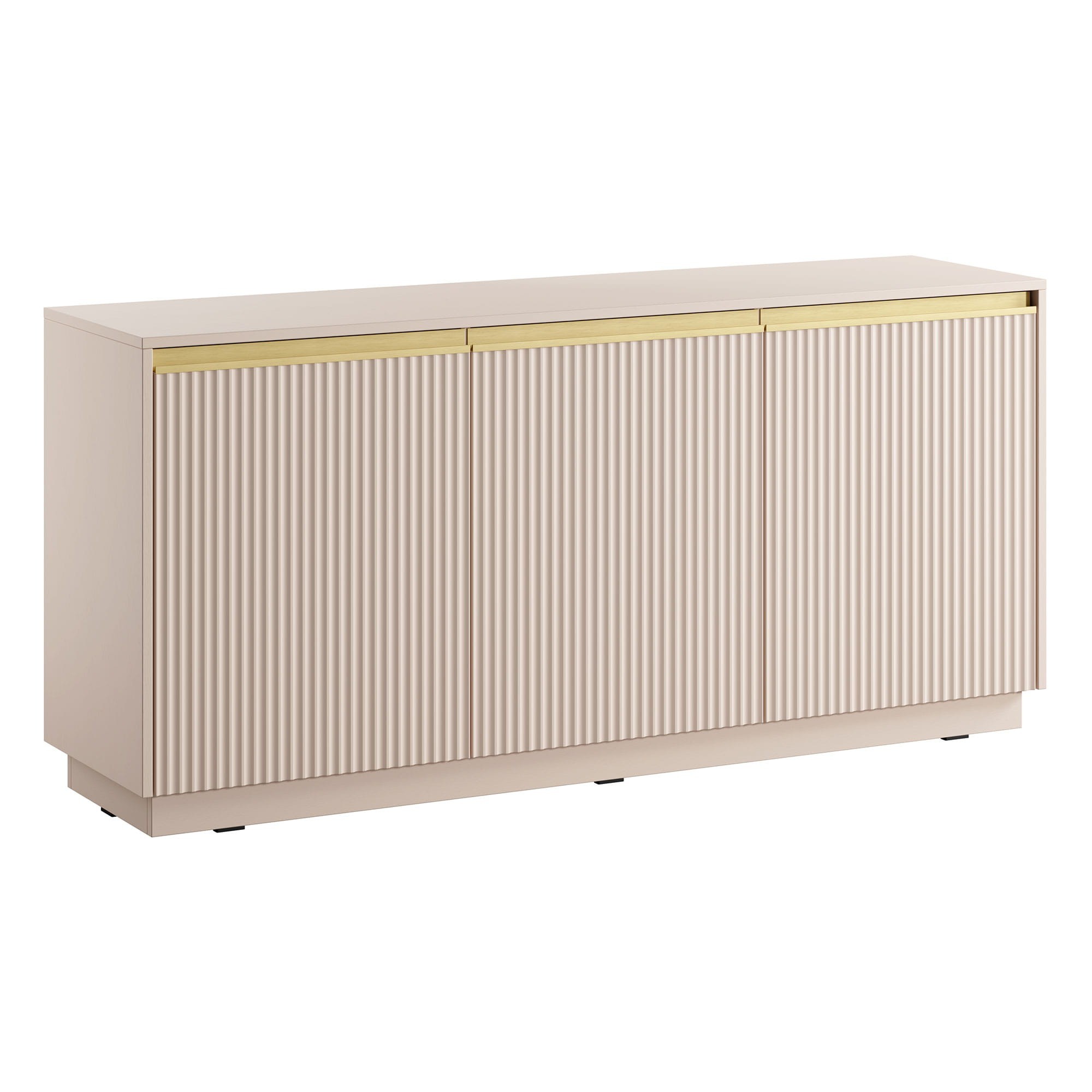 Beżowa komoda frezowana trzydrzwiowa ROYAL K-154 złote detale, nowoczesny styl