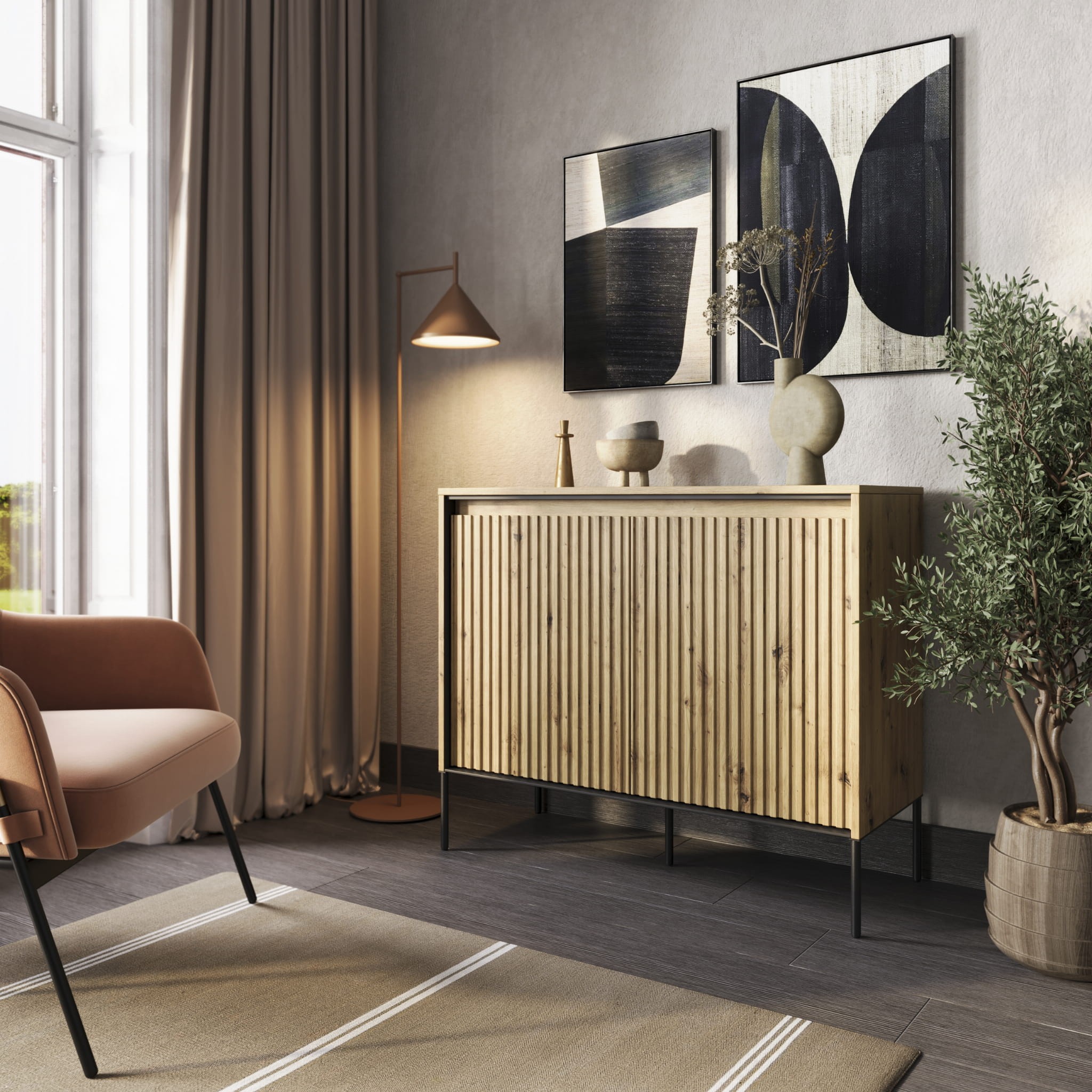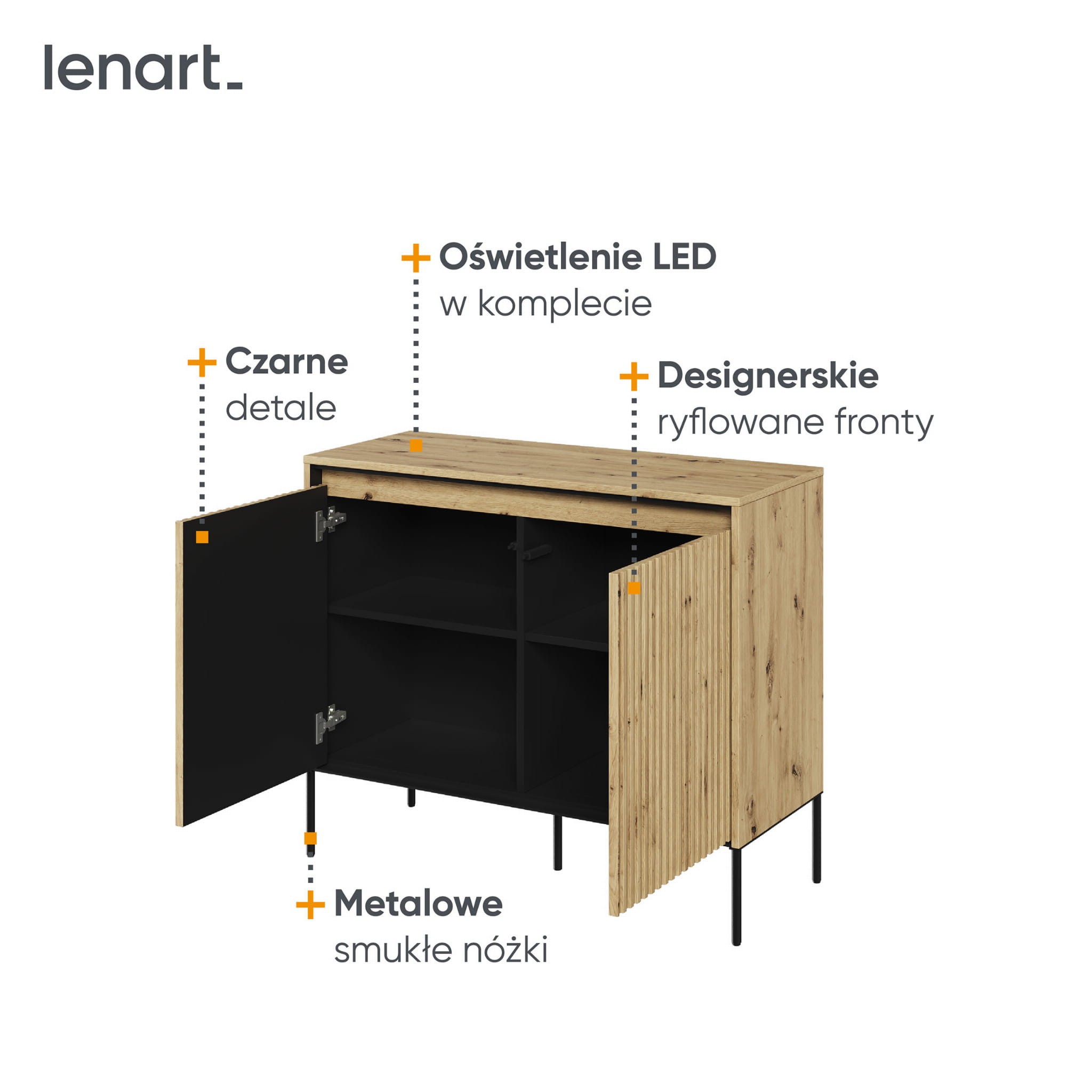Komoda frezowana TREND 02 dąb artisan/czarne nogi
