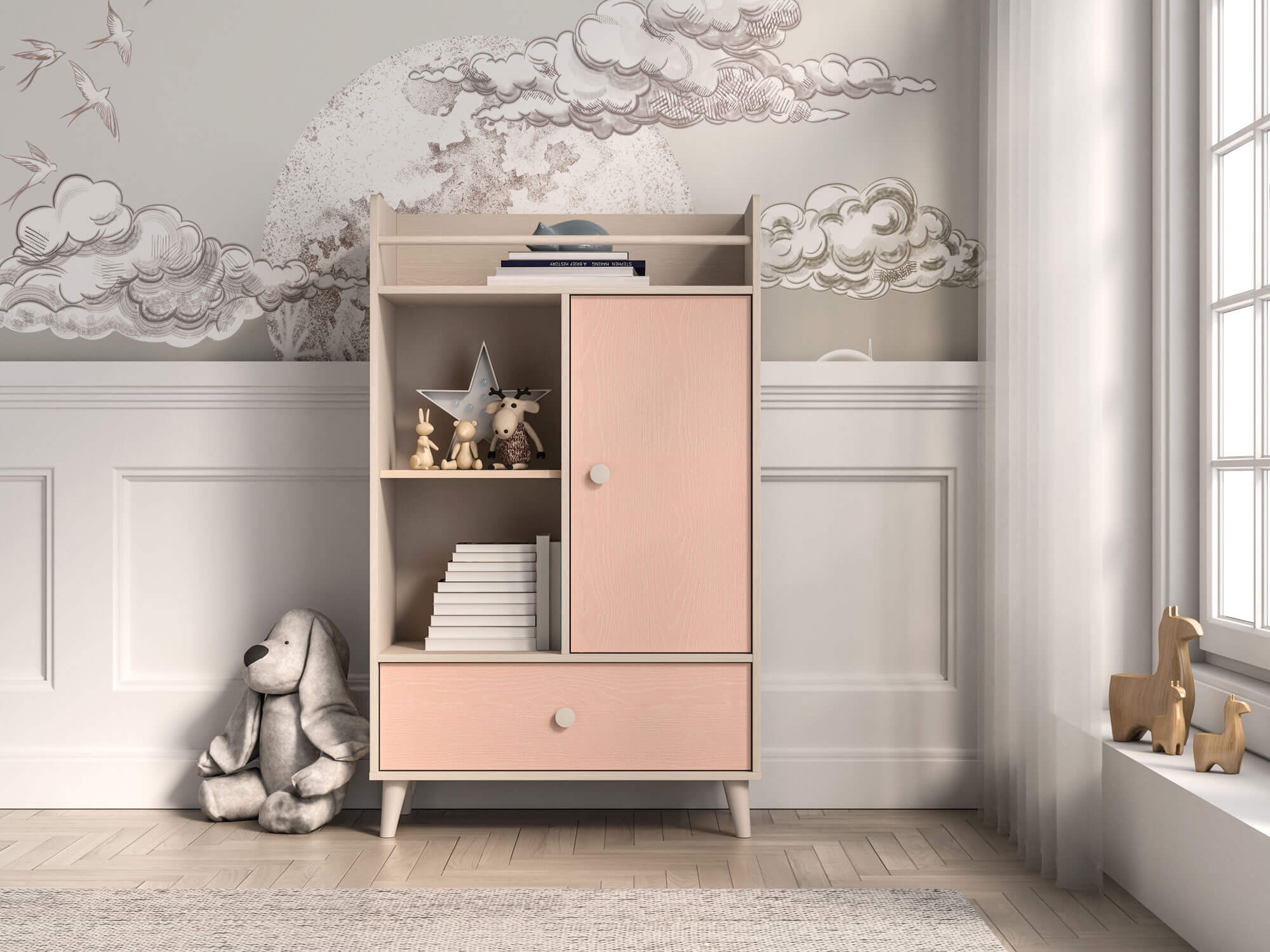 Komoda młodzieżowa MEVEL 04 | Różowy, piaskowy beż