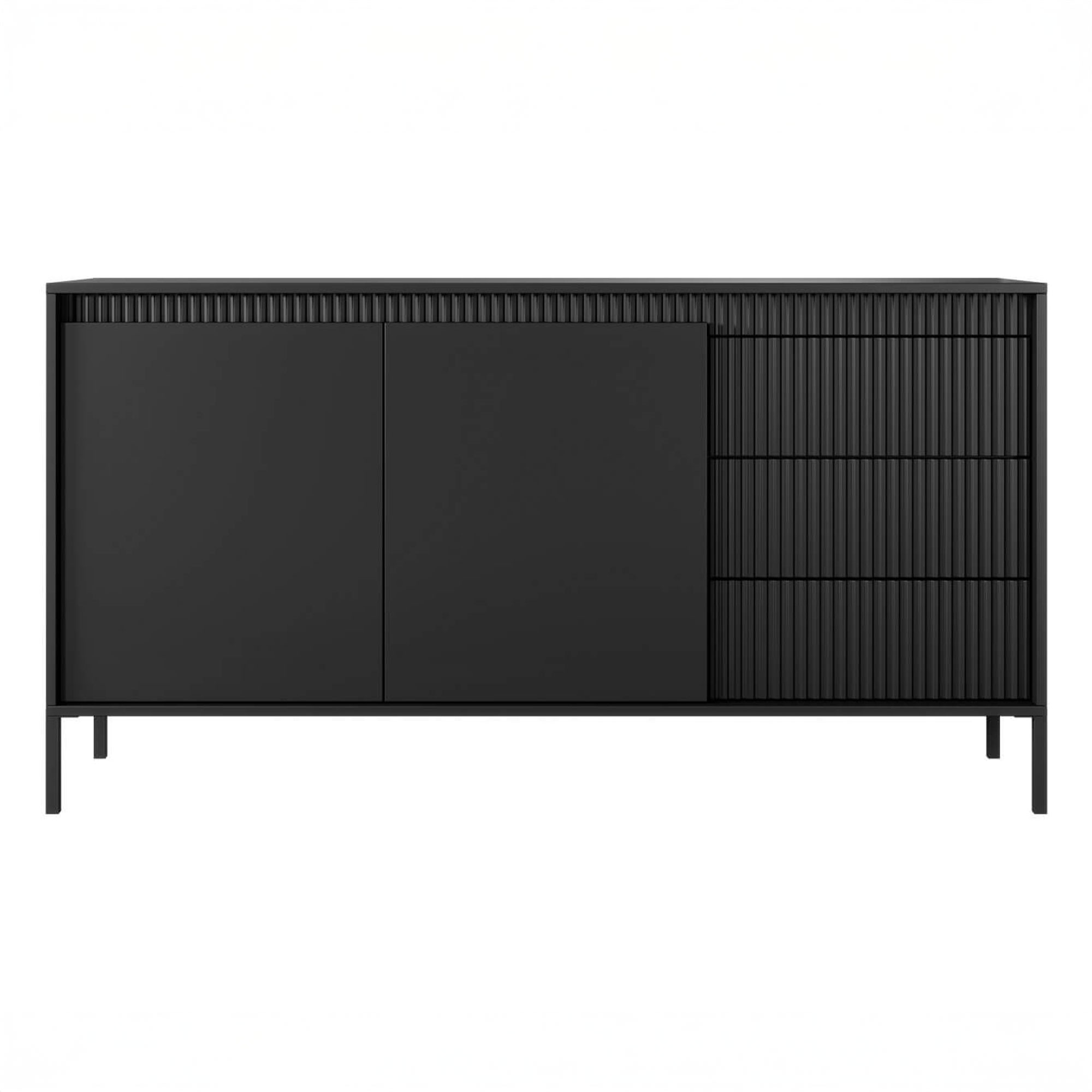 Komoda nowoczesna ryflowana czarna SENSO 153cm, dwudrzwiowa, 3 szuflady