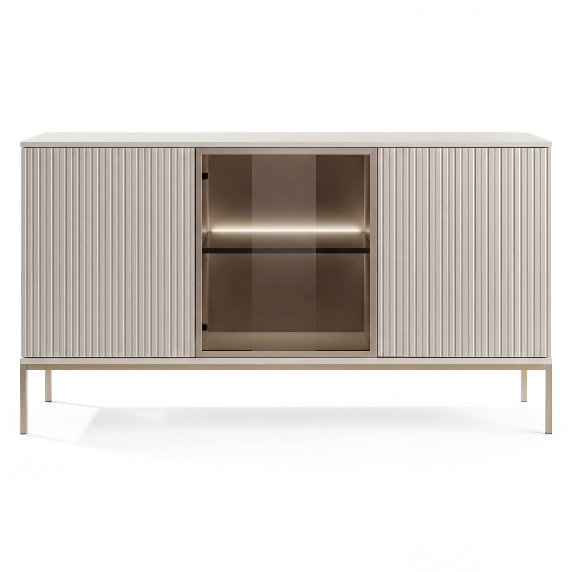 Komoda ryflowana SENTO K154 | Oświetlenie LED | Kaszmir | Nogi szampańskie