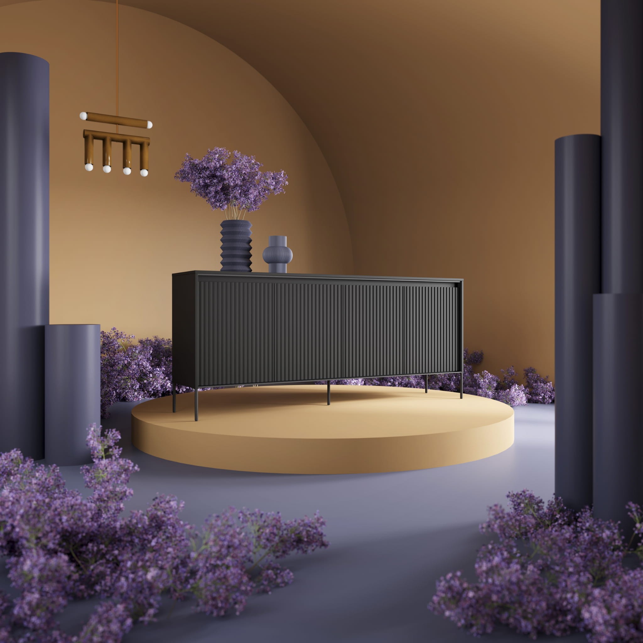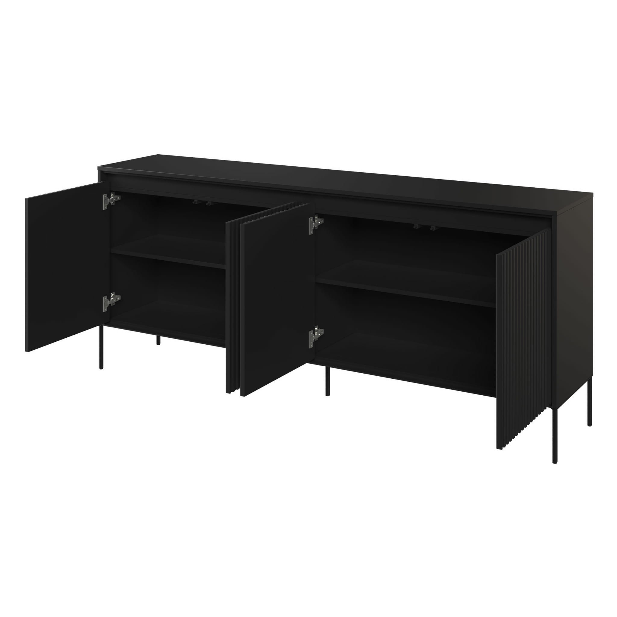 Komoda ryflowana TREND 04 czarny/czarne nogi