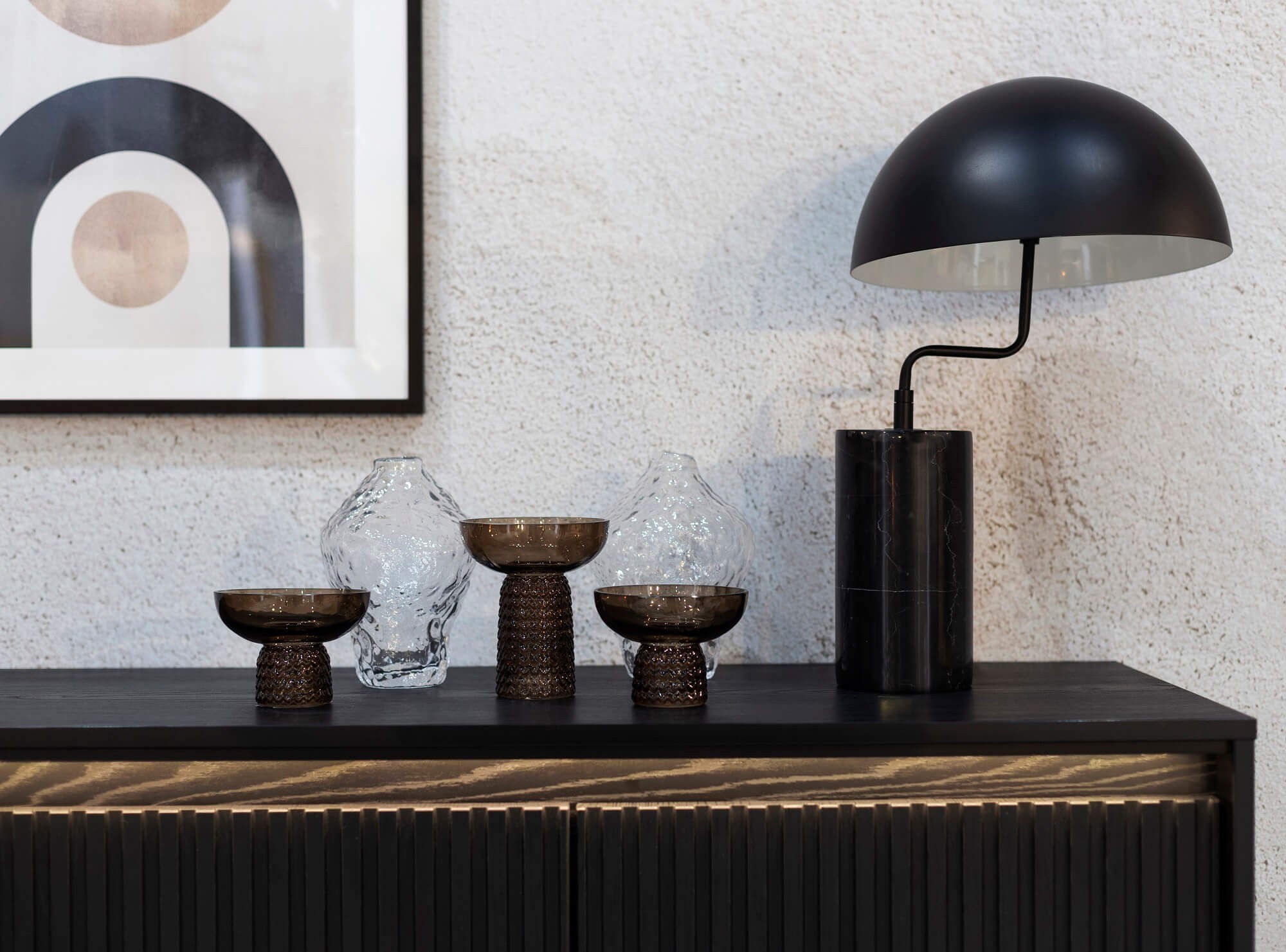 Kolekcja TREND to kompozycja dziesięciu niezależnych brył, wśród których znajdziesz pakowne komody, szafki pod telewizor, stoliki czy przepiękne witryny. Beż piaskowy, szarość, biel, czerń czy dąb artisan to barwy, które sprawiają, że cechuje je wyjątkowa uniwersalność. Detalem, który dodaje pazura jest starannie wykonane frezowanie. Wyróżniam także 3 rodzaje ryfli w zależności od kolorystyki: dąb artisan i czarny - frezowanie proste, biały i szary - półkole, a meble w kolorze beżu - frez w postaci półwałka. Każdy mebel wyposażony jest również w oświetlenie LED podkreślające designerski front.
