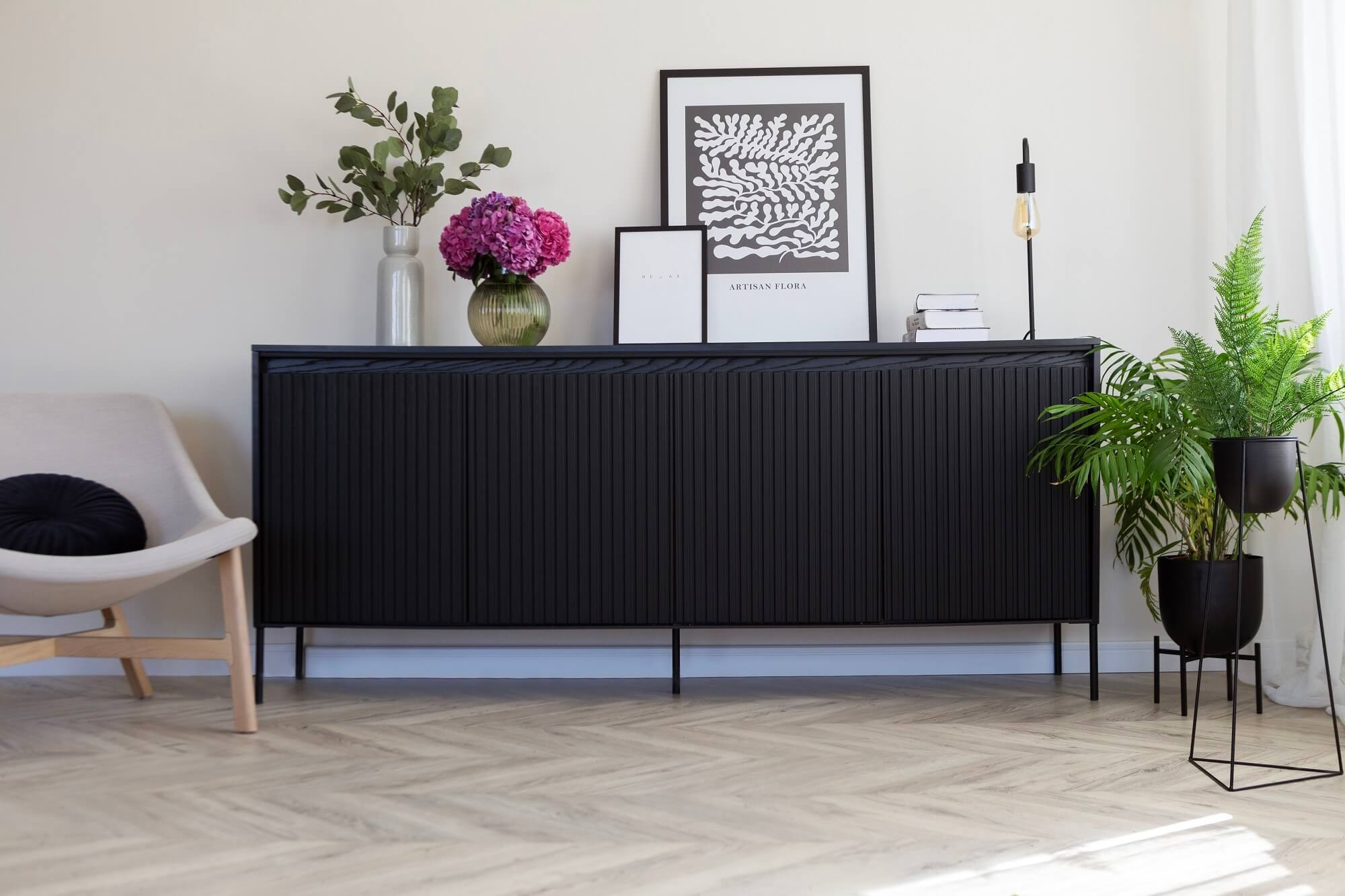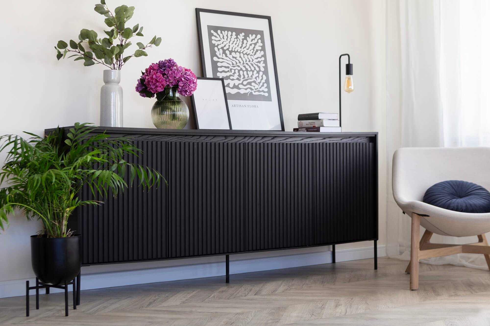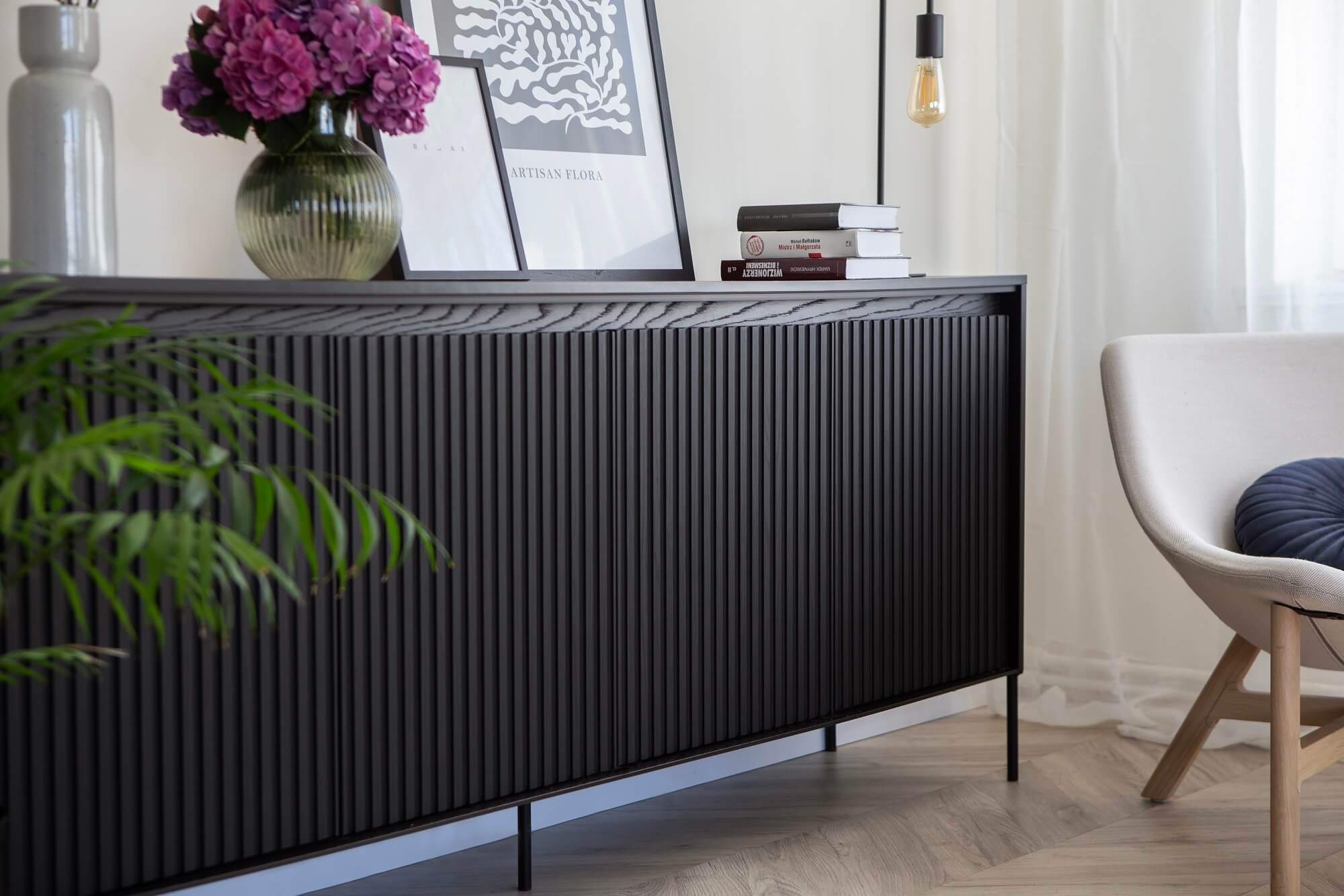 Komoda ryflowana TREND 04 marki MebleMWM zaprasza Cię do świata nowoczesnego i wyjątkowo stylowego designu. Jej elegancki design, wyrażony w głębokim czarnym kolorze, idealnie komponuje się w każdym nowoczesnym wnętrzu, nadając mu dyskretną, a zarazem wyrafinowaną elegancję. Wykorzystanie oświetlenia LED w tym modelu to prawdziwy majstersztyk, który podkreśla jej wyjątkowy charakter i dodaje komodzie niepowtarzalnego blasku. Delikatne frezowanie frontów według najnowszych trendów, w połączeniu z czarnymi, metalowymi nogami, tworzy wyjątkowe połączenie nowoczesności i klasyki, które przyciąga uwagę. Dzięki przemyślanemu projektowi komoda TREND 04 oferuje nie tylko estetyczne doznania, ale także funkcjonalność na najwyższym poziomie. Uchwyty typu push-open oraz zawiasy puszkowe clipowe czynią jej użycie prawdziwą przyjemnością. Niezależnie od tego, czy ta stylowa komoda ryflowana znajdzie miejsce w Twoim salonie, czy sypialni, wzbogaci wnętrze o niepowtarzalny klimat. Wyraź swój styl z MeblamiMWM, wybierając elegancki design, który łączy estetykę z funkcjonalnością, tworząc przestrzeń o niespotykanej dynamice.