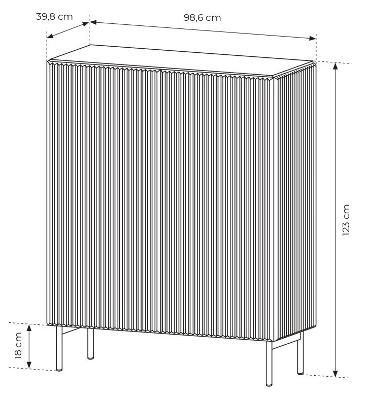 Komoda wysoka 2D z kolekcji MUTI w kolorze czarnym to propozycja dla osób, które cenią nowoczesny design połączony z praktyczną funkcjonalnością. Jej solidny korpus wsparty na smukłych, metalowych nóżkach prezentuje się lekko i elegancko, a jednocześnie zapewnia stabilność i trwałość na lata. Charakterystyczne, ryflowane fronty i boki nadają meblowi wyjątkowego, designerskiego wyrazu, który przyciąga wzrok i wprowadza do wnętrza nutę luksusu. Czarne, matowe wykończenie podkreśla ponadczasowy styl, dzięki czemu komoda doskonale odnajdzie się zarówno w aranżacjach nowoczesnych, jak i loftowych. Za podwójnymi drzwiami kryje się przestronne wnętrze z sześcioma funkcjonalnymi półkami, które pozwalają na wygodne przechowywanie i utrzymanie porządku w domu. To idealne miejsce na książki, dokumenty czy dekoracyjne dodatki, które w tak eleganckiej oprawie nabierają wyjątkowego charakteru. Dyskretny system otwierania drzwi podkreśla minimalistyczny charakter mebla, a starannie dopracowane detale sprawiają, że całość prezentuje się niezwykle estetycznie. Komoda wysoka 2D MUTI to nie tylko piękny element wystroju, ale także gwarancja jakości – wykonana z trwałych materiałów, zachowa swój nienaganny wygląd przez wiele lat użytkowania. Jej uniwersalny design sprawia, że wpasuje się zarówno w przestronne salony, nowoczesne jadalnie, jak i stylowe biura. To mebel, który łączy elegancję, funkcjonalność i ponadczasowy charakter, stając się wyjątkowym dopełnieniem każdej aranżacji.