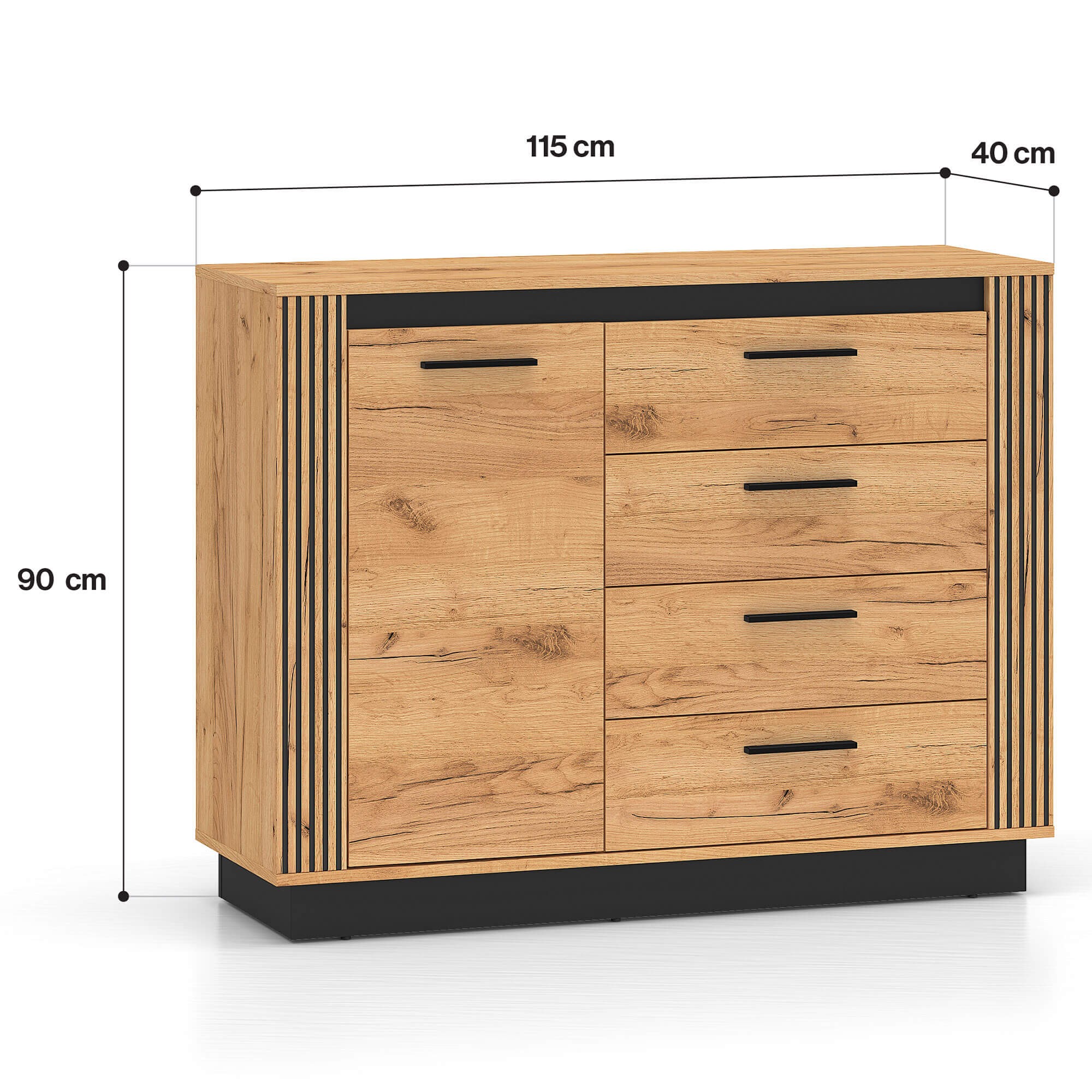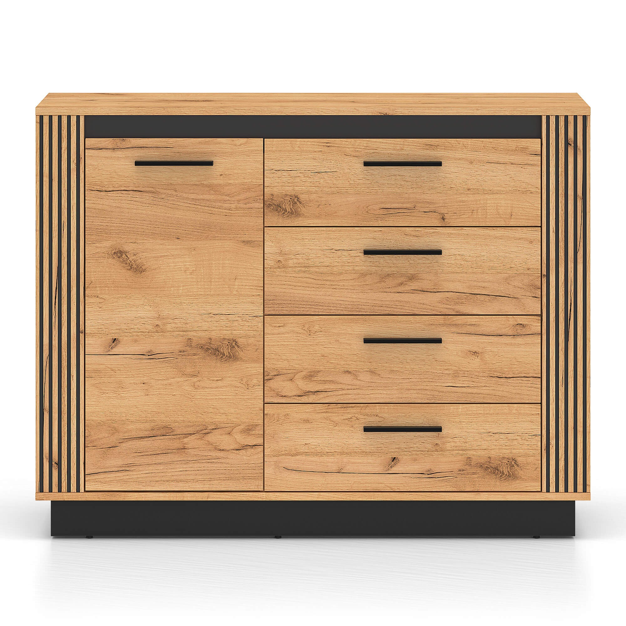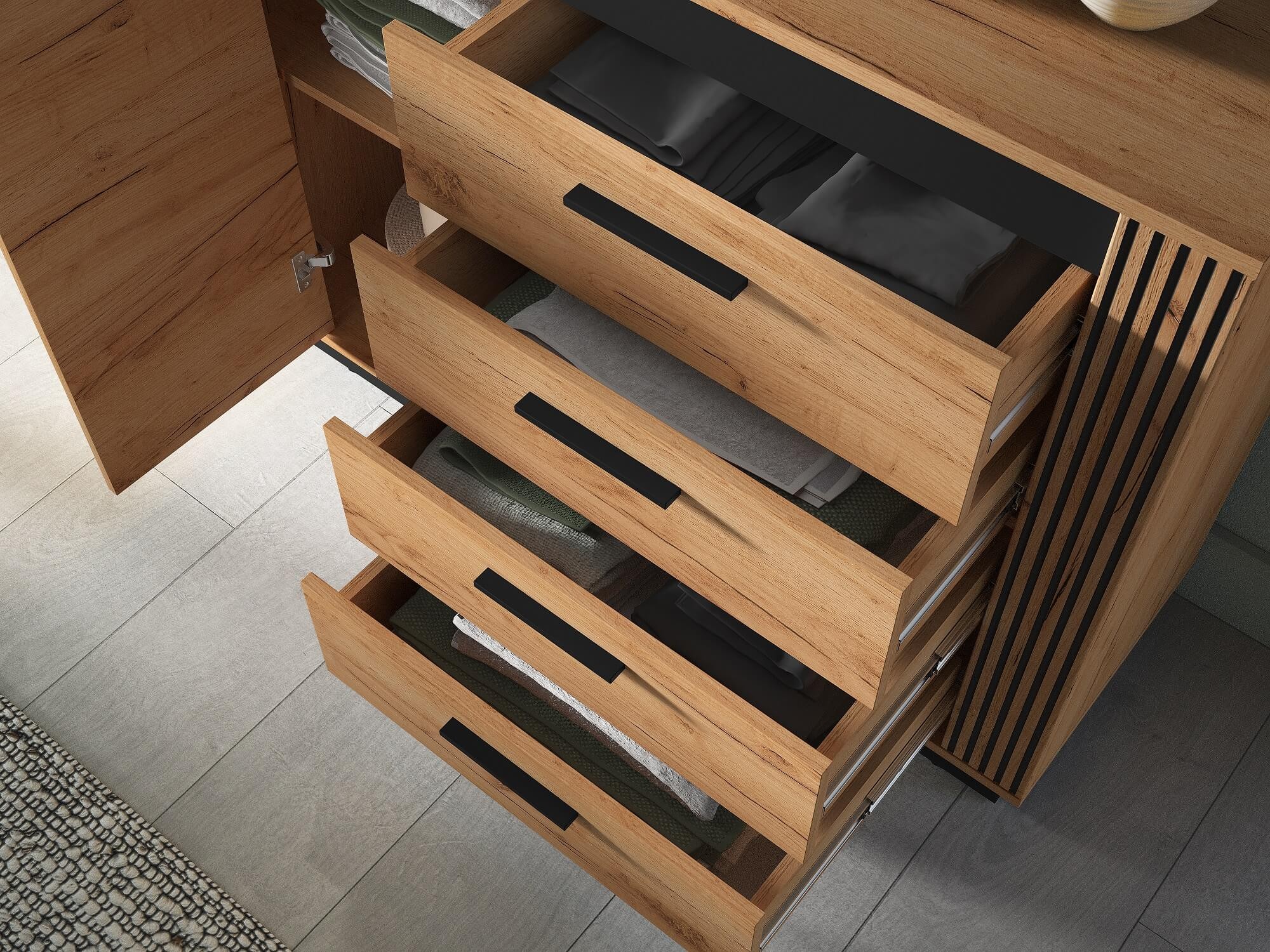 Komoda z lamelami URSO 07 | Dąb craft złoty, czarny