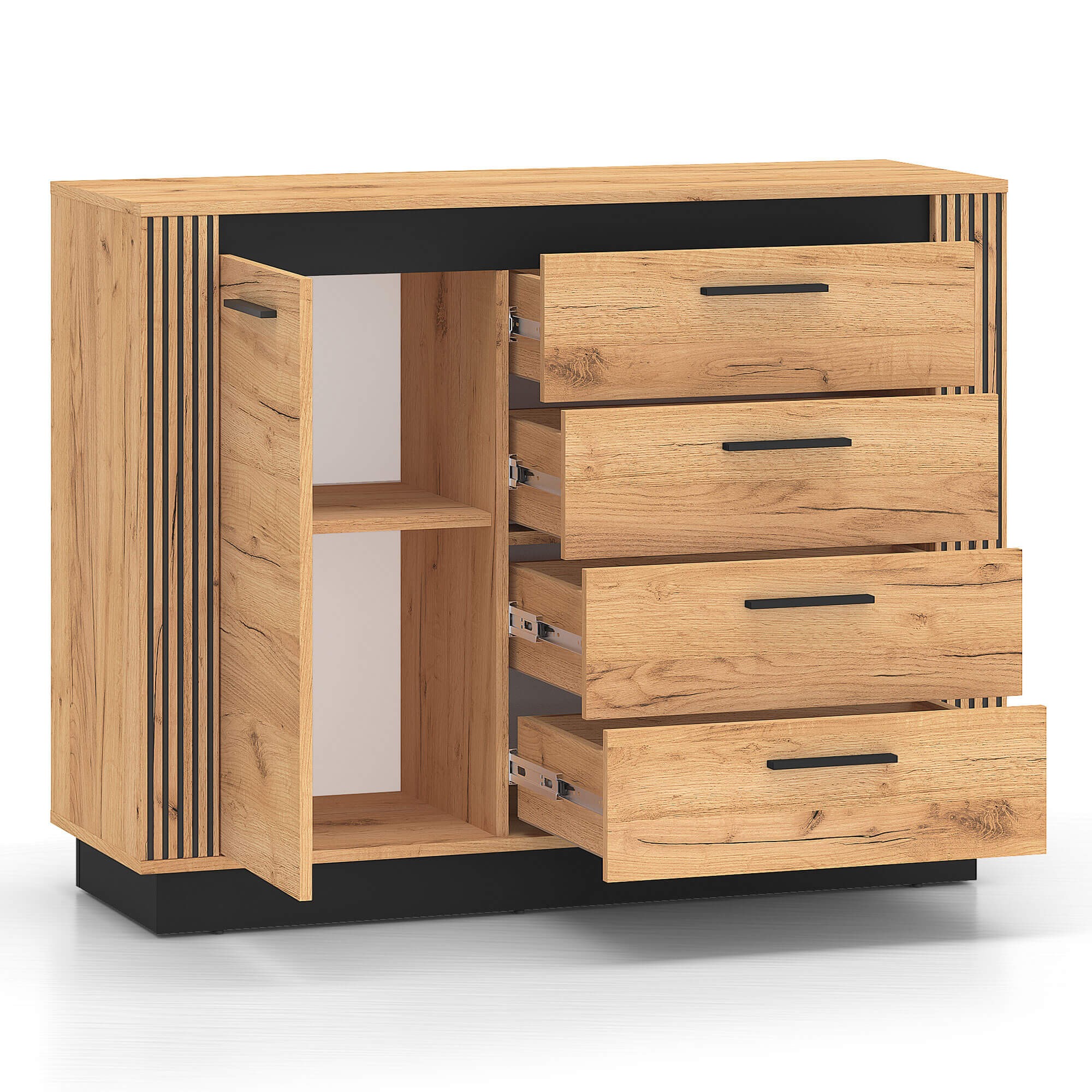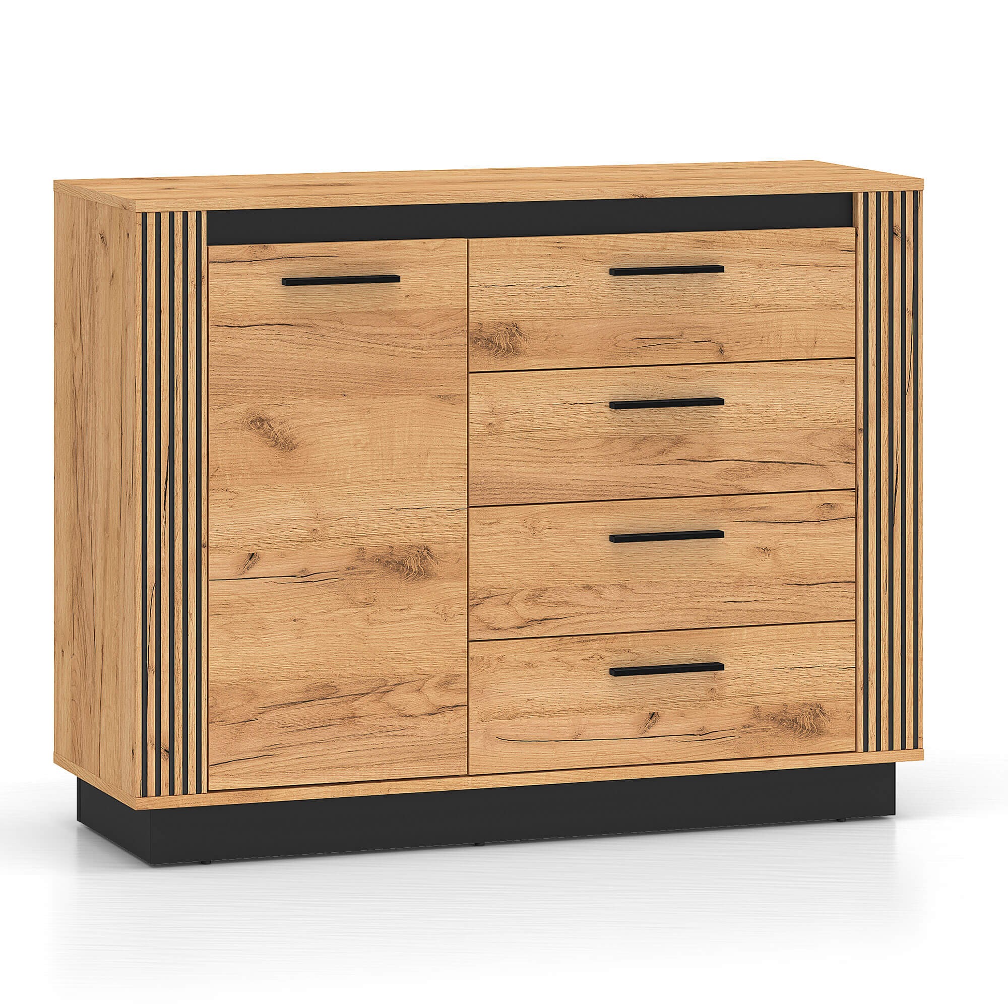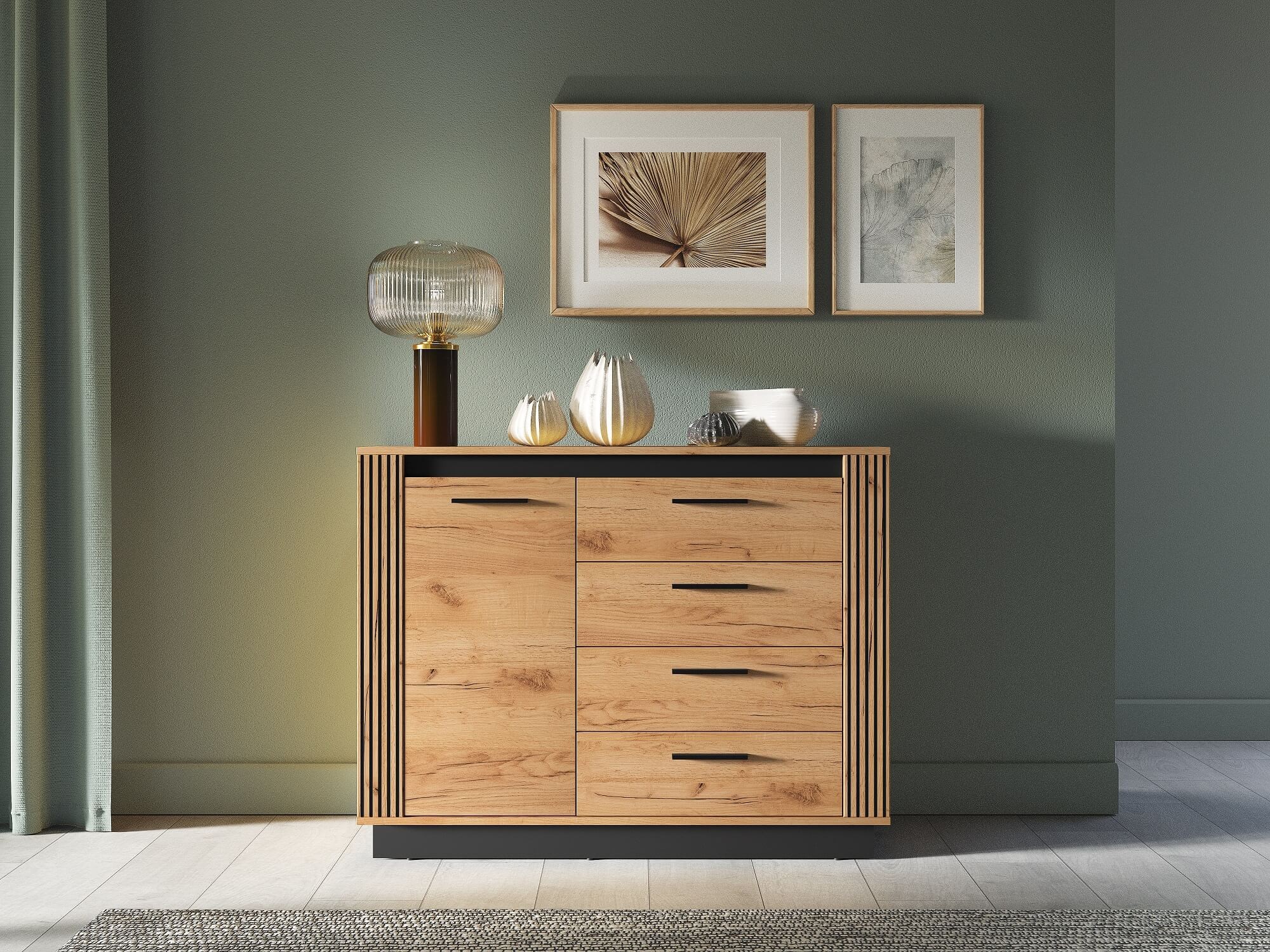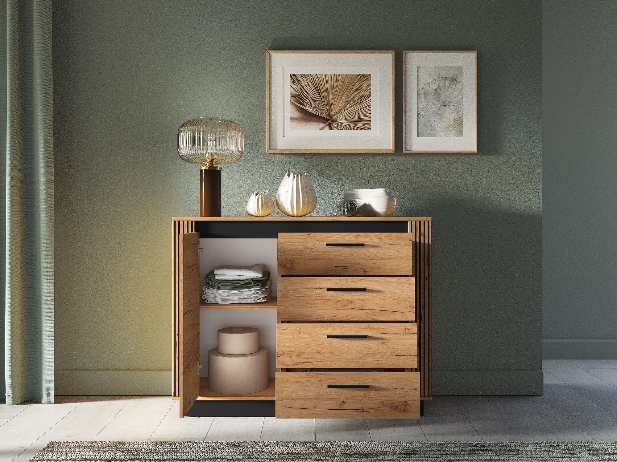 Komoda z lamelami URSO 07 | Dąb craft złoty, czarny