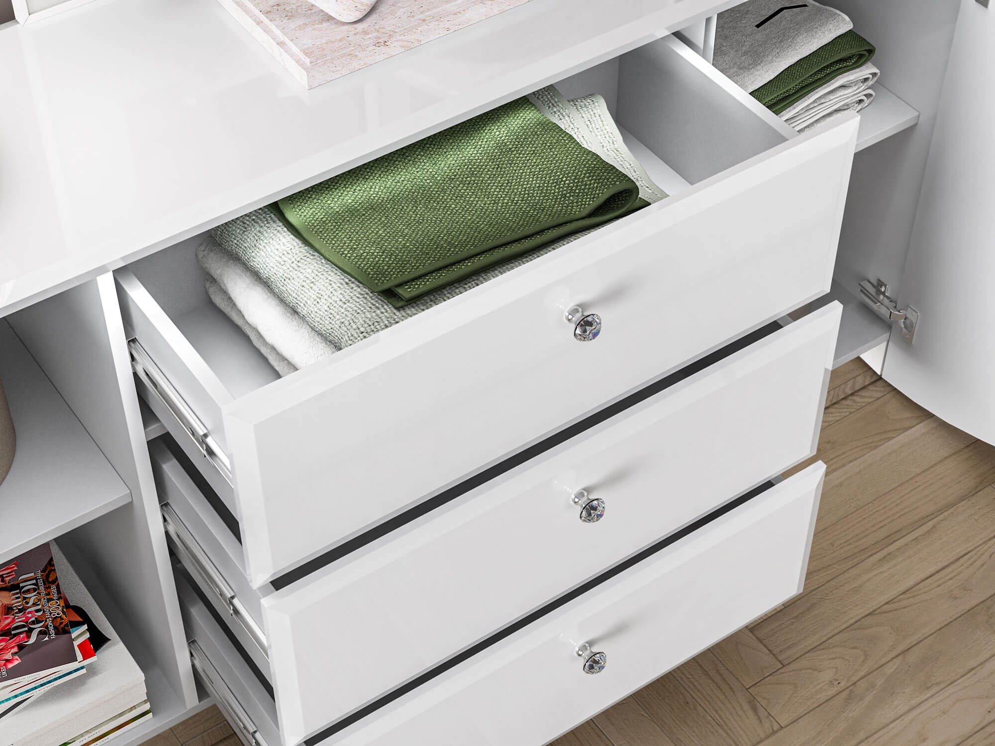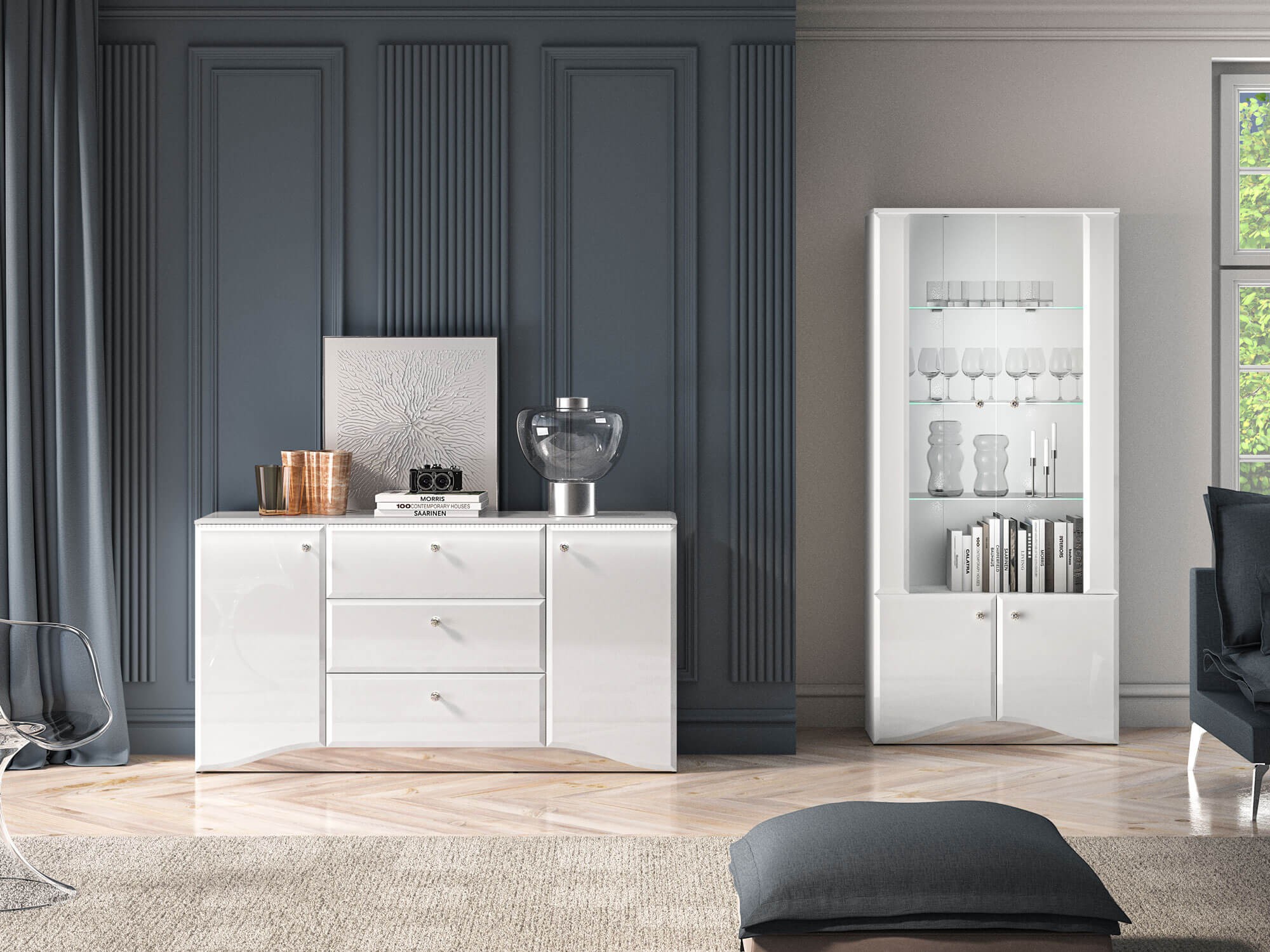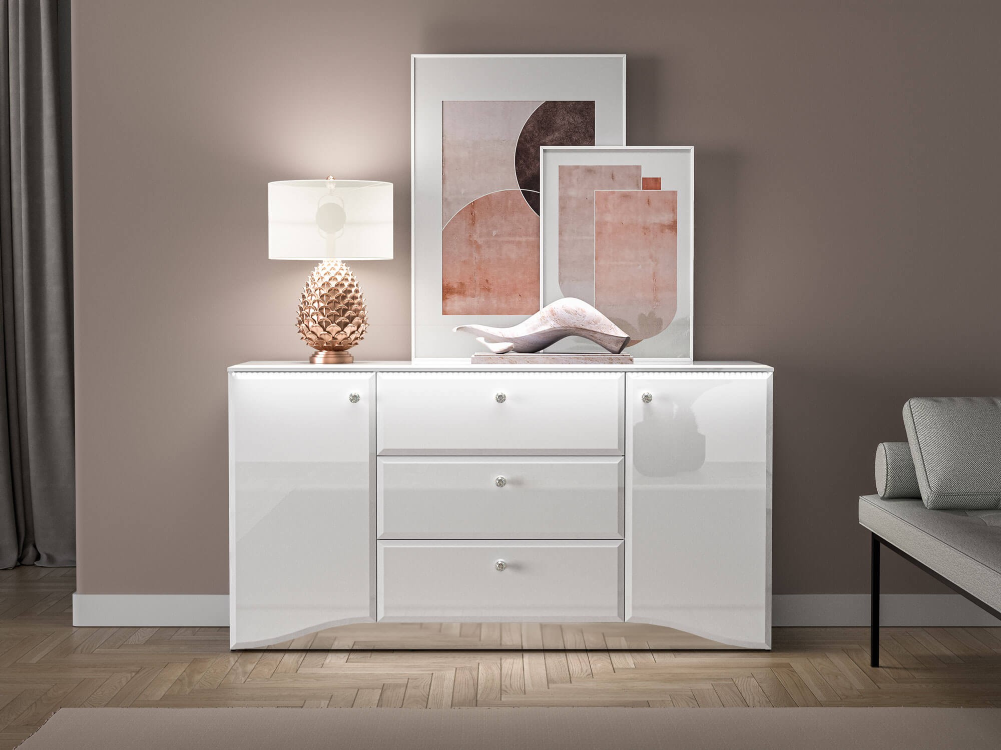 Komoda z oświetleniem LED GLAMOUR 02 | 160cm | Biały połysk
