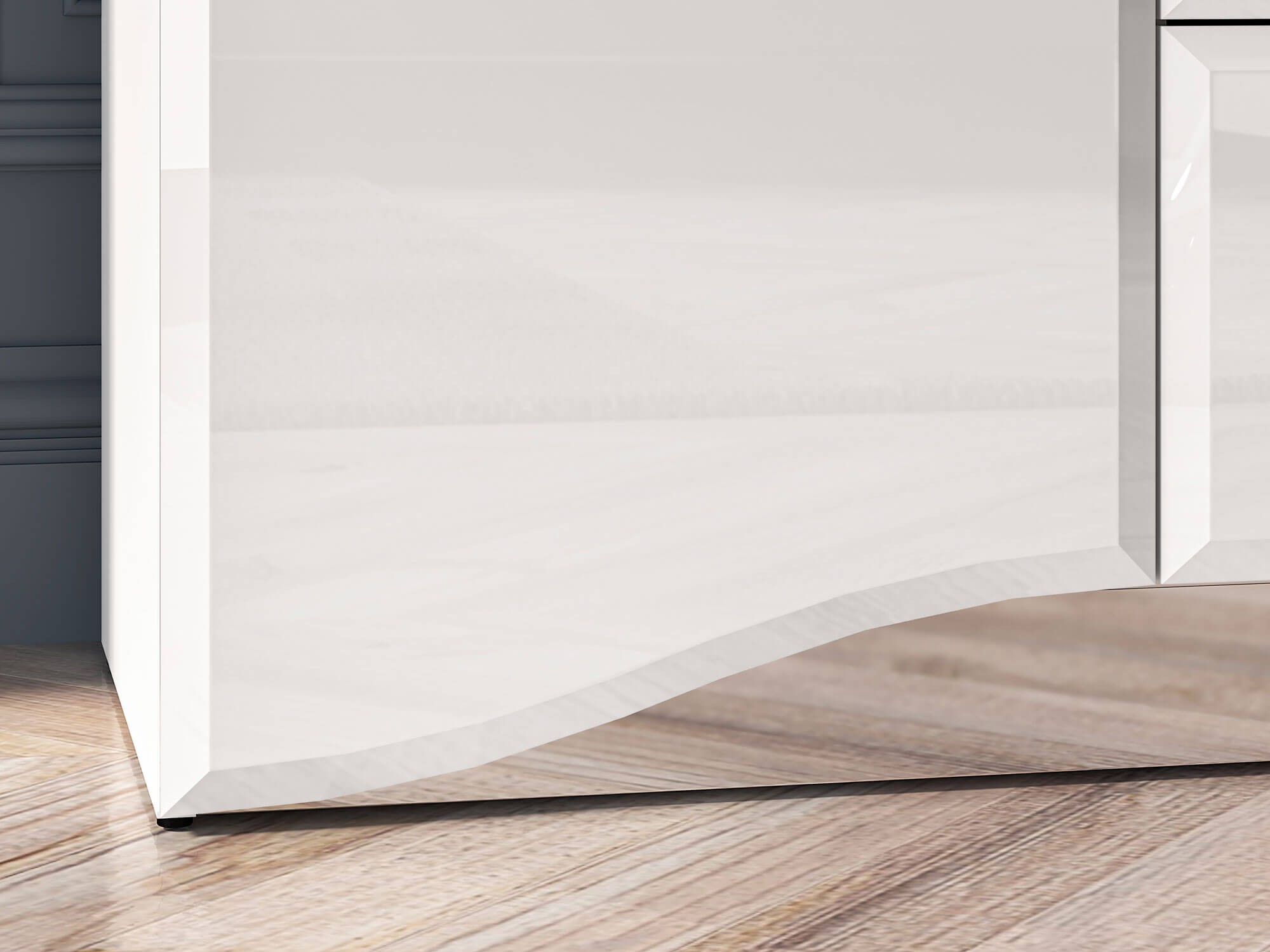 | Kolor: | Front: Biały połysk Korpus: Biały alpejski + MDF biały połysk Lustrzany cokół: MDF Metal chromowany |