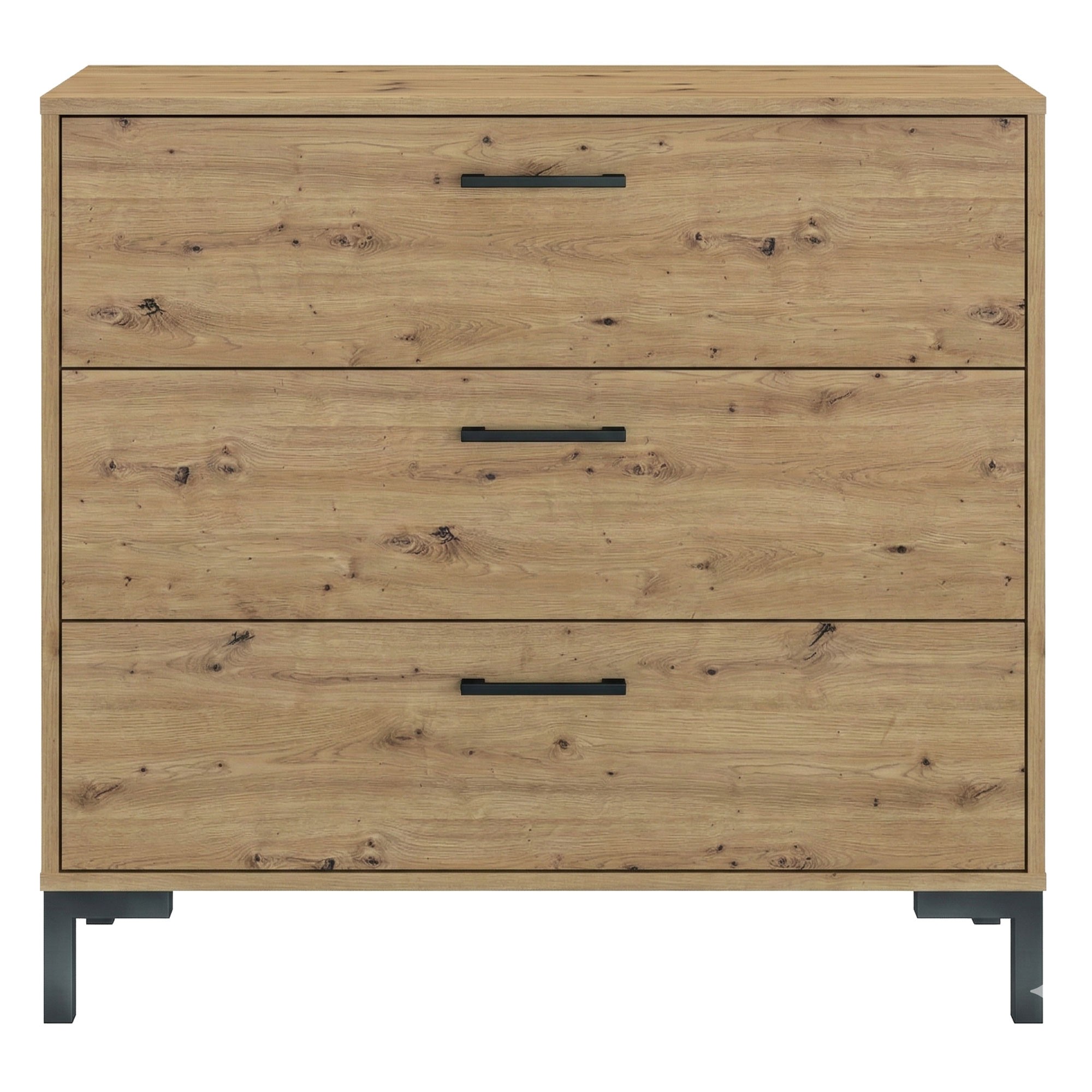 Komoda loftowa z trzema szufladami - dąb artisan + czarne nóżki i uchwyty