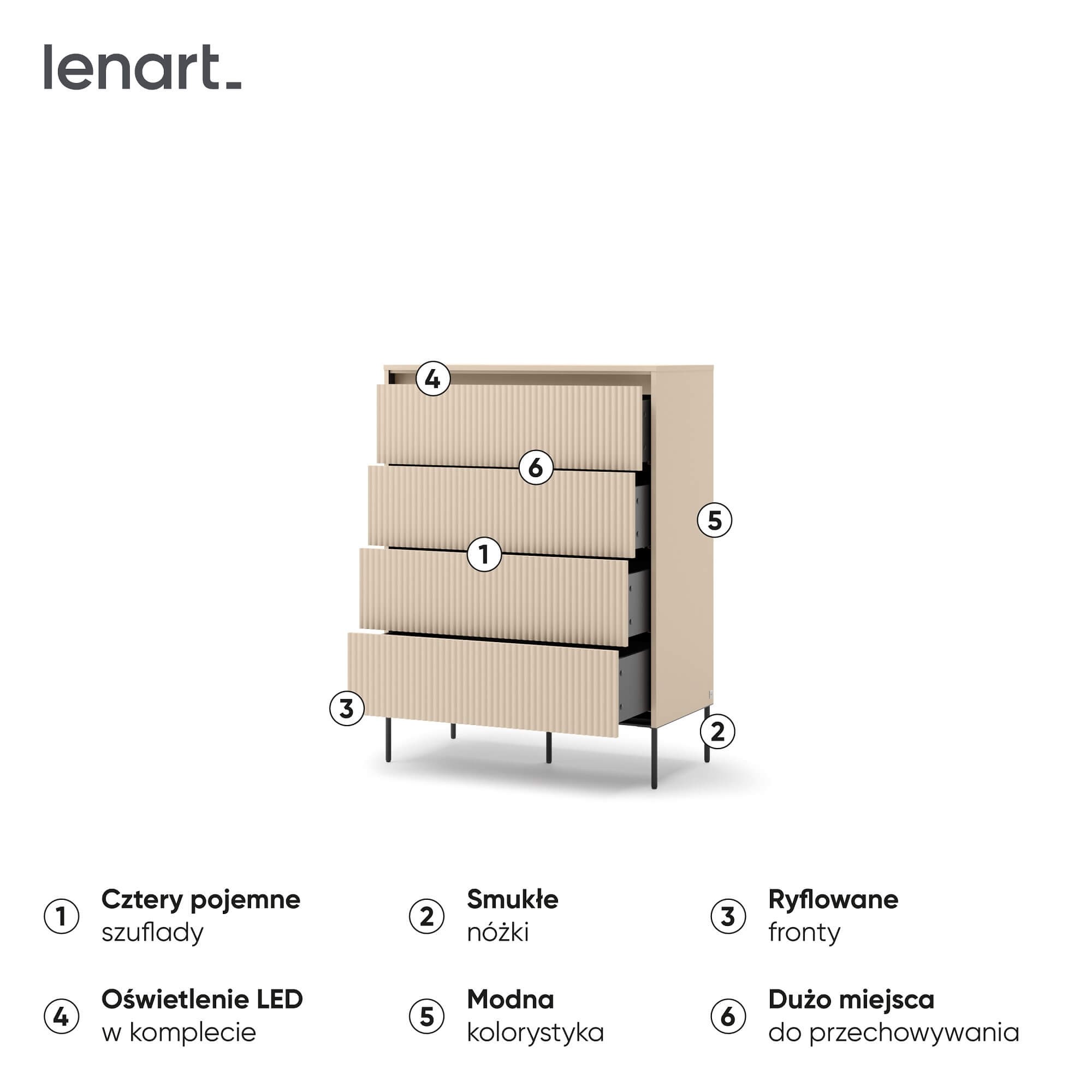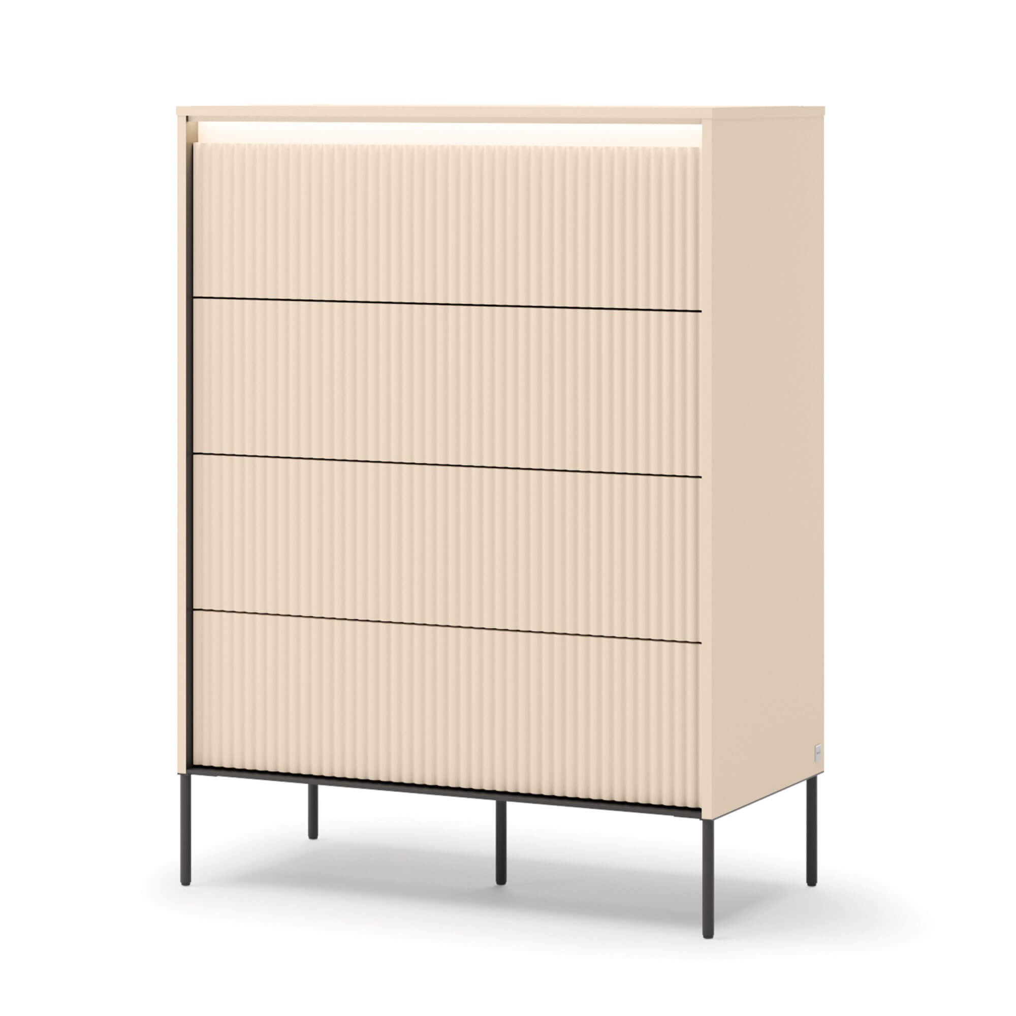Komoda z szufladami TREND TS-04 4S | Oświetlenie LED | Beż piaskowy, czarny | SZYBKA WYSYŁKA