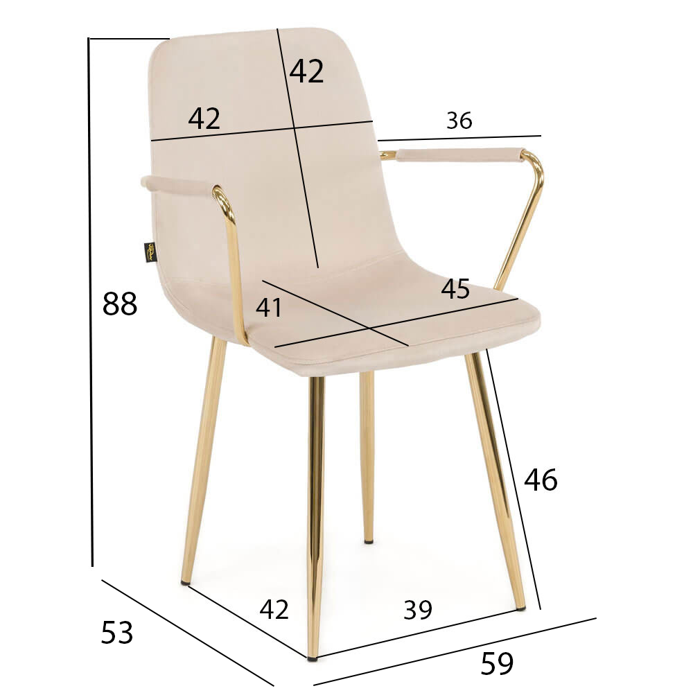 Krzesło C-962 to połączenie luksusu, nowoczesności i wygody, które idealnie wpasuje się w każde eleganckie wnętrze. Dzięki starannemu wykonaniu i użyciu wysokiej jakości materiałów, to krzesło nie tylko prezentuje się stylowo, ale także zapewnia wyjątkowy komfort użytkowania. Posiada ono jasnobeżową tapicerkę wykonaną z miękkiego weluru, co dodaje meblowi elegancji i zapewnia przyjemne doznania dotykowe. Solidna metalowa rama oraz nogi w kolorze czarnym nadają krzesłu nowoczesny i luksusowy wygląd. Metalowe elementy są nie tylko stylowe, ale również trwałe i łatwe do utrzymania w czystości. Dla zwiększenia komfortu użytkowania, krzesło wyposażone jest w czarne podłokietniki, które są tapicerowane tym samym welurowym materiałem, co siedzisko. To nie tylko podkreśla elegancki design, ale także zapewnia wygodę podczas siedzenia. Siedzisko krzesła C-962 jest jednoczęściowe i lekko zakrzywione, co zapewnia optymalne podparcie dla pleców i wygodę podczas długotrwałego siedzenia. Ergonomiczny kształt siedziska sprzyja zdrowej postawie ciała. Krzesło C-962 łączy w sobie minimalistyczny design z eleganckimi złotymi akcentami, co sprawia, że idealnie komponuje się z nowoczesnymi wnętrzami, takimi jak jadalnie, biura czy salony. Jego elegancki wygląd i wysoki komfort użytkowania sprawiają, że jest doskonałym wyborem do różnorodnych wnętrz, od domowych jadalni, przez biura, aż po luksusowe salony. Jeśli szukasz krzesła, które łączy nowoczesny design z luksusowym wyglądem i wygodą, krzesło C-962 w kolorze beżowym wykonane z weluru będzie idealnym wyborem. Jego staranne wykonanie, solidna metalowa rama oraz ergonomiczne siedzisko sprawiają, że jest to mebel, który spełni oczekiwania nawet najbardziej wymagających użytkowników. Dodaj elegancji swojemu wnętrzu z krzesłem C-962.