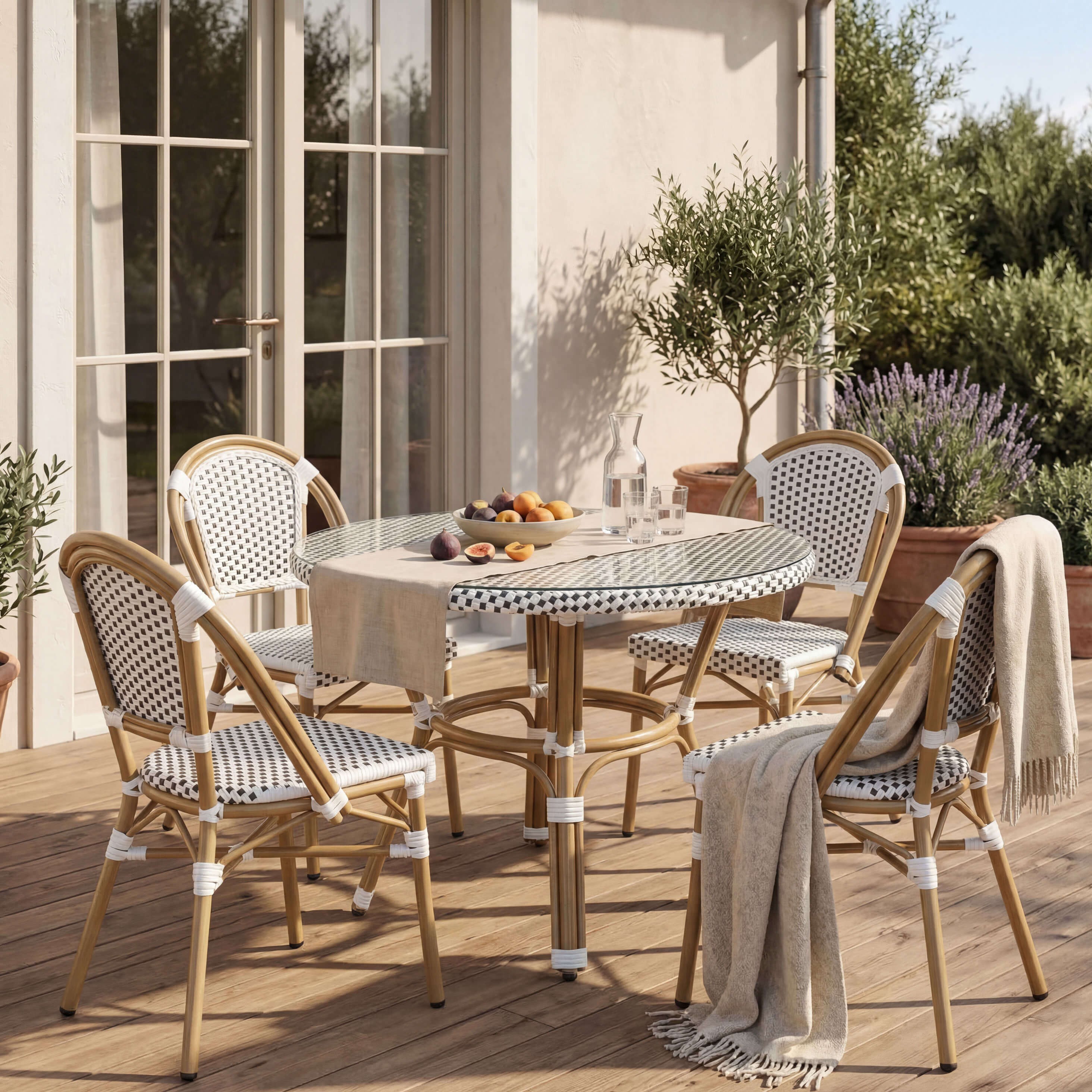 Siedzisko i oparcie wykonano z wikliny syntetycznej odpornej na promieniowanie UV.