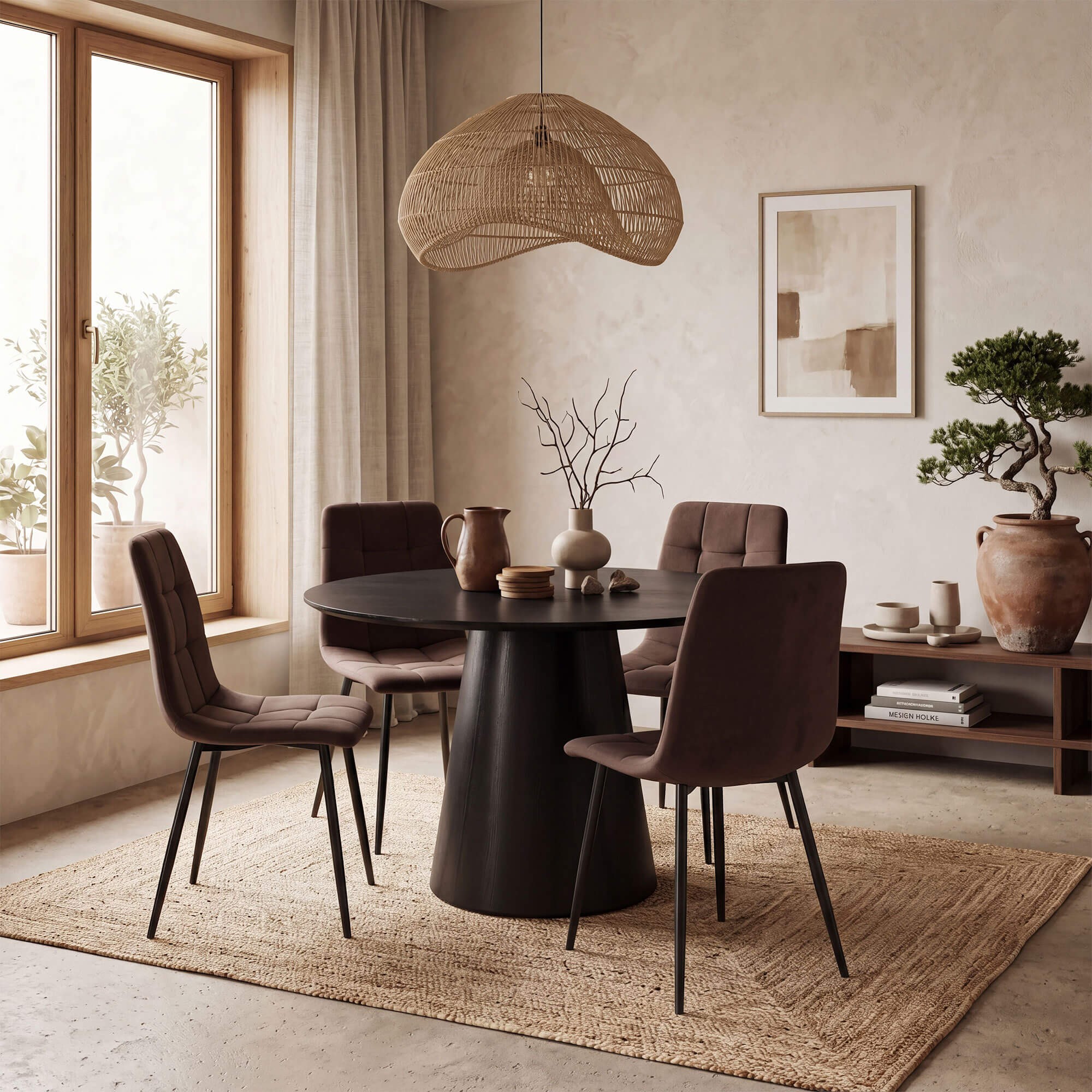 Krzesło DC-6402 to wyjątkowe połączenie nowoczesnego wzornictwa z niezrównaną wygodą, stworzone z myślą o osobach ceniących stylowe i funkcjonalne rozwiązania. Dzięki swojej eleganckiej formie i brązowej kolorystyce, mebel ten stanowi doskonałe dopełnienie jadalni, salonu czy nowoczesnego gabinetu. Welurowe wykończenie w głębokim odcieniu brązu wprowadza do wnętrza przytulną atmosferę, zachowując jednocześnie luksusowy charakter aranżacji.