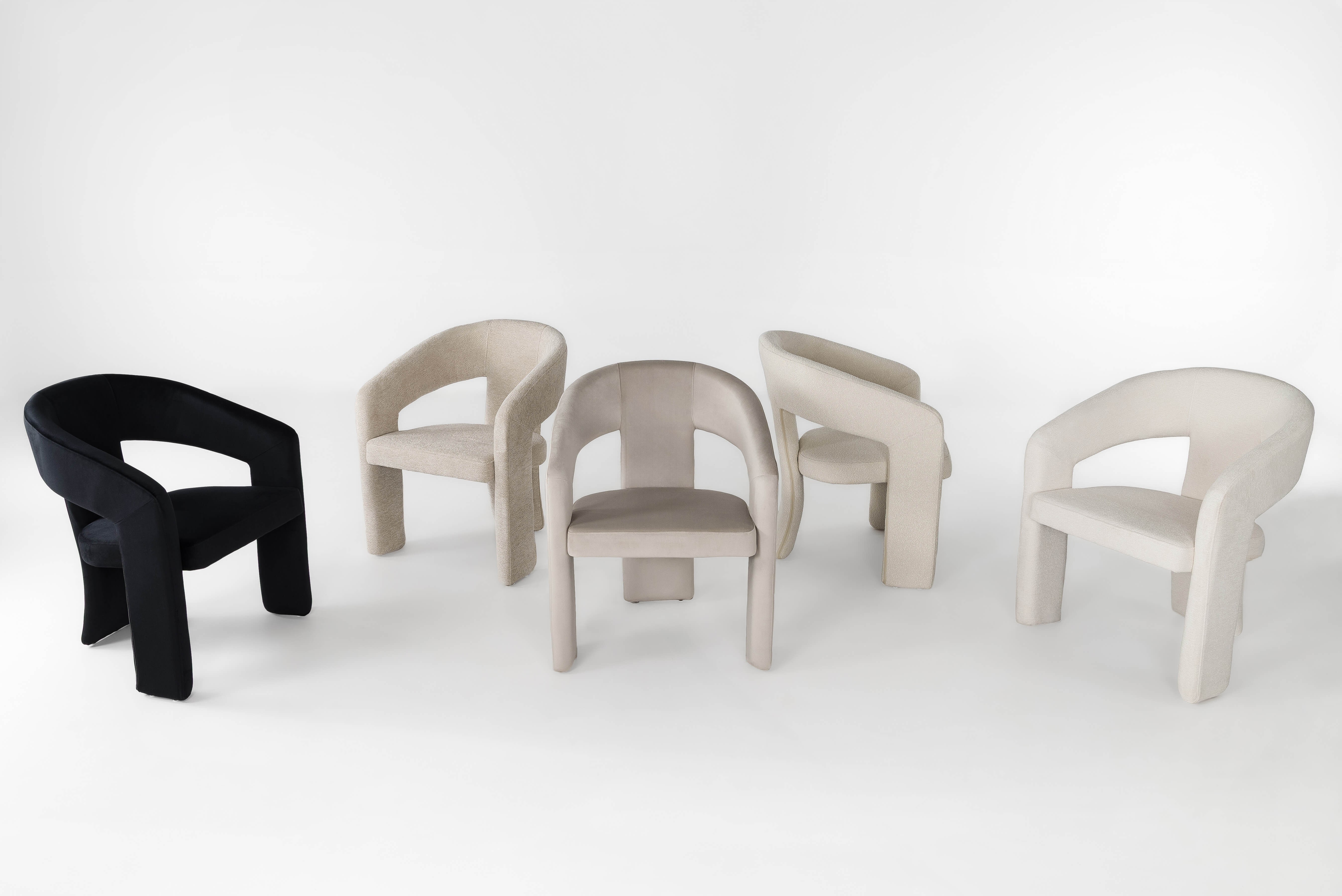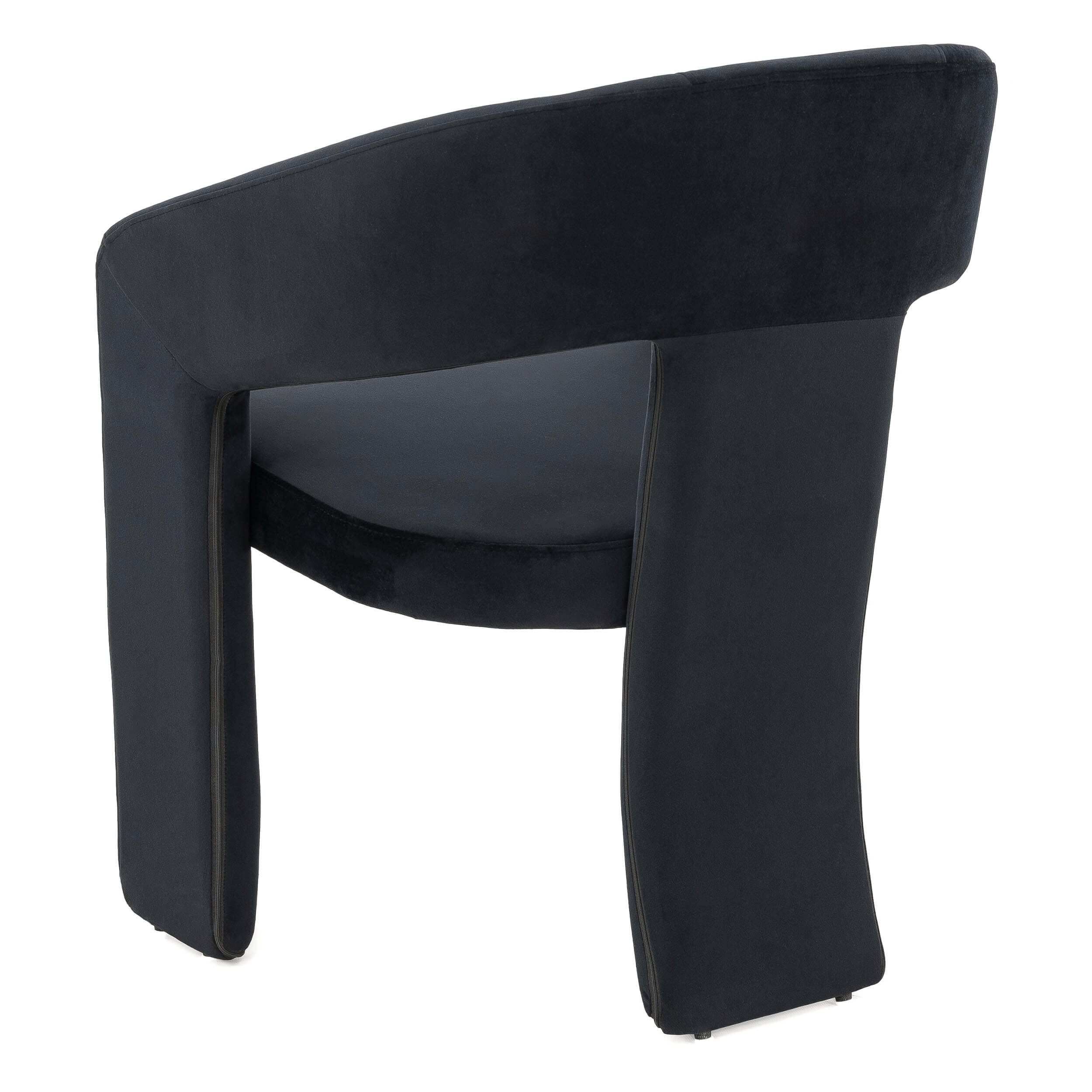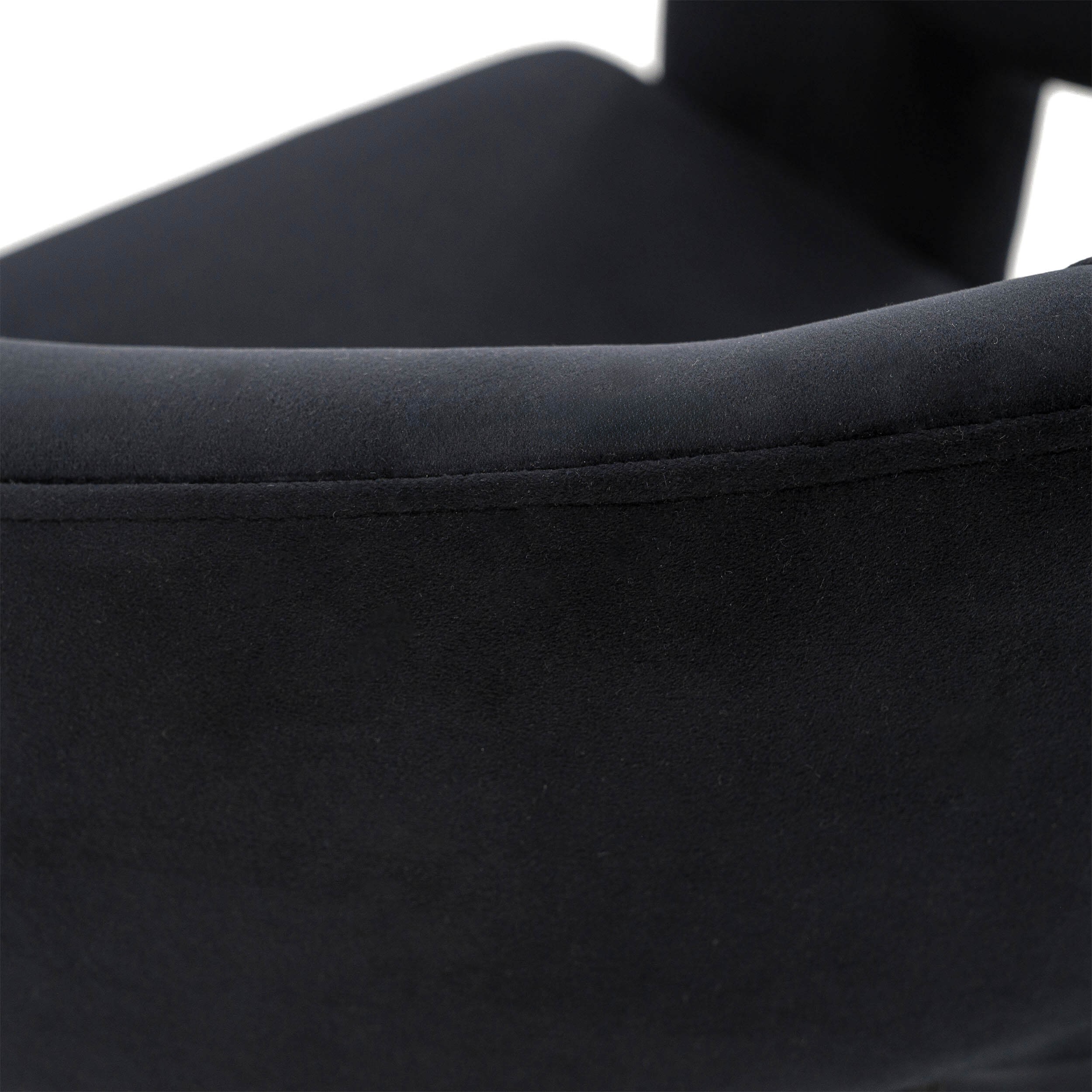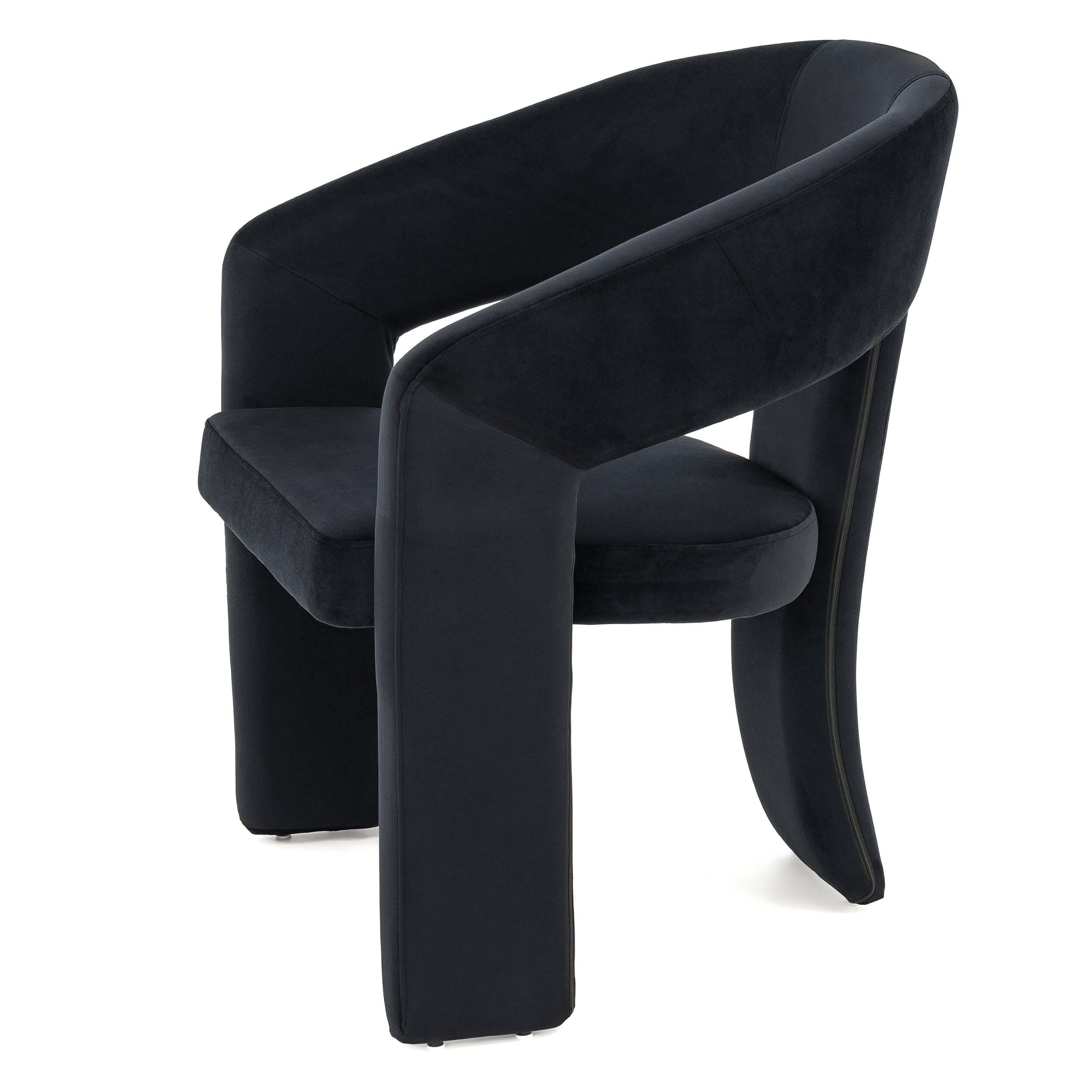 Krzesło AC-2435 w głębokim odcieniu czerni to połączenie stylu, wygody i funkcjonalności w kompaktowej formie. Harmonijna sylwetka z zaokrąglonym oparciem, płynnie przechodzącym w subtelne podłokietniki, zapewnia ergonomiczne podparcie dla pleców i ramion oraz wysoki komfort użytkowania. Miękkie siedzisko wypełnione wysokiej jakości pianką i obite tkaniną tapicerską Riviera 100 gwarantuje wygodę nawet podczas dłuższego siedzenia. Charakterystyczna przerwa między oparciem a siedziskiem nadaje całości lekkości i nowoczesnego wyrazu, a przy tym wspomaga cyrkulację powietrza, ograniczając gromadzenie się kurzu i wilgoci. Stabilną podstawę tworzą trzy w pełni tapicerowane nogi, które nie tylko podkreślają spójność stylistyczną, ale także zapewniają trwałość i bezpieczeństwo użytkowania. Drobne, dyskretne stopki zabezpieczają podłogi przed zarysowaniami, co pozwala swobodnie ustawić mebel w dowolnym pomieszczeniu – od salonu, przez sypialnię, aż po domowe biuro. Głęboki czarny kolor w połączeniu z nowoczesną formą doskonale wpisuje się w aranżacje glamour, modern, loft czy minimalistyczne. Model AC-2435 to idealna propozycja dla osób poszukujących eleganckiego mebla, który łączy wyjątkową estetykę z codzienną funkcjonalnością.