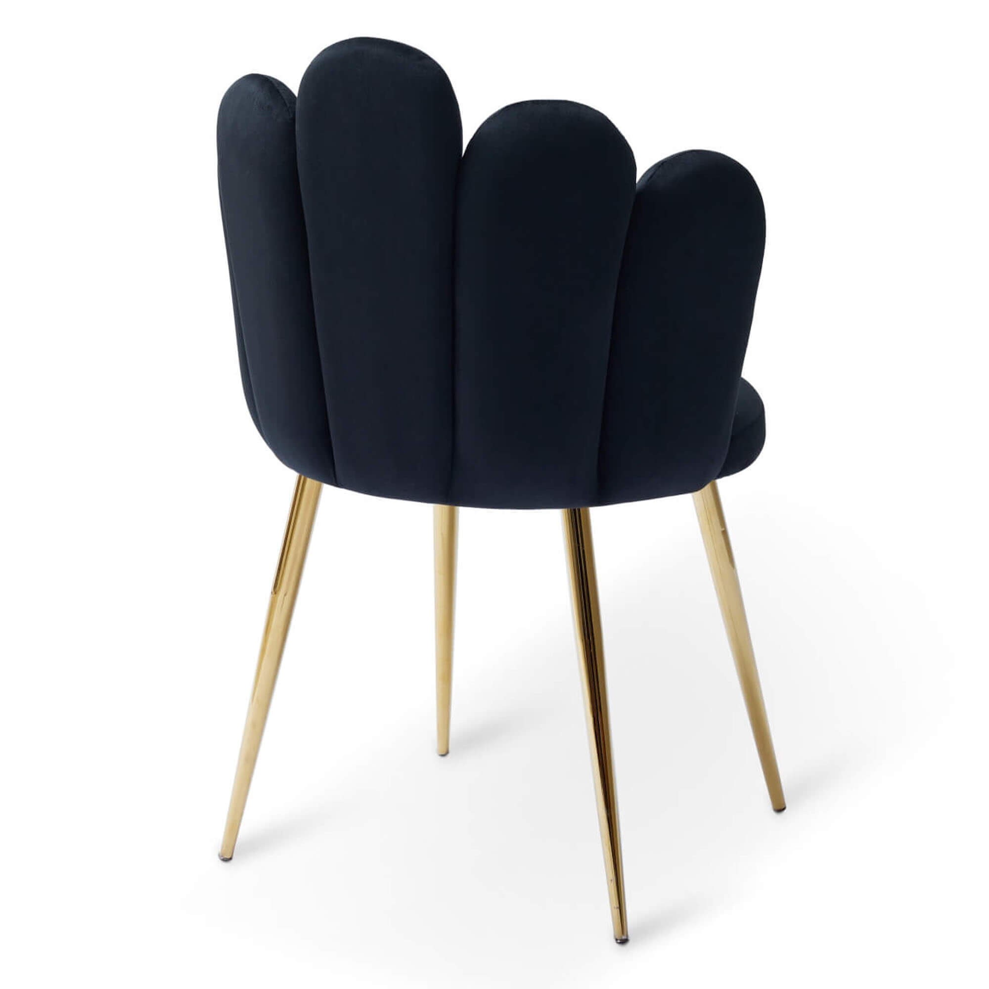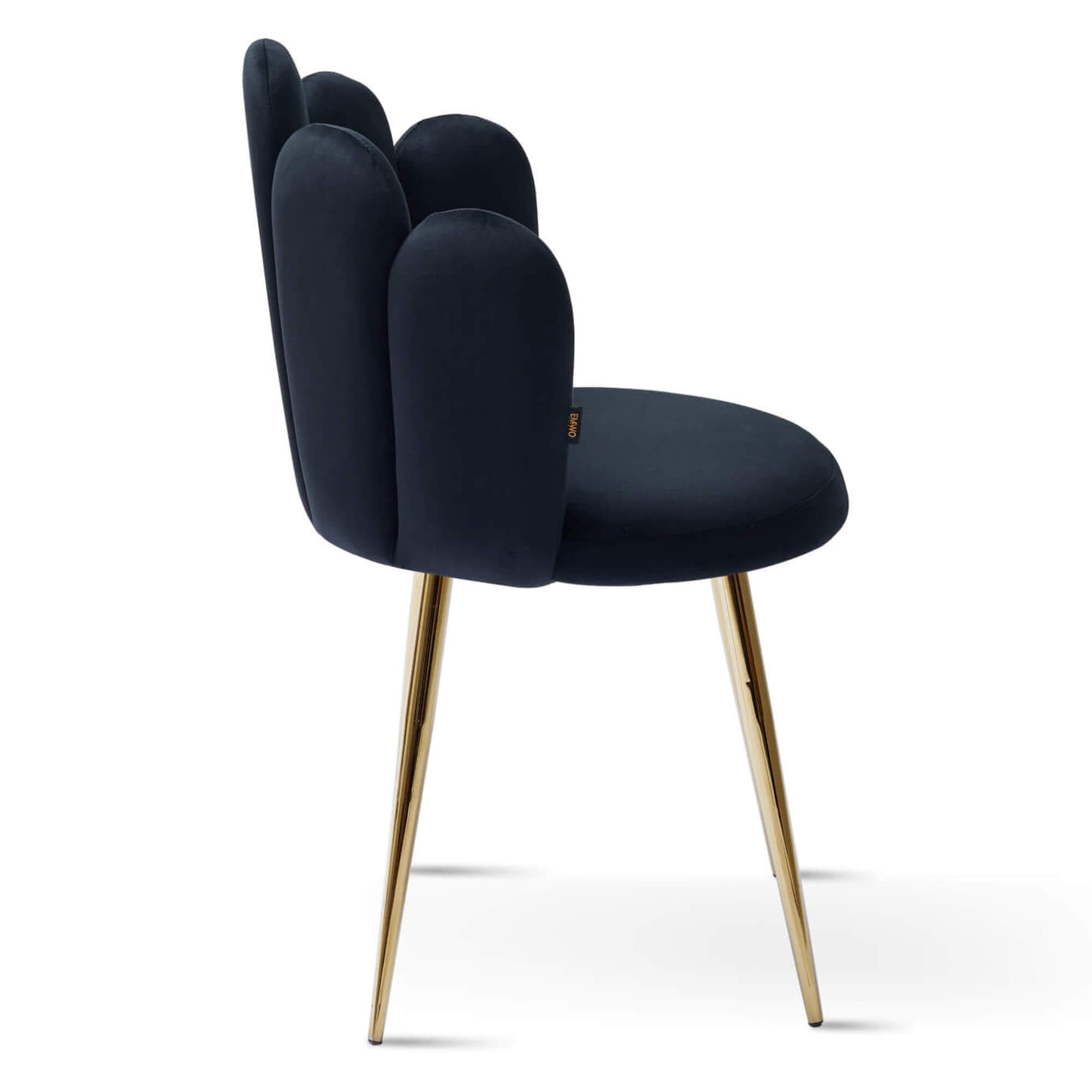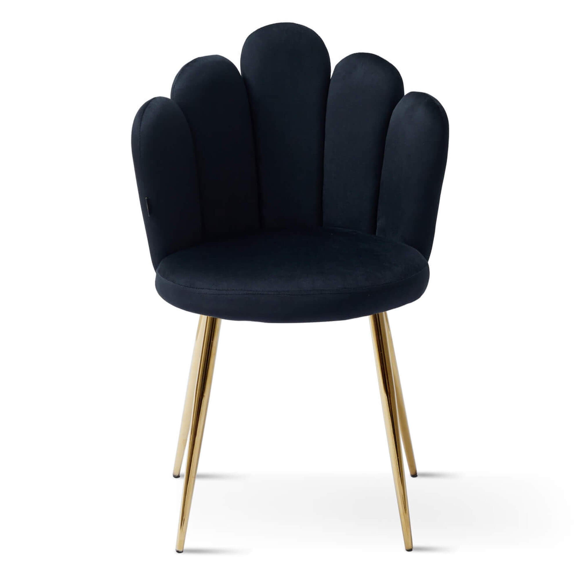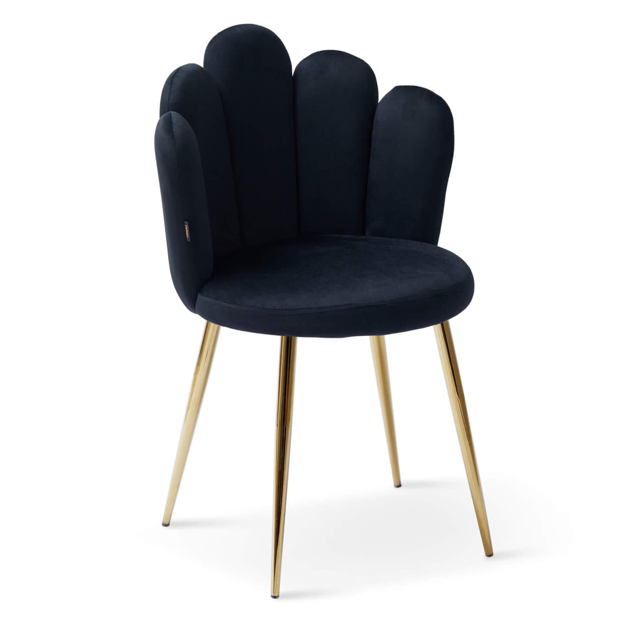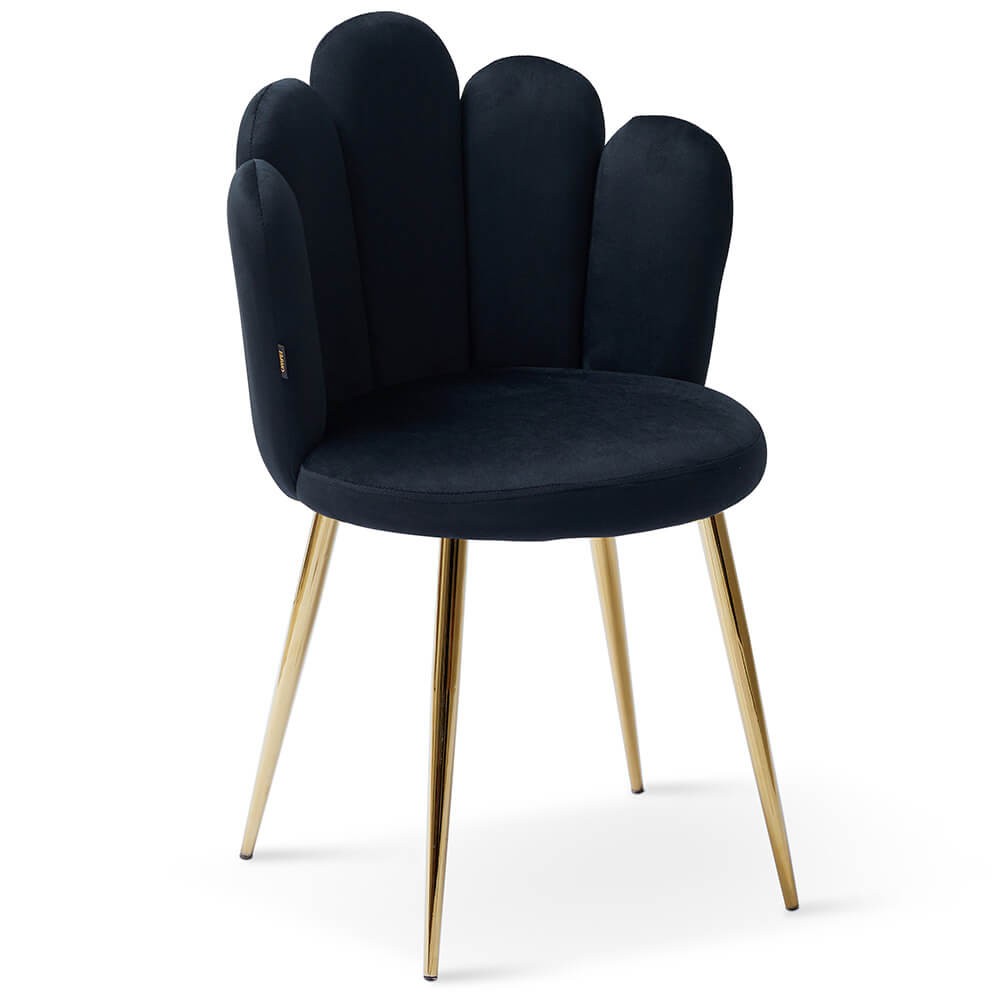 Krzesło muszelka czarne to wyjątkowo piękny model, który pokochaliśmy za wytworne, złote nóżki i uroczy, unikalny design! Eleganckie wykonanie sprawia, że mebel prezentuje się doskonale już na pierwszy rzut oka, a przy tym nie sposób oprzeć się jego wygodzie!