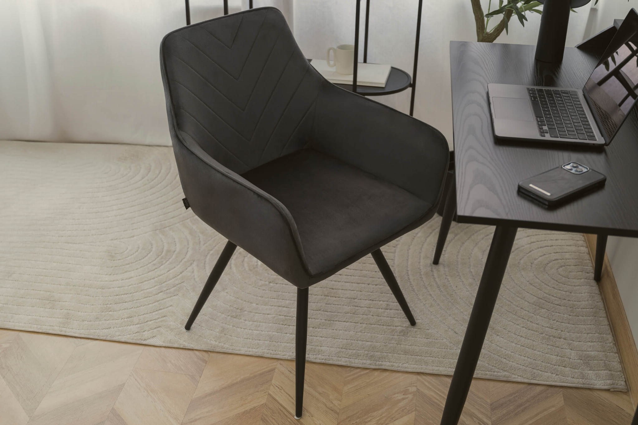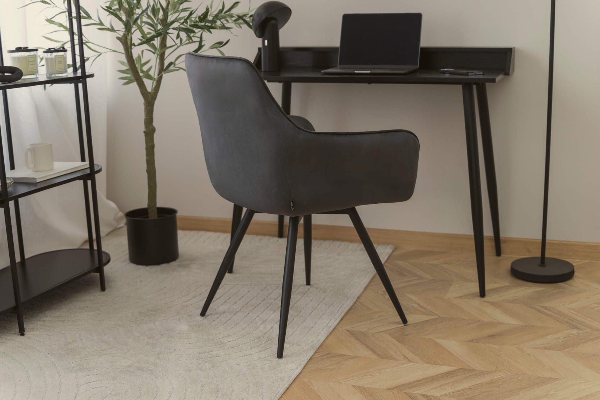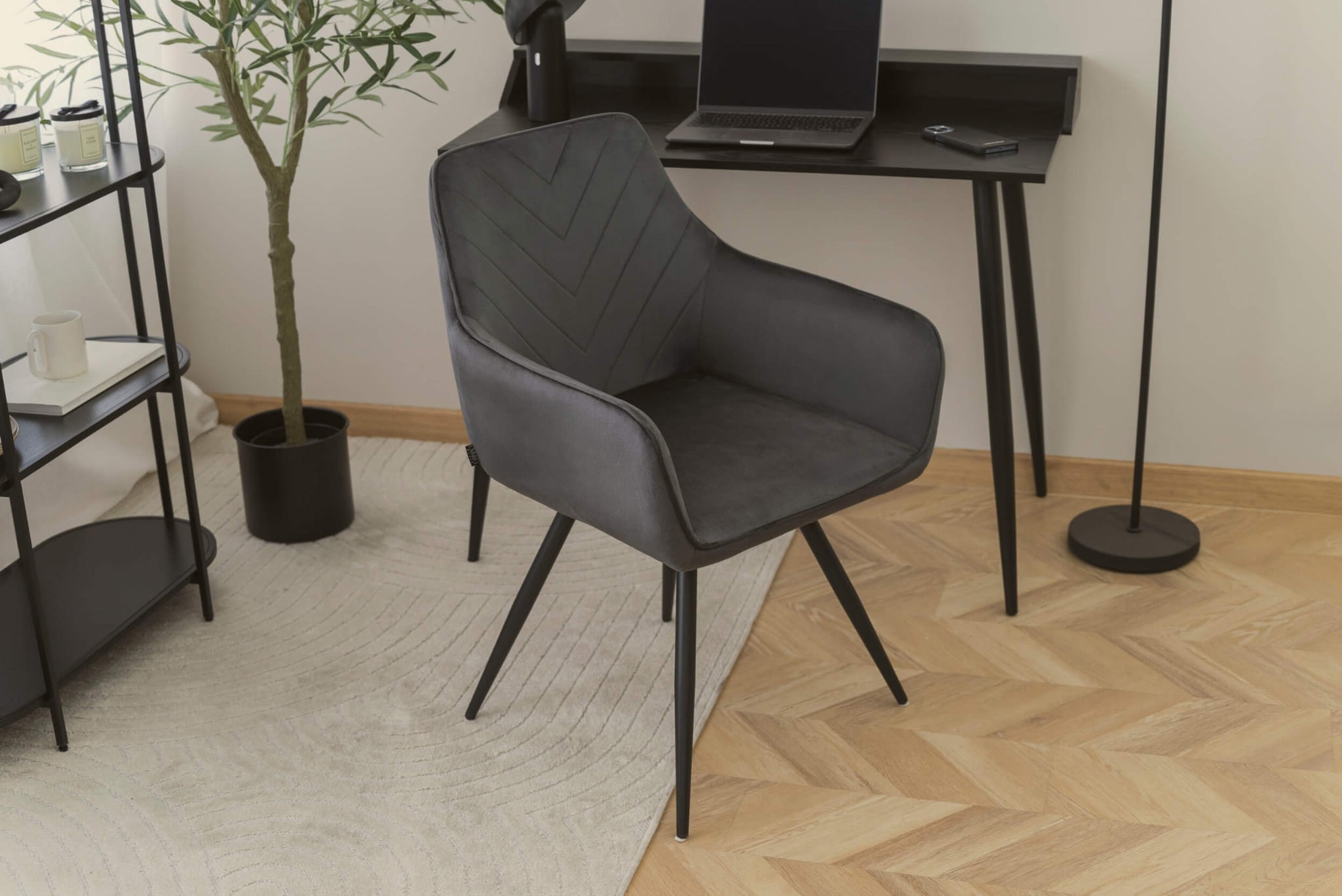 Krzesło wyposażone jest w solidne, metalowe nóżki malowane proszkowo, co zapewnia stabilność i trwałość konstrukcji. Minimalistyczna forma i nowoczesna konstrukcja sprawiają, że krzesło idealnie wpisuje się w aktualne trendy wnętrzarskie. Zabezpieczenie Podłóg