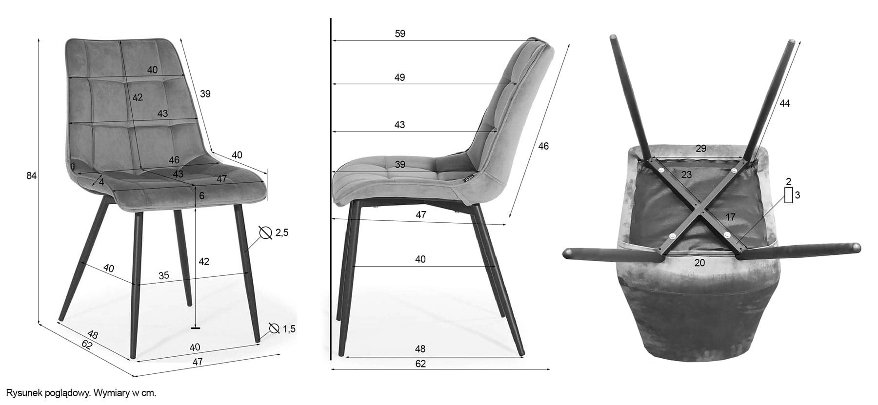 • Nogi mają zabezpieczenie przed uszkodzeniem paneli podłogowych, powierzchni lakierowanych, podłóg ceramicznych