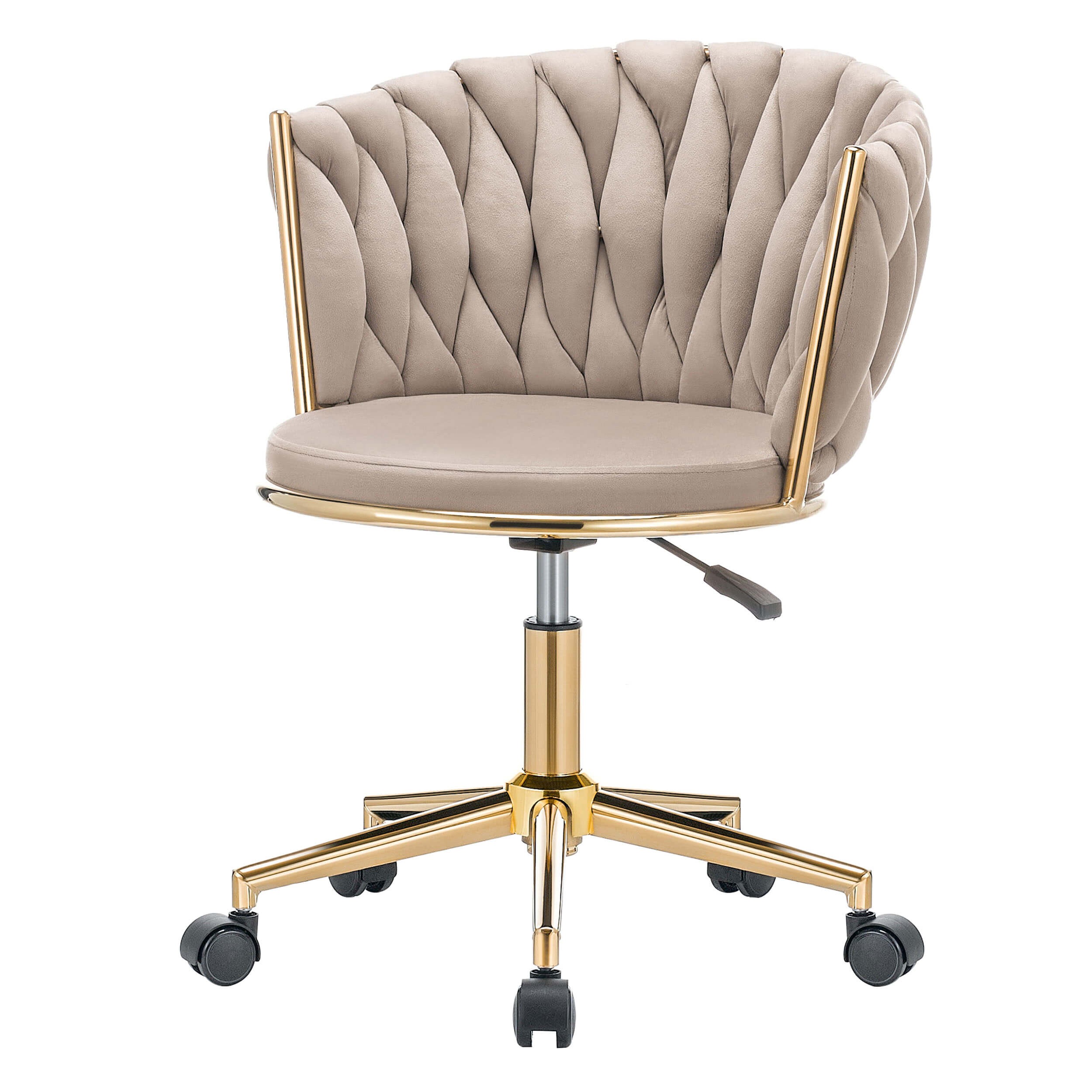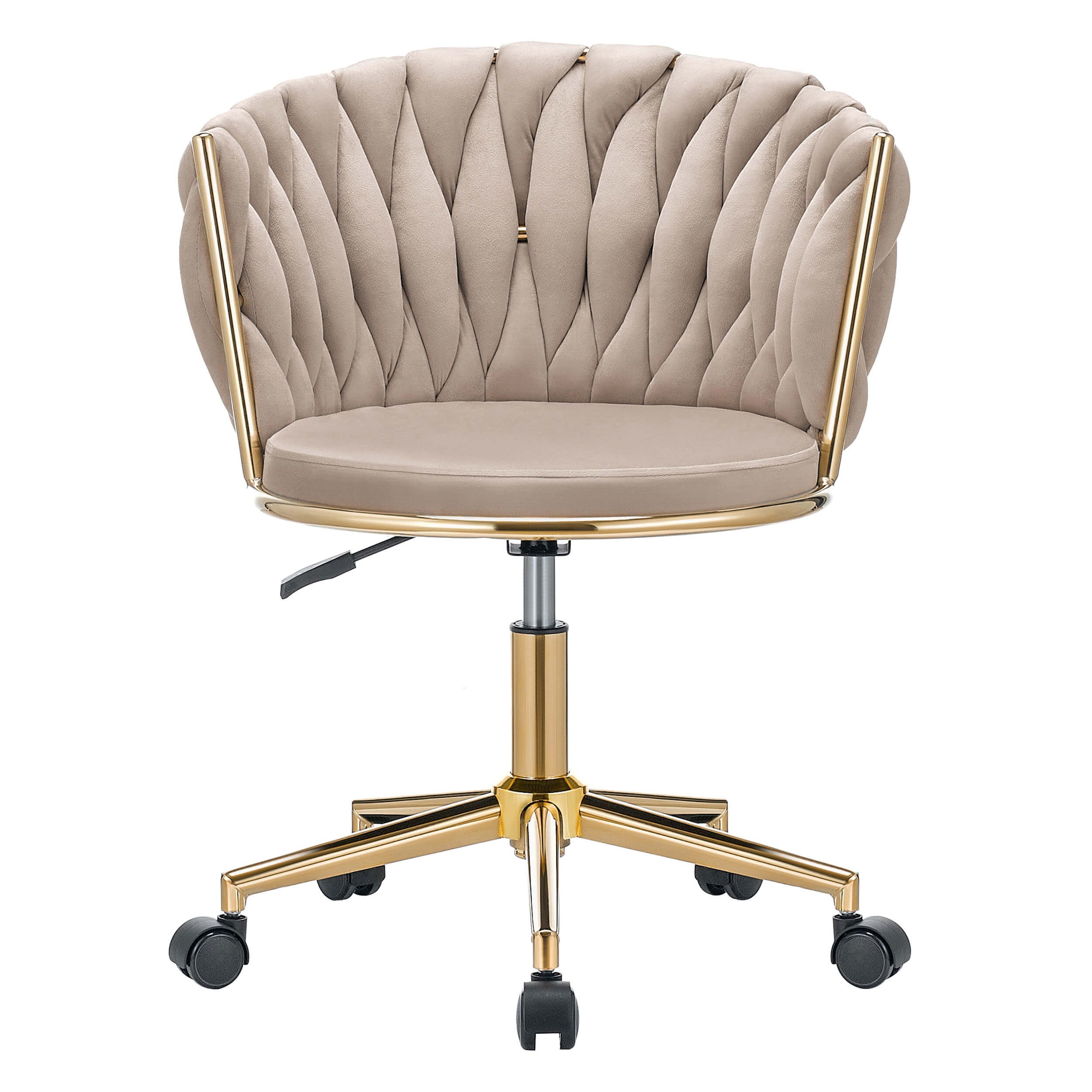 Krzesło obrotowe welurowe, DC-3027S beż #7 ze złotymi nogami