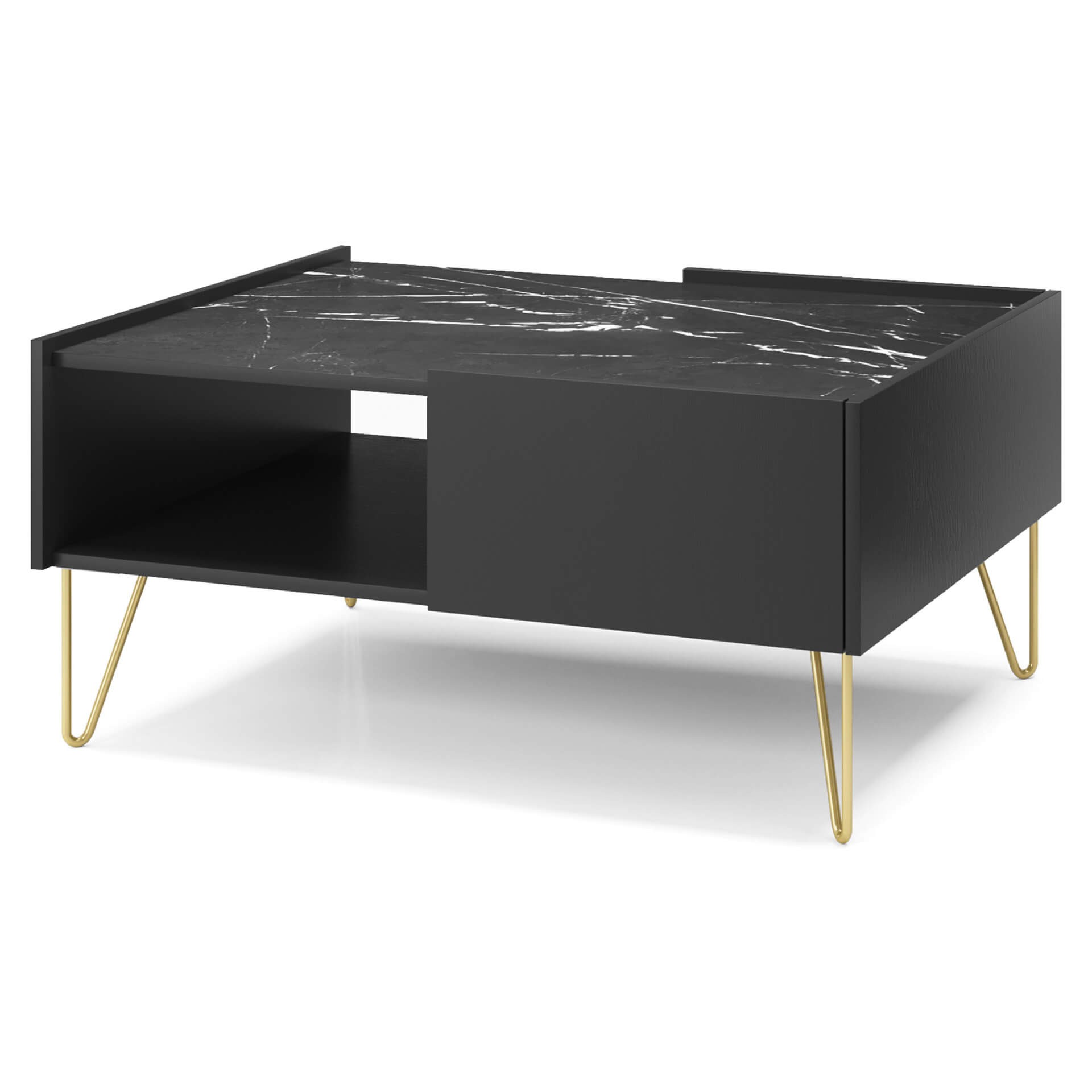 Elegancki stolik kawowy – marmur czarny, nogi złote