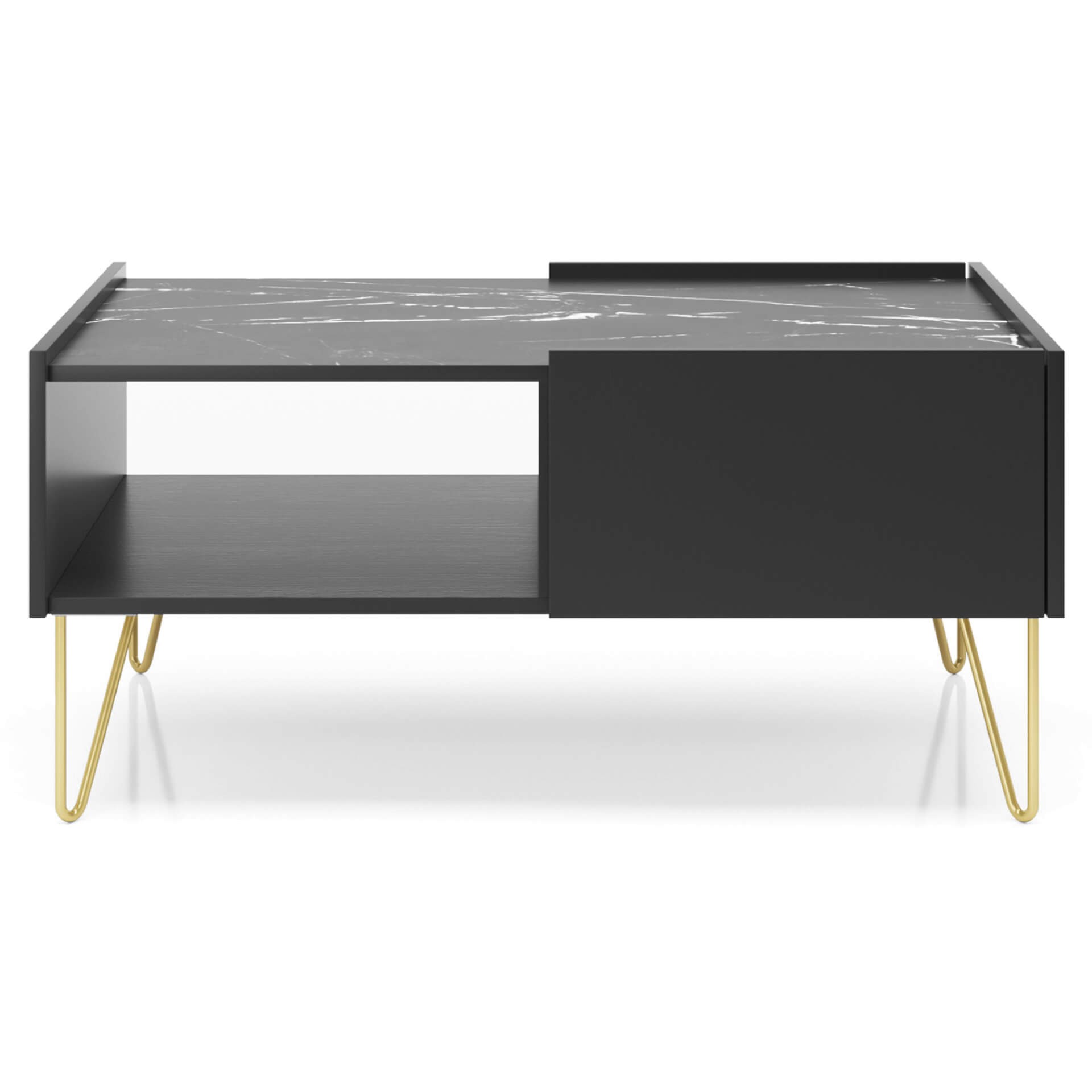 Nowoczesne wzornictwo prezentuje się naprawdę bezbłędnie, dzięki czemu stolik zwieńczony marmurowym blatem, stylowym frontem i podkreślony szlachetnym złotem idealnie wpiszę się w elegancki wystrój.