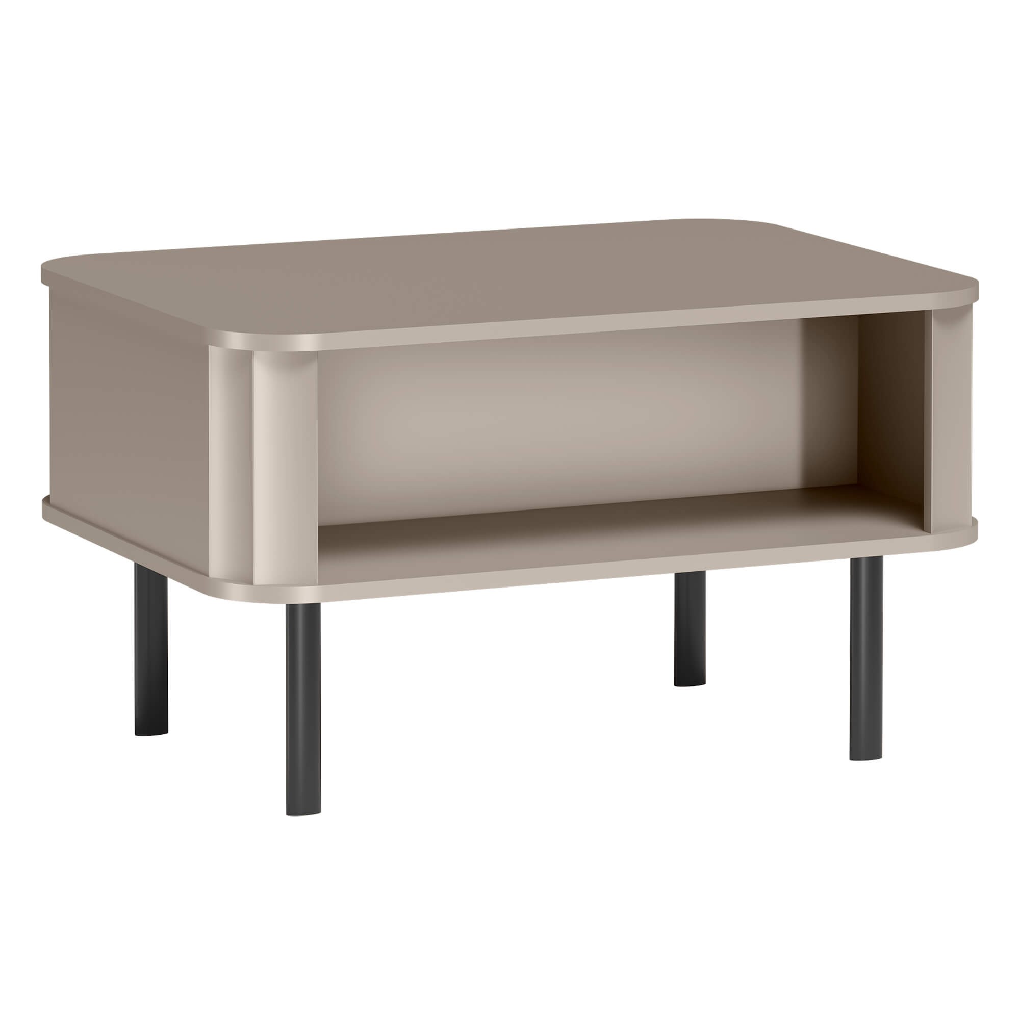Funkcjonalność stolika NOVADO-10 objawia się w jego unikalnej konstrukcji. Dwie otwarte wnęki, zlokalizowane po przeciwnych stronach mebla, to idealne miejsce na przedmioty, które chcesz mieć zawsze pod ręką – piloty, czasopisma, książki czy podkładki pod kubki. Takie rozwiązanie pozwala utrzymać górny blat w nienagannym porządku, pozostawiając miejsce na kawę i dekoracje.