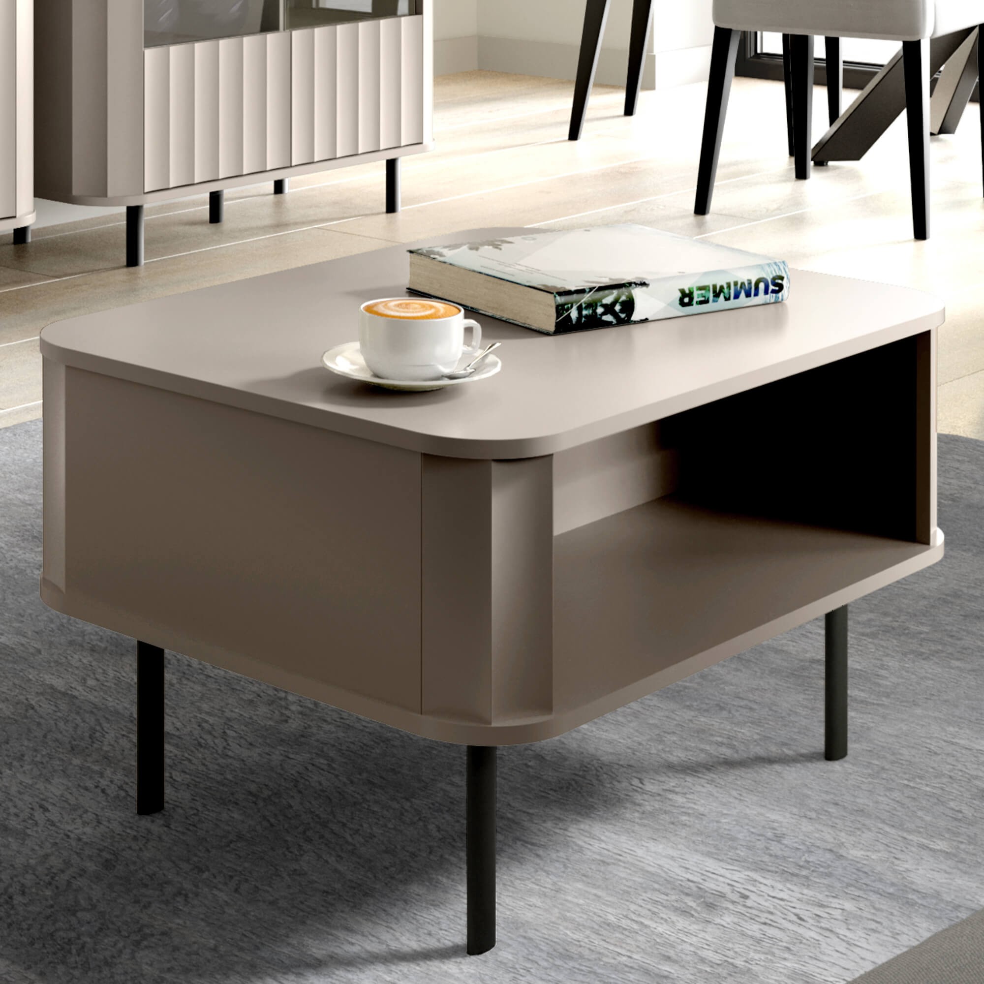 Stolik kawowy NOVADO-10 to propozycja, która łączy minimalistyczną formę z wyraźnym stylem, stanowiąc idealne dopełnienie nowoczesnej strefy wypoczynkowej. Jego nowoczesna bryła doskonale wpisuje się w założenia kolekcji NOVADO – mebli stworzonych z myślą o wnętrzach estetycznych, a zarazem dobrze zorganizowanych. Ciepły odcień Clay Gray nadaje mu szlachetnego wyglądu.