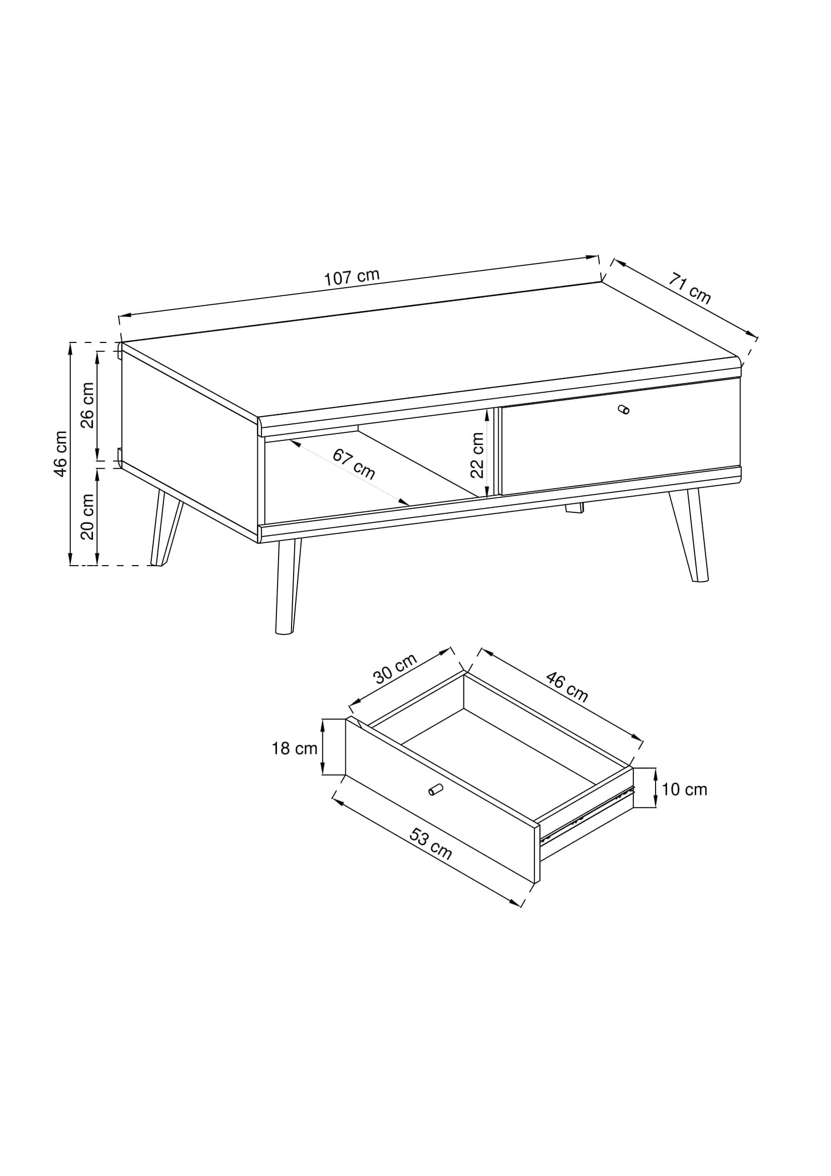 Stylowy stolik kawowy w stylu skandynawskim to mebel, który świetnie sprawdzi się w każdym salonie. Estetyczne połączenie drewnianego blatu oraz nóżek z białą szufladką prezentuje się bardzo lekko i spójnie. Taki motyw idealnie oddaje wdzięki stylu skandynawskiego, a dodatkowo jest bardzo uniwersalny. Stolik kawowy skandynawski z szufladą będzie świetnie pasował do każdej aranżacji, a także spełni wszelkie oczekiwania domowników. Solidny blat będzie idealnym miejscem na dekoracje, świeże kwiaty oraz przekąski, a praktyczna szuflada pozwoli przechowywać drobiazgi, chusteczki przydatne na romantyczne seanse czy też pilot, którego nie sposób nigdy znaleźć.