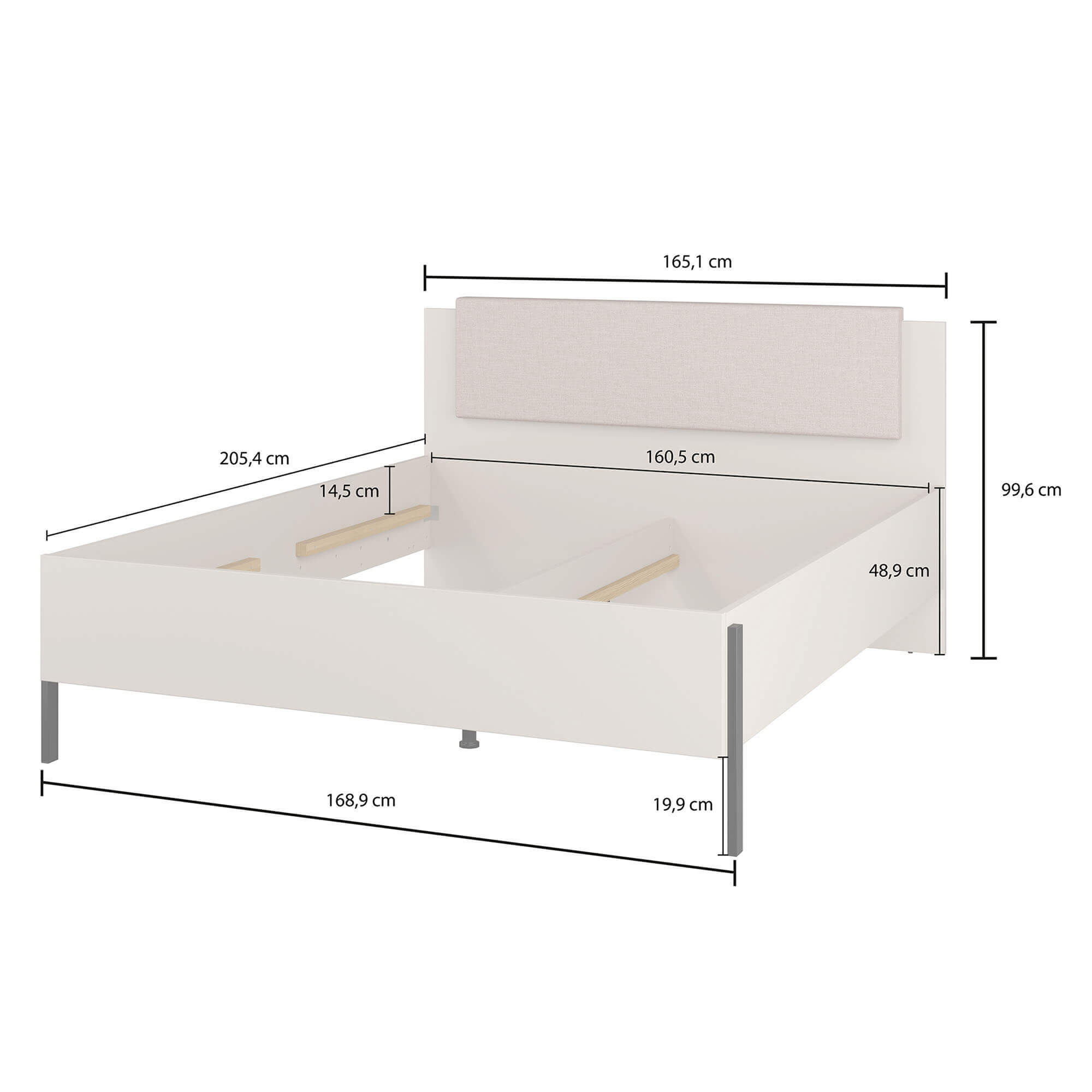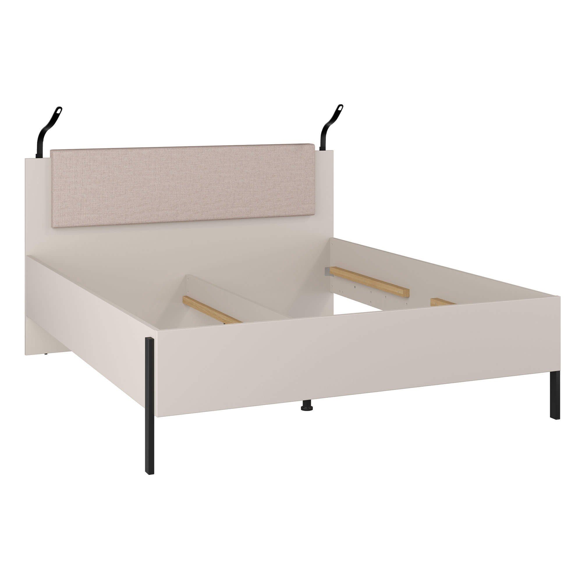 • Łóżko wykonane z płyty meblowej, z widocznymi obrzeżami zabezpieczonymi obrzeżem ABS, matowe wykończenie.