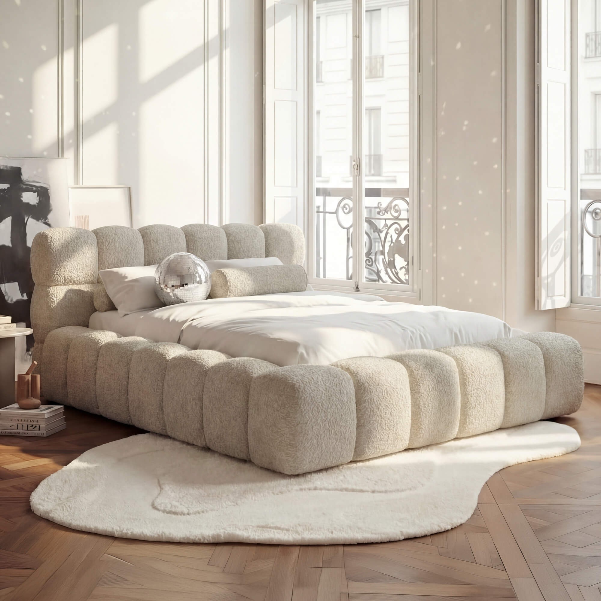 Łóżko BOSTON w kolorze Quelle 03 to nowoczesny i elegancki mebel, który łączy w sobie styl, komfort i funkcjonalność. Wykonane z wysokiej jakości tkaniny Quelle 03, zachwyca swoją trwałością i estetyką, a jego miękkie, obłe kształty dodają całości wyjątkowej subtelności, sprawiając, że idealnie wpasowuje się w każdą aranżację sypialni.