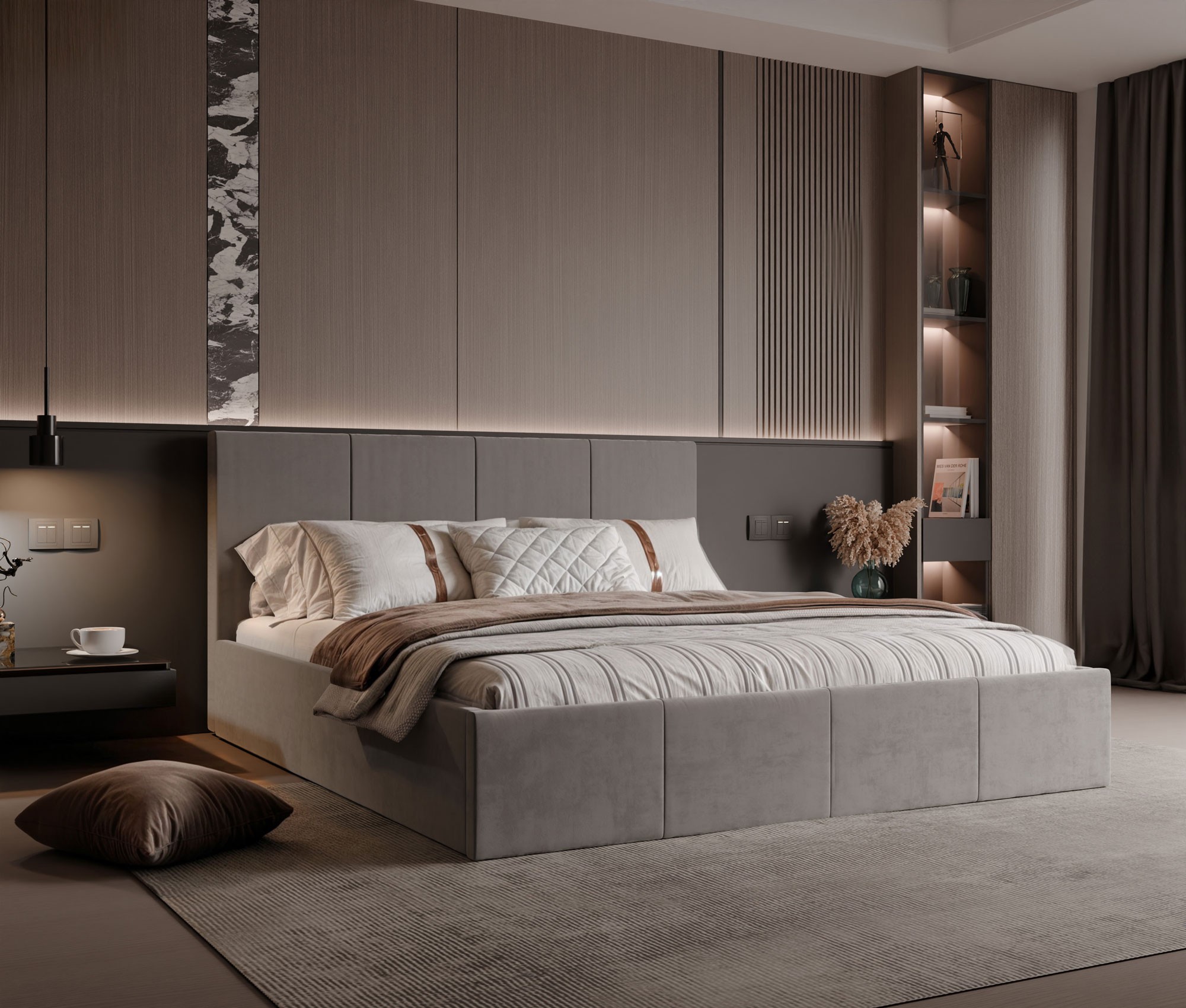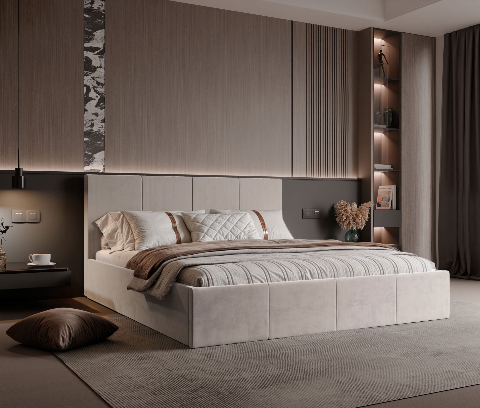 Łóżko LILY 160x200 to stylowa propozycja, która łączy nowoczesne wzornictwo z funkcjonalnością, idealnie odpowiadając na potrzeby współczesnych wnętrz. Jego prosta, geometryczna forma oraz starannie tapicerowane wezgłowie z szerokimi, pionowymi przeszyciami nadają aranżacji eleganckiego charakteru i tworzą przytulną atmosferę sprzyjającą wypoczynkowi. Jednolite obicie łóżka, dostępne w szerokiej gamie kolorów, pozwala na idealne dopasowanie mebla do każdego stylu – od minimalistycznych przestrzeni po klasyczne sypialnie z nutą nowoczesności. Model LILY to nie tylko estetyka, ale przede wszystkim praktyczność na co dzień. Ukryta pod materacem przestronna skrzynia to doskonałe miejsce na przechowywanie pościeli, koców i innych akcesoriów, pomagając utrzymać porządek bez konieczności rezygnowania z przestrzeni. Dzięki zastosowaniu podnośników gazowych dostęp do schowka jest niezwykle prosty i wygodny, co czyni łóżko wyjątkowo funkcjonalnym rozwiązaniem do codziennego użytku. Konstrukcja oparta na solidnym stelażu z elastycznymi listwami zapewnia nie tylko trwałość, ale także komfortowy sen i odpowiednie podparcie dla ciała. Subtelne detale wykończenia podkreślają nowoczesny charakter łóżka i sprawiają, że staje się ono integralnym elementem wystroju wnętrza, a nie tylko praktycznym meblem. Przemyślane proporcje oraz dostępność w wielu szerokościach czynią z łóżka LILY rozwiązanie dopasowane do różnych potrzeb i metraży. Łóżko LILY 160x200 to doskonały wybór dla osób, które szukają komfortu, stylu i funkcjonalności w jednej spójnej formie – to mebel, który nie tylko pięknie się prezentuje, ale też doskonale spełnia swoją rolę każdego dnia.