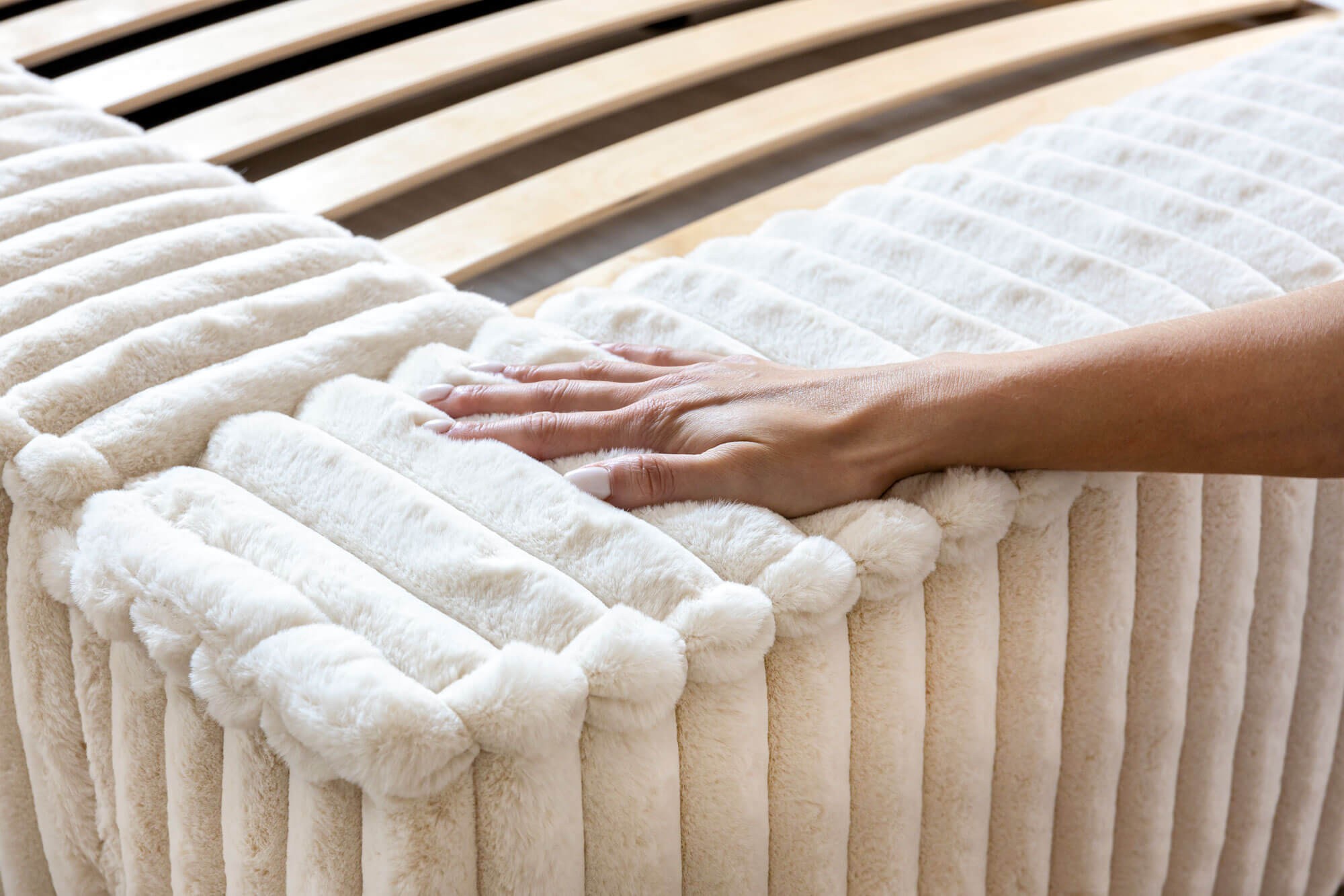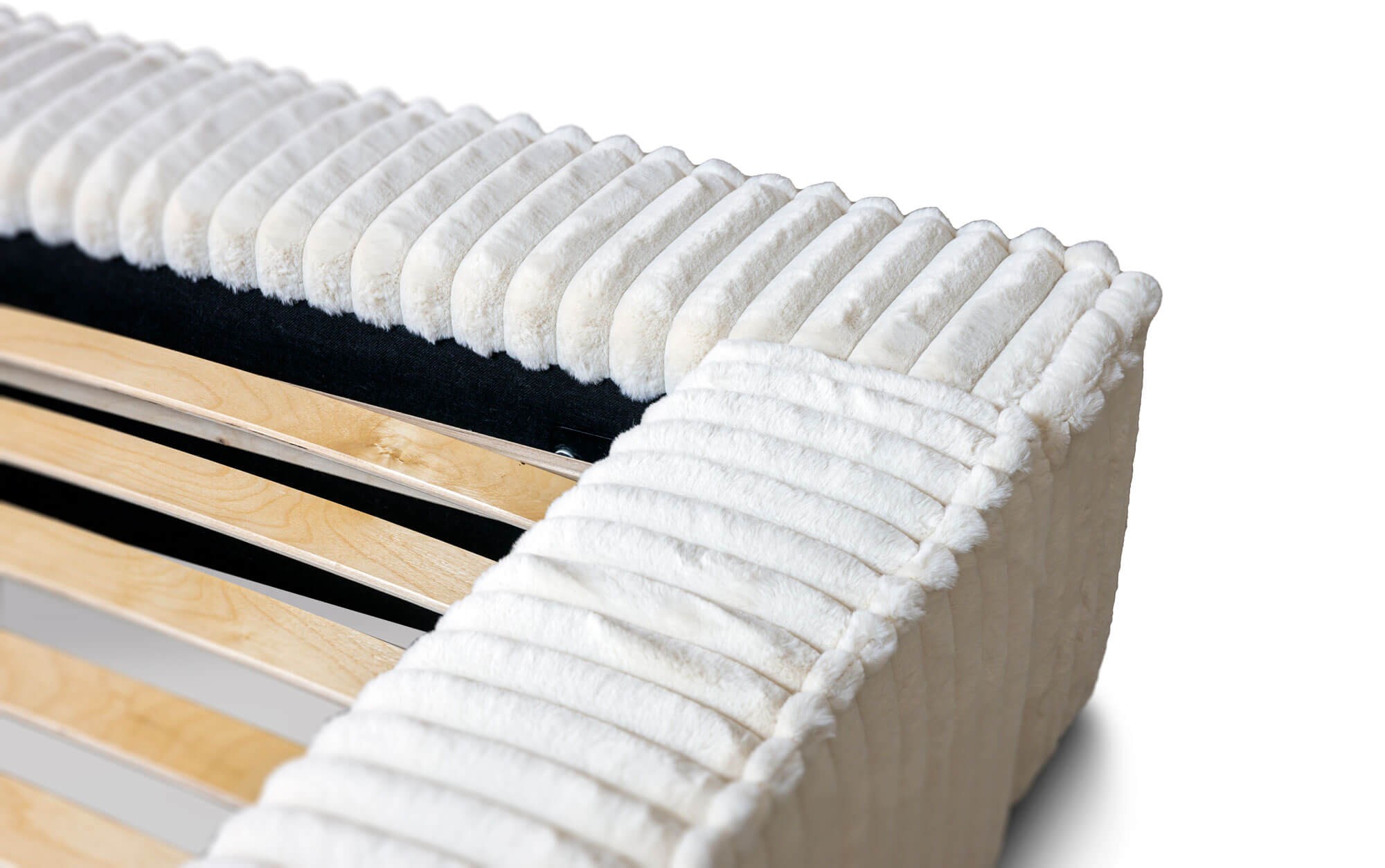 Dzięki solidnej, drewnianej ramie łóżko MELODY jest niezwykle trwałe i stabilne, gwarantując komfort użytkowania na długie lata. Łóżko wyposażone jest w mechanizm podnoszenia stelaża, co pozwala na wygodne korzystanie z pojemnej przestrzeni pod materacem. To praktyczne rozwiązanie, które pomaga w utrzymaniu porządku, oferując dodatkowe miejsce do przechowywania pościeli, koców czy poduszek.