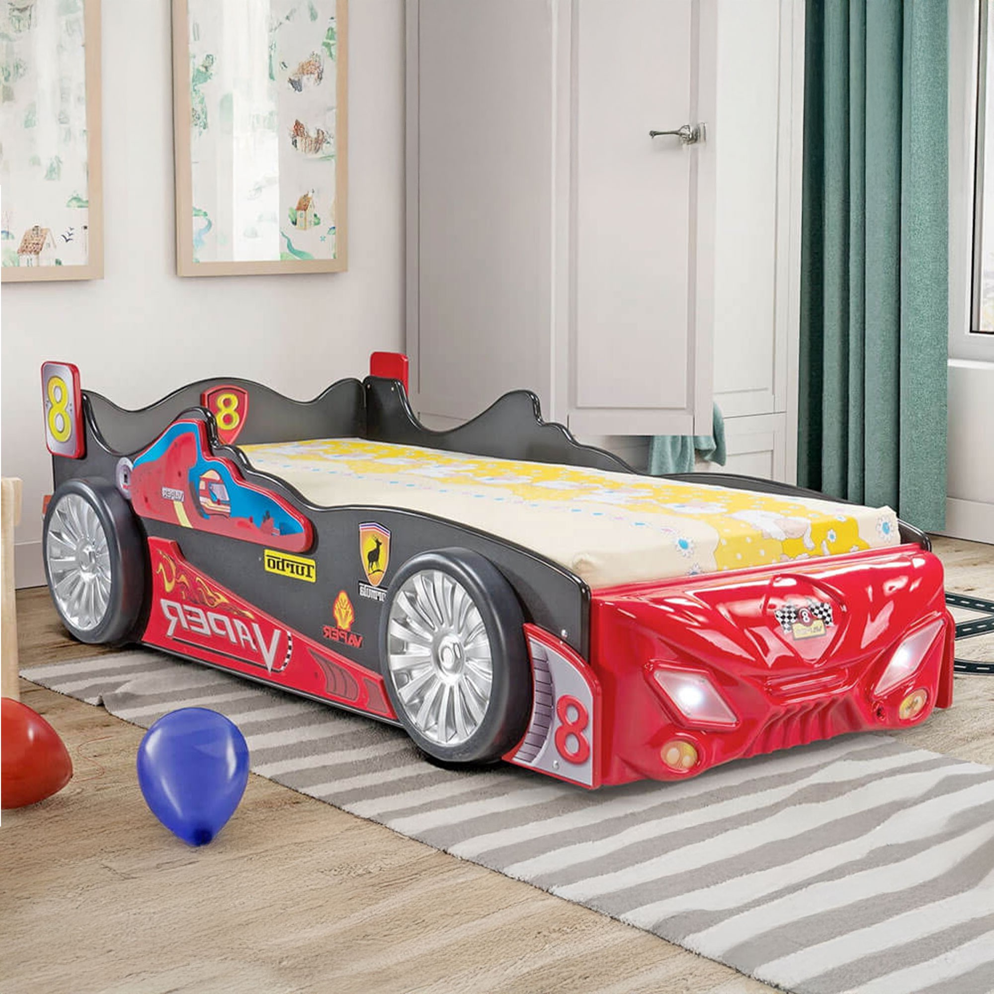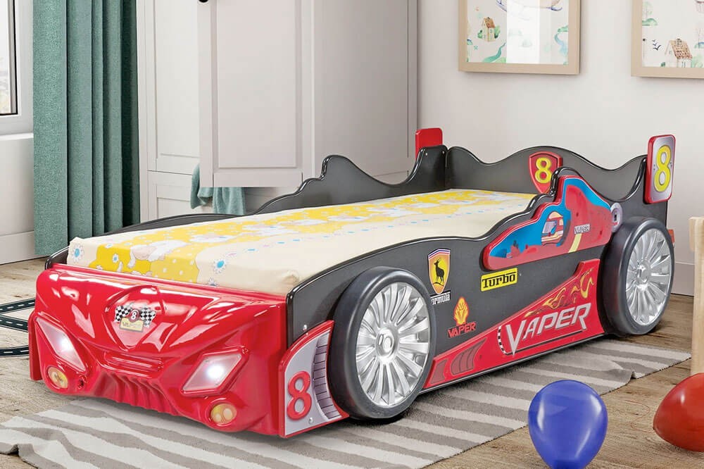 Dzięki swojemu dynamicznemu, sportowemu wyglądowi i wbudowanemu materacowi, zapewnia komfortowy sen i zabawę. To idealne rozwiązanie, które łączy funkcjonalność z fantastycznym designem, spełniając marzenia każdego dziecka o własnym, wyjątkowym pojeździe.