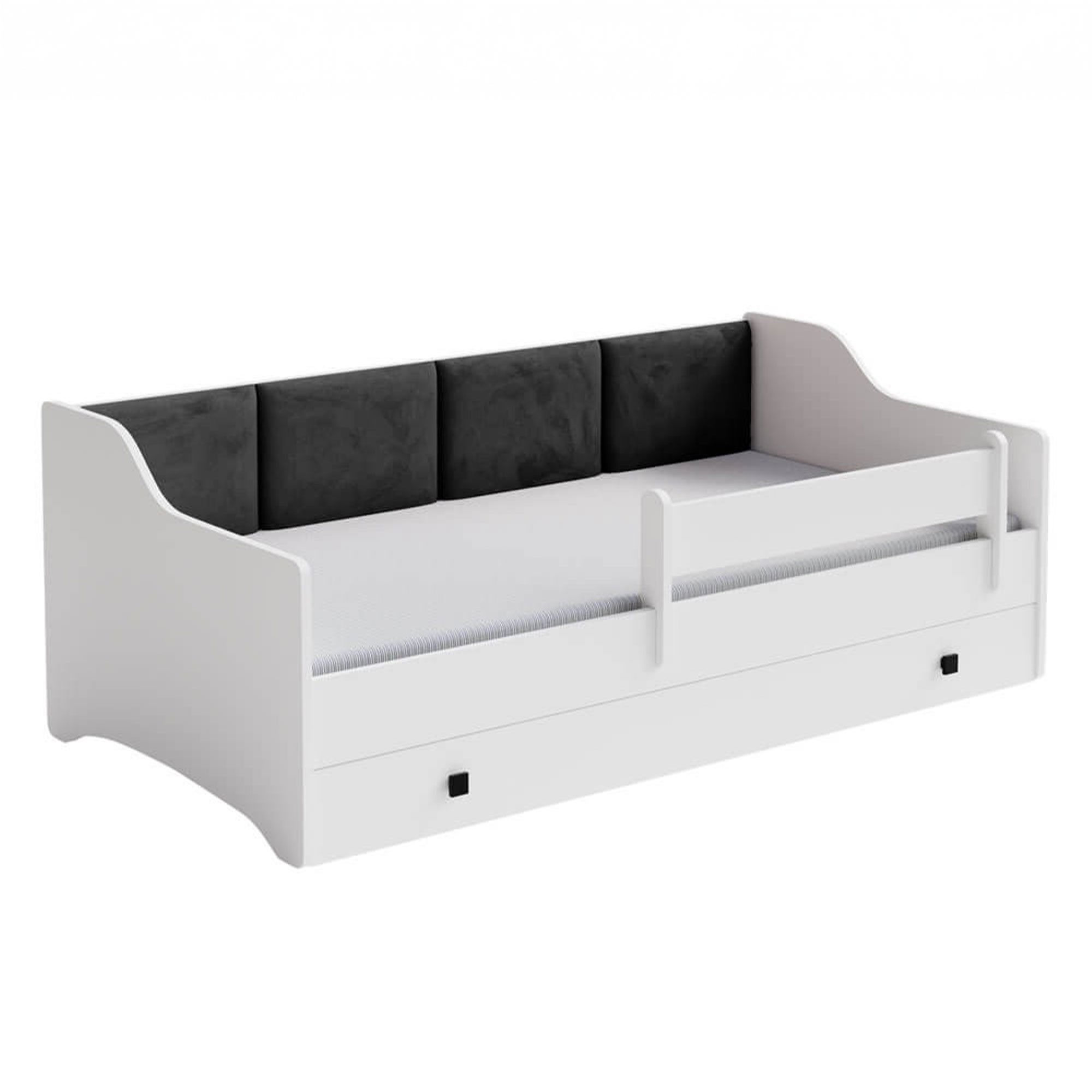 Łóżko dziecięce EMMA z szufladą i barierką 160x80 czarny uchwyt