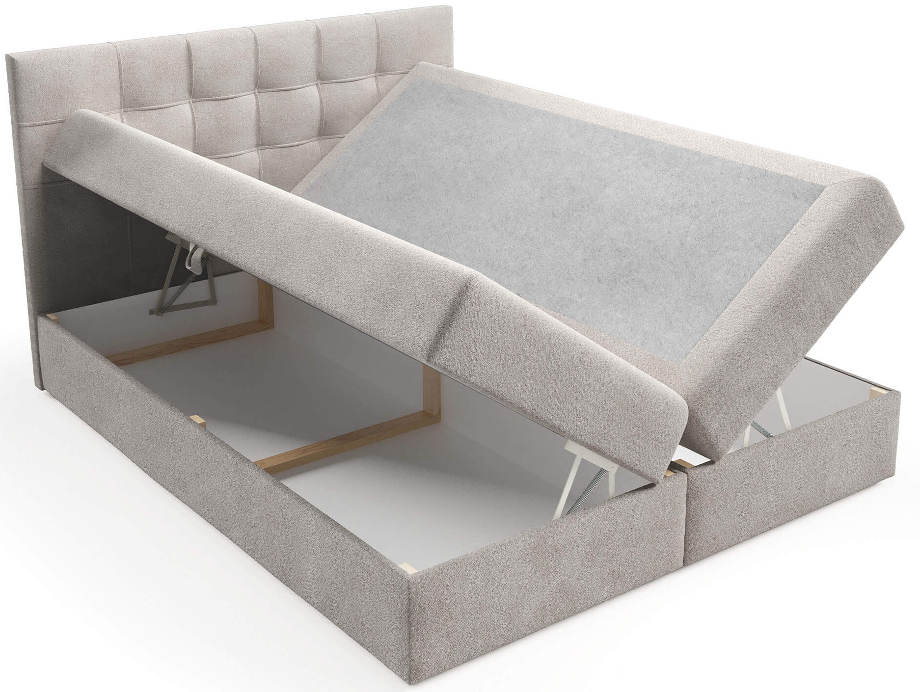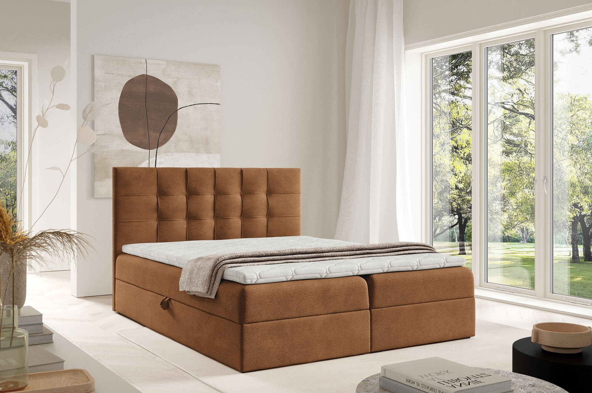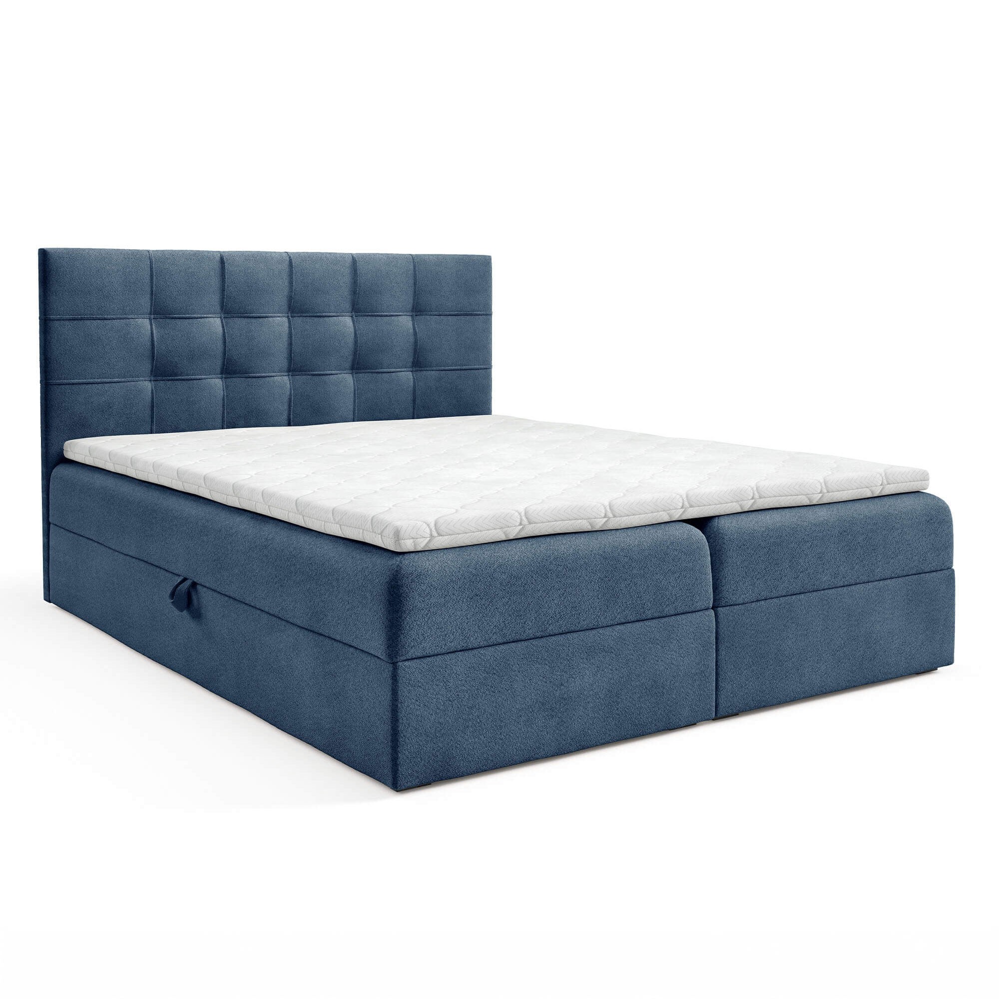 Łóżko kontynentalne TOP1 200x200 to propozycja dla osób, które cenią sobie przestrzeń, wygodę i solidne wykonanie. Jego duża powierzchnia spania gwarantuje maksymalny komfort, a dzięki zastosowaniu sprężyn typu bonell materac zapewnia idealne podparcie dla ciała i odporność na odkształcenia. Dodatkowy topper z pianki T-25 o wysokości 4 cm zwiększa miękkość i elastyczność powierzchni, sprawiając, że sen staje się jeszcze bardziej komfortowy. Łóżko zostało wyposażone w dwa pojemne schowki na pościel, które pomagają utrzymać porządek w sypialni. Dzięki zastosowaniu automatu na sprężynach dostęp do pojemników jest wyjątkowo prosty i nie wymaga wysiłku. Brak nóżek nadaje konstrukcji nowoczesny, zwarty wygląd, a plastikowe ślizgi zapewniają stabilność i ochronę podłogi. Model TOP1 200x200 to połączenie elegancji, funkcjonalności i komfortu, które idealnie sprawdzi się w dużych sypialniach. Starannie wykonane detale i możliwość wyboru koloru tapicerki pozwalają dopasować łóżko do każdego wnętrza. To mebel, który łączy estetykę z praktycznością, oferując idealne miejsce do codziennego wypoczynku.