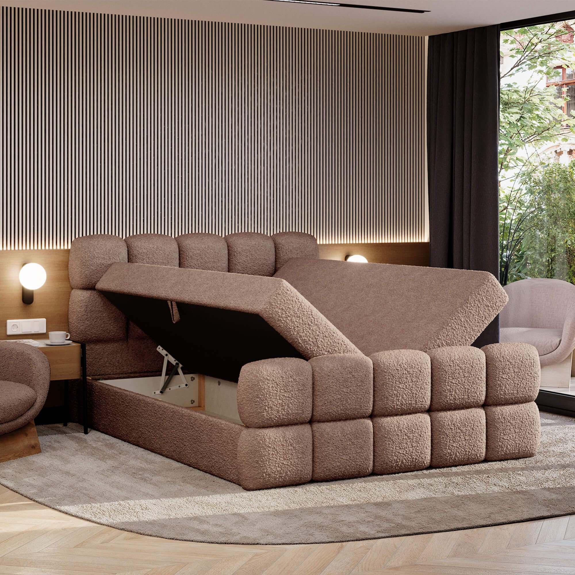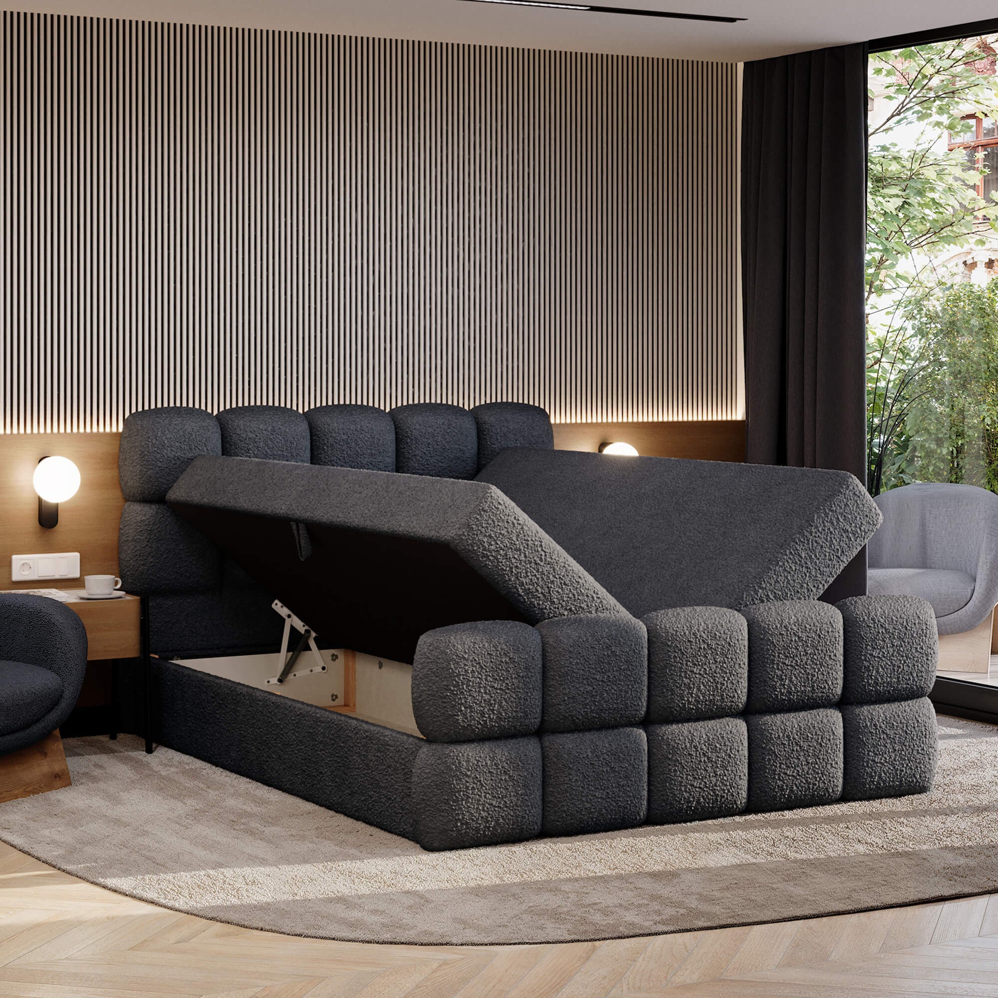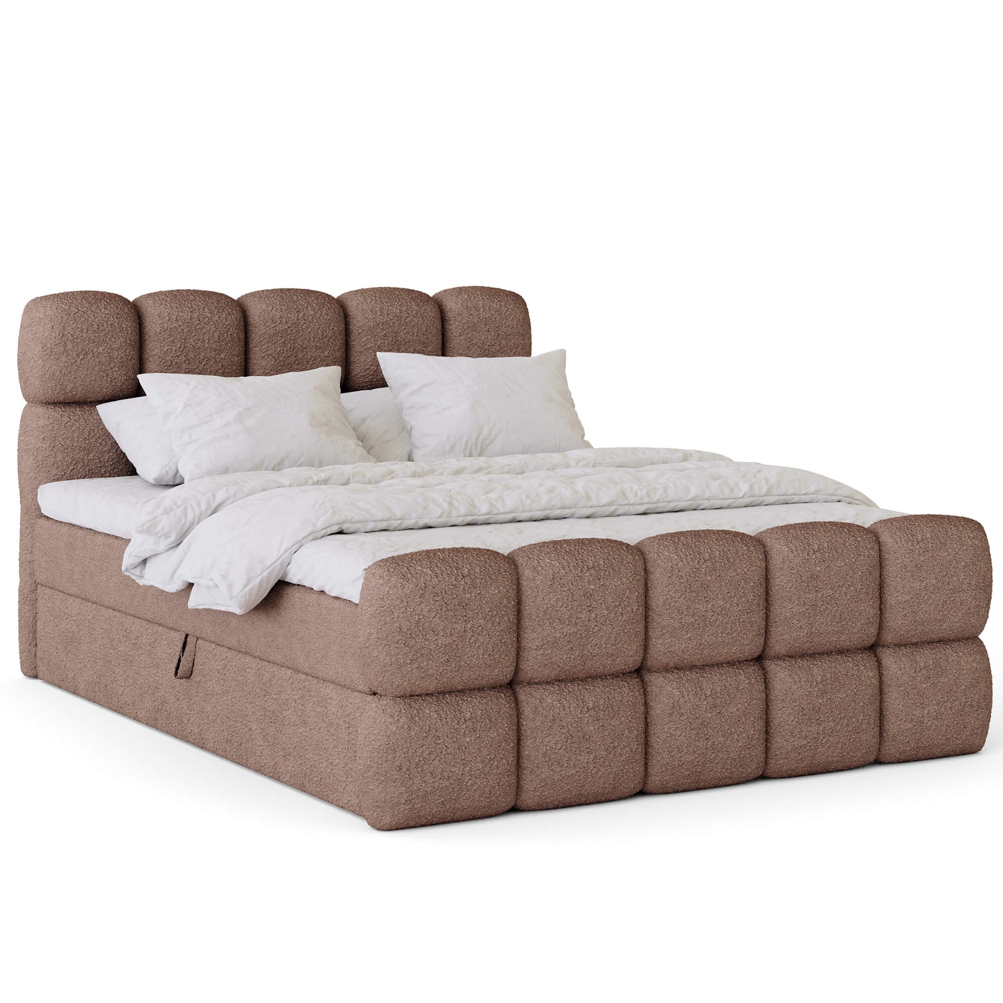 Łóżko kontynentalne VALENTINO 120x200 to stylowe i praktyczne rozwiązanie do nowoczesnej sypialni. Wysoki komfort użytkowania zapewnia połączenie sprężyn bonellowych z elastycznym topperem z pianki T25, który wspiera ciało i poprawia jakość snu. Dwa duże pojemniki na pościel pozwalają na wygodne przechowywanie kołder i poduszek, a dzięki zastosowanemu automatowi na sprężynach otwieranie ich jest szybkie i lekkie. Model VALENTINO wyróżnia się eleganckim designem – ozdobne pikowania na wezgłowiu i przednim panelu nadają mu wyjątkowego charakteru. Brak tradycyjnych nóżek sprawia, że całość prezentuje się masywnie i nowocześnie, a plastikowy ślizg zapewnia stabilność. To idealny wybór dla osób ceniących wygodę, funkcjonalność i stylowy wygląd. Dzięki szerokiemu wyborowi kolorów łóżko można dopasować do każdego wnętrza – od klasycznych po nowoczesne aranżacje. To mebel, który łączy komfort snu z elegancją i trwałym wykonaniem.