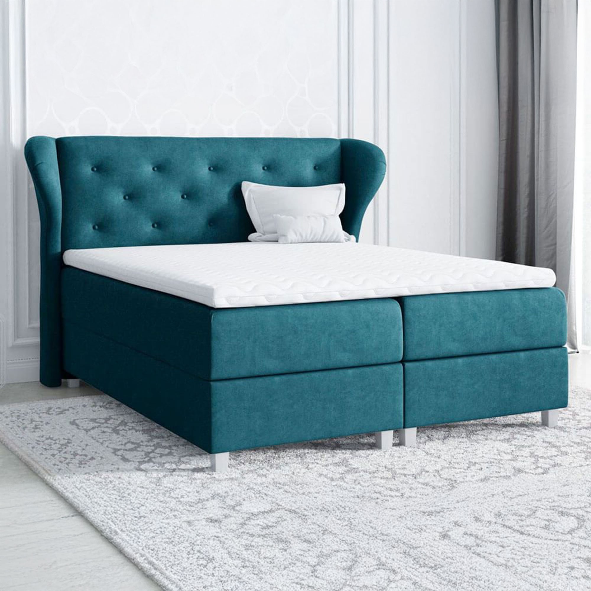 Łóżko kontynentalne z pojemnikiem BAKARAT, materac, topper | 160x200 | Kolor do wyboru