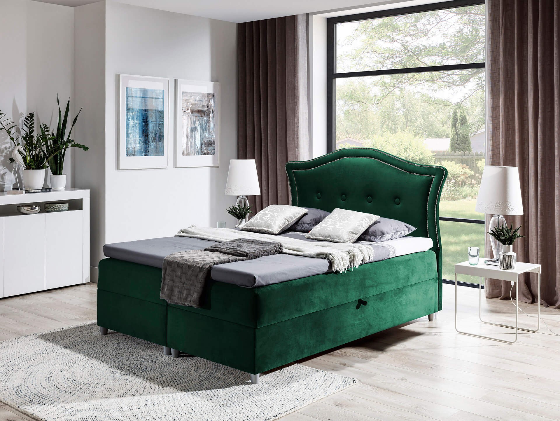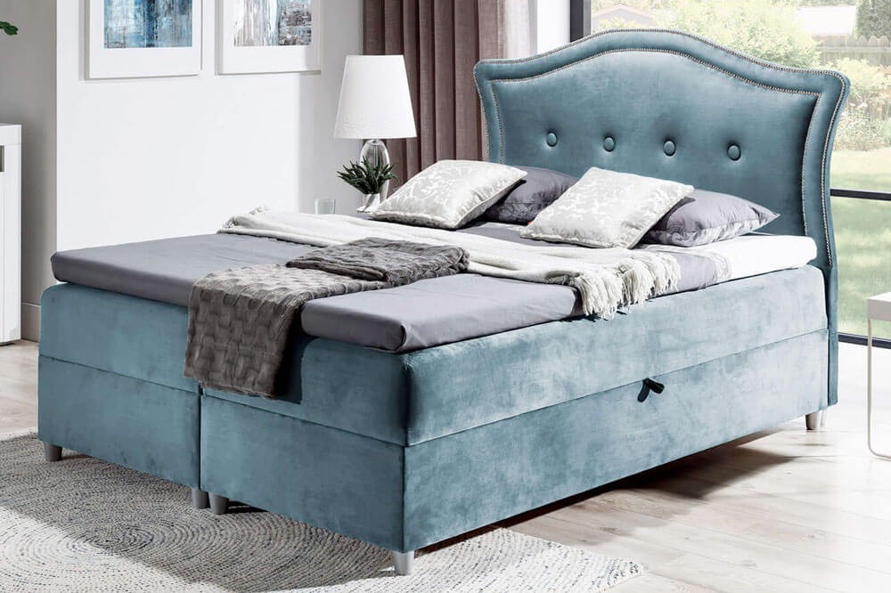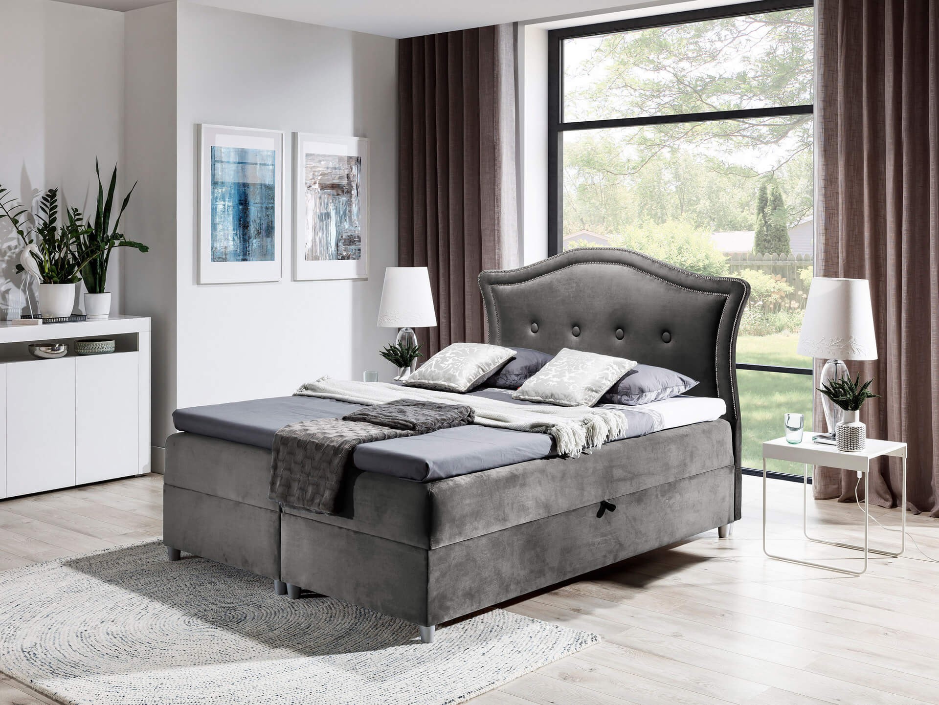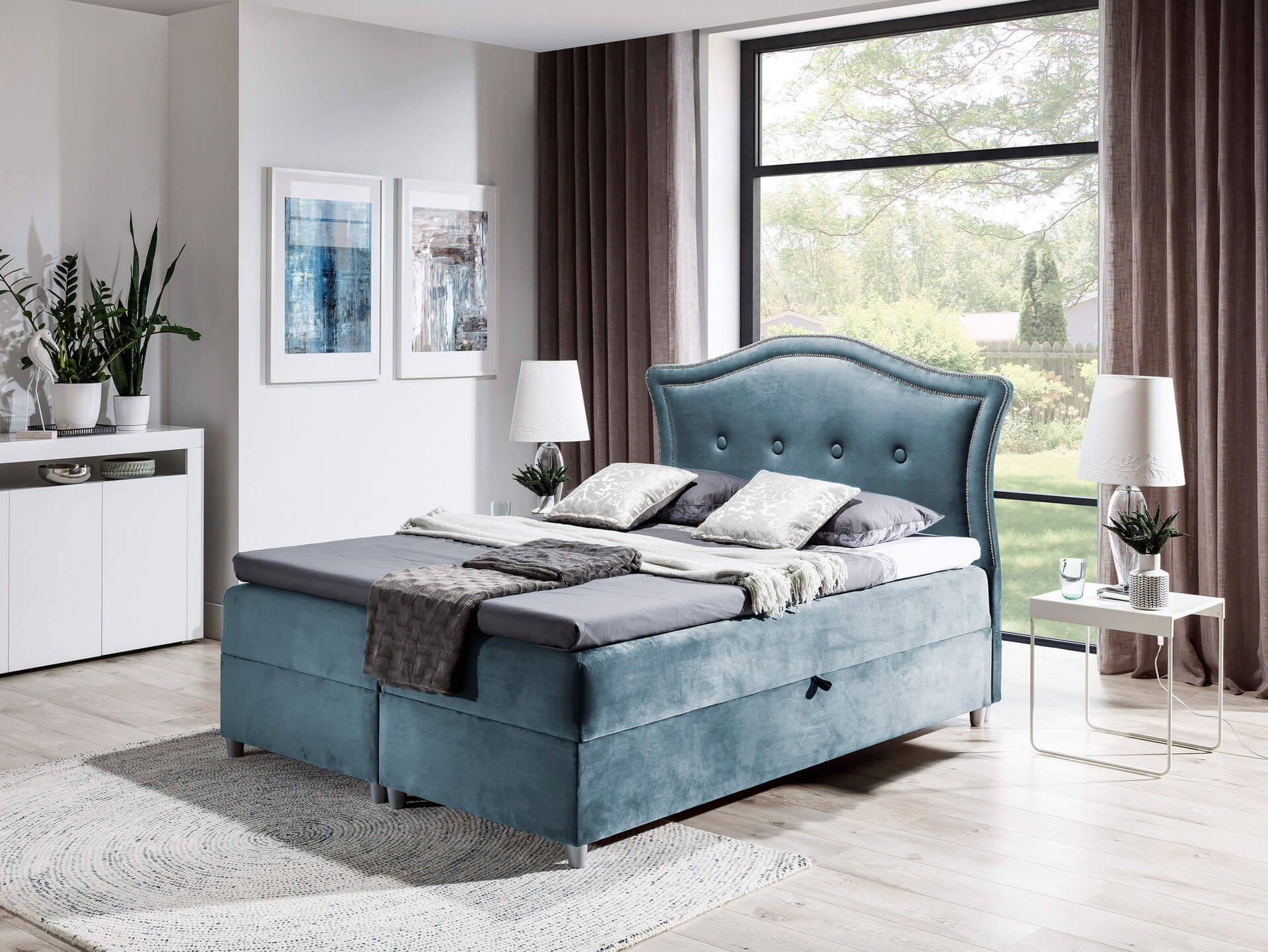 Łóżko kontynentalne BEDRAN to doskonały wybór dla każdego, kto poszukuje połączenia elegancji z nowoczesną funkcjonalnością. Jego wyjątkowy design harmonijnie komponuje się z różnorodnymi stylami wnętrz, dodając im szyku i klasy. Zagłówek zdobiony cekinami przyciąga wzrok i stanowi elegancki element dekoracyjny w pomieszczeniu. Funkcjonalność łóżka BEDRAN to też podwójny pojemnik na pościel otwierany po bokach dzięki automatom na sprężynach.