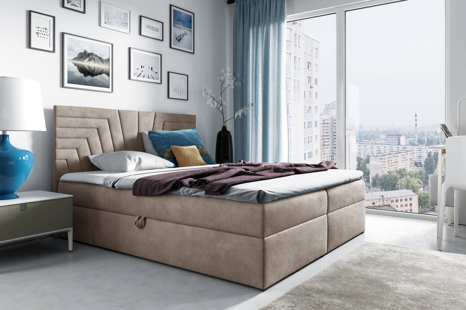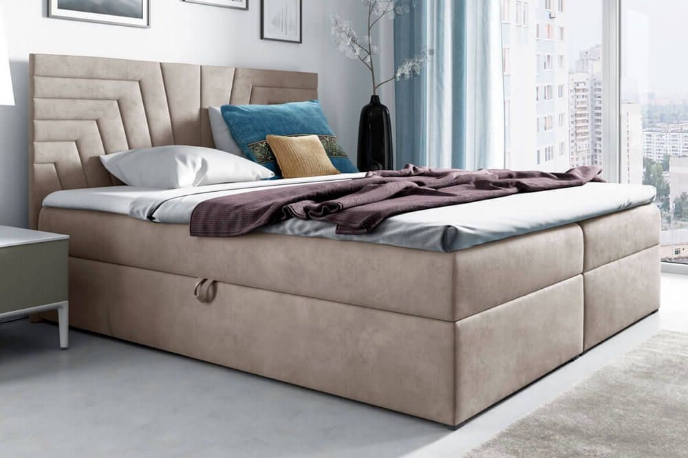Łóżko kontynentalne z pojemnikiem BOX 4, materac, topper | 120x200 | Kolor do wyboru
