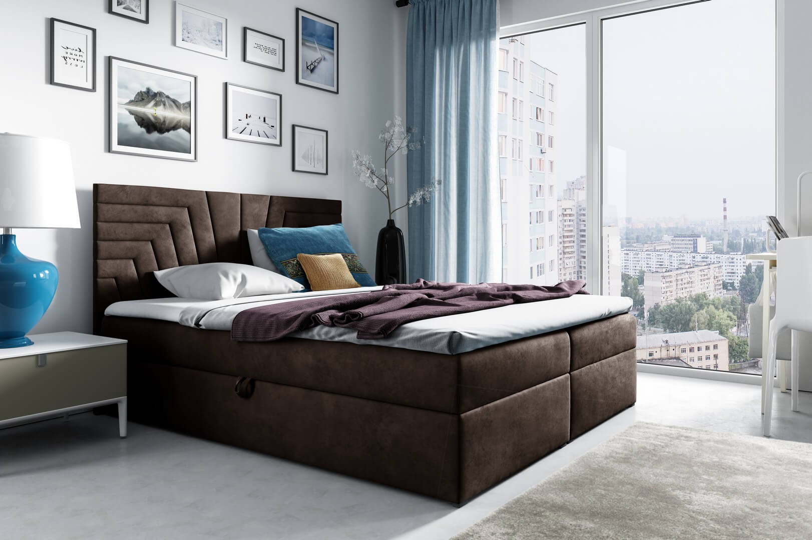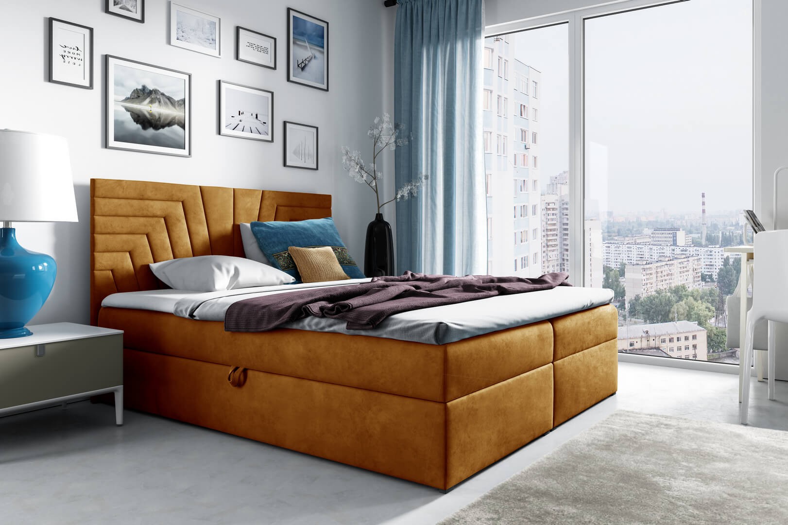 Idealna sypialnia to przede wszystkim wygodne łóżko, które znacząco poprawia komfort snu. Każdemu w końcu zależy na tym, aby wypocząć po całym dniu pracy. Łóżko kontynentalne 120x200 BOX 4 / z pojemnikiem znakomicie wkomponuje się w każde wnętrze, bez względu na to, czy zostało ono zachowane w stylu boho, nowoczesnym czy industrialnym. Pikowany zagłówek sprawia, że łóżko nabiera przytulnego, pełnego wyrazu. Natomiast ciekawe zdobienia nadają sypialni charakteru. W takim miejscu aż chce się spać. Wystarczy, że dopasujesz odpowiednie tekstylia i sypialnia jak ze snów będzie gotowa.