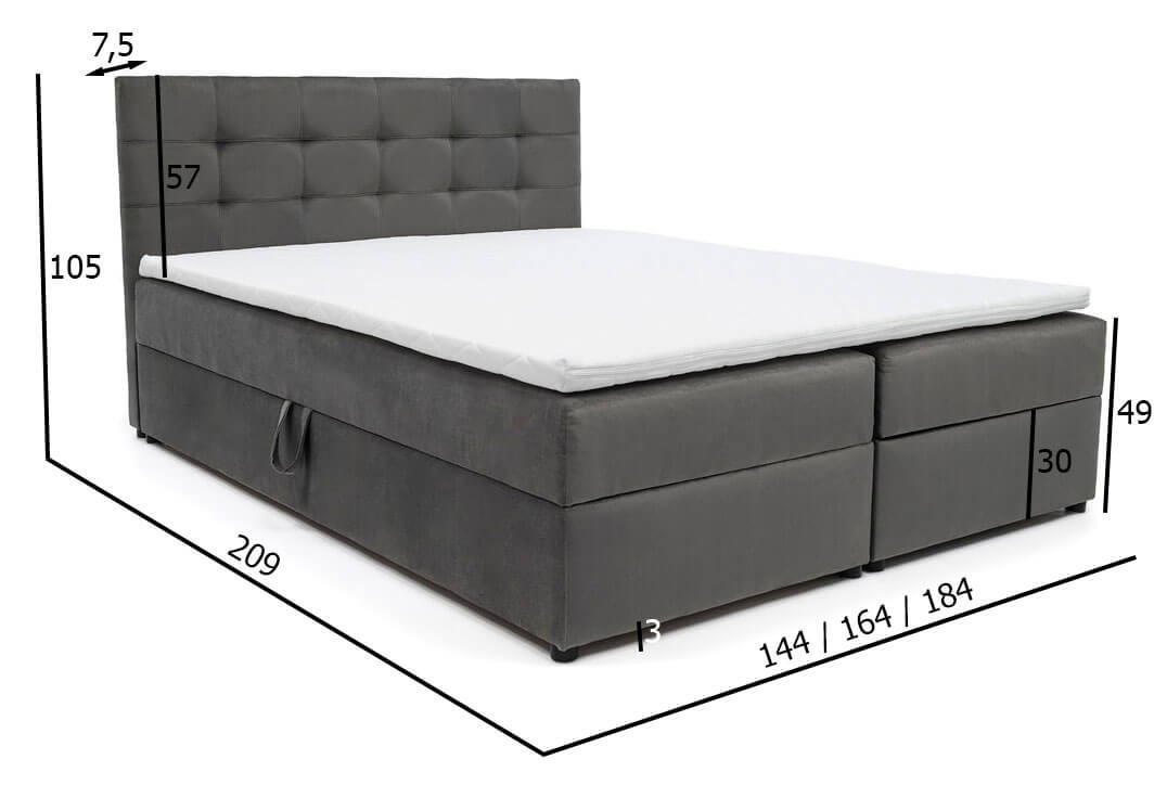 Łóżko kontynentalne z pojemnikiem CORA , topper | 140x200 | Kolor do wyboru