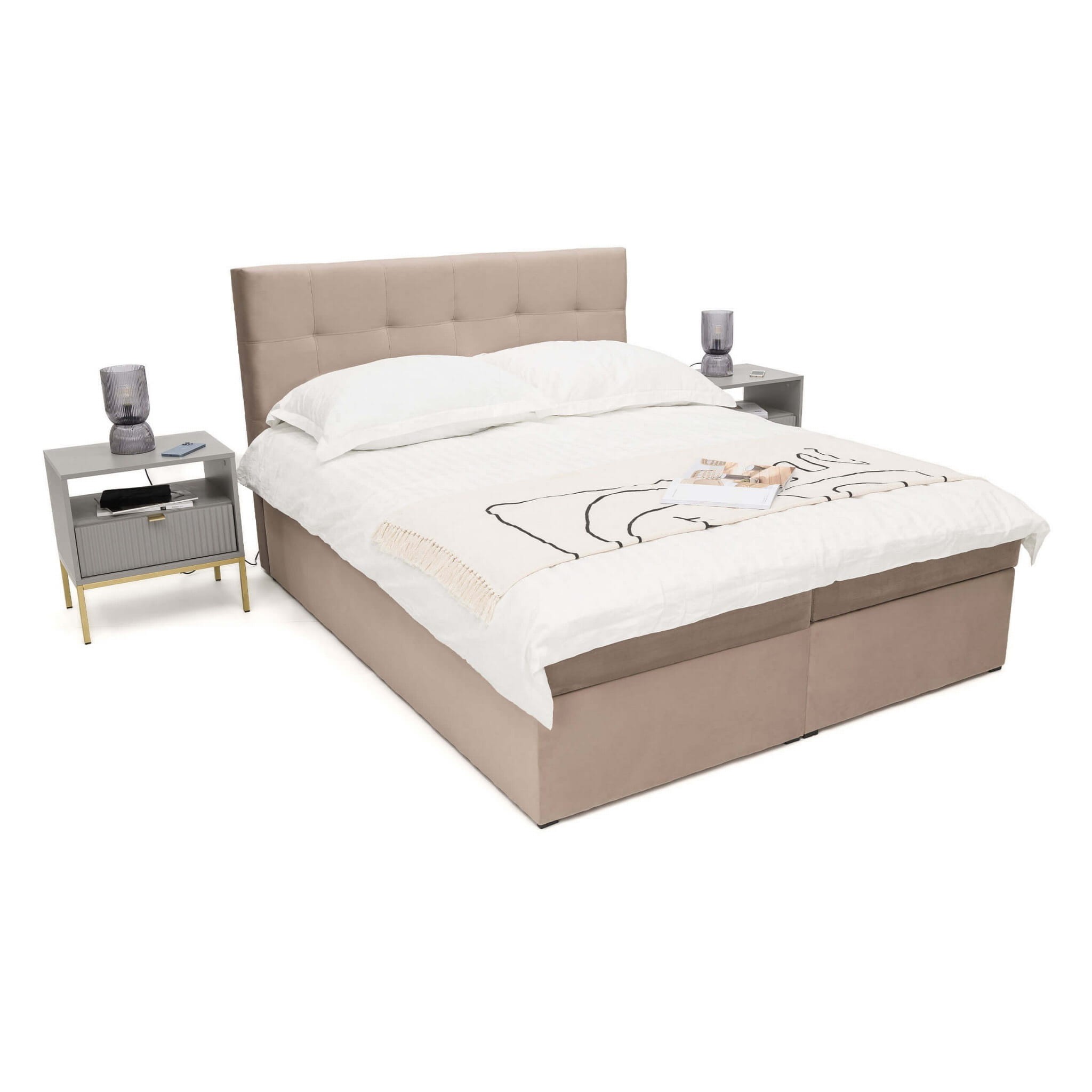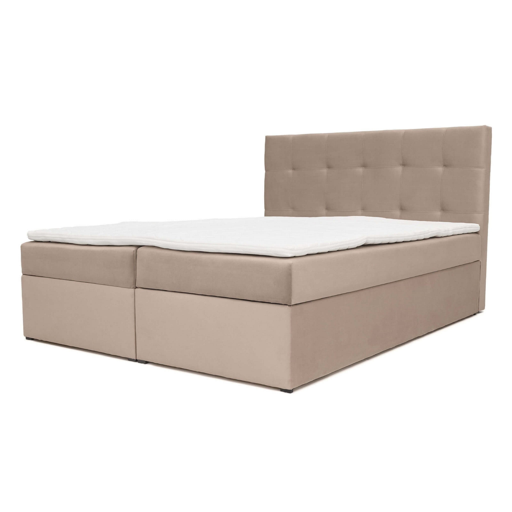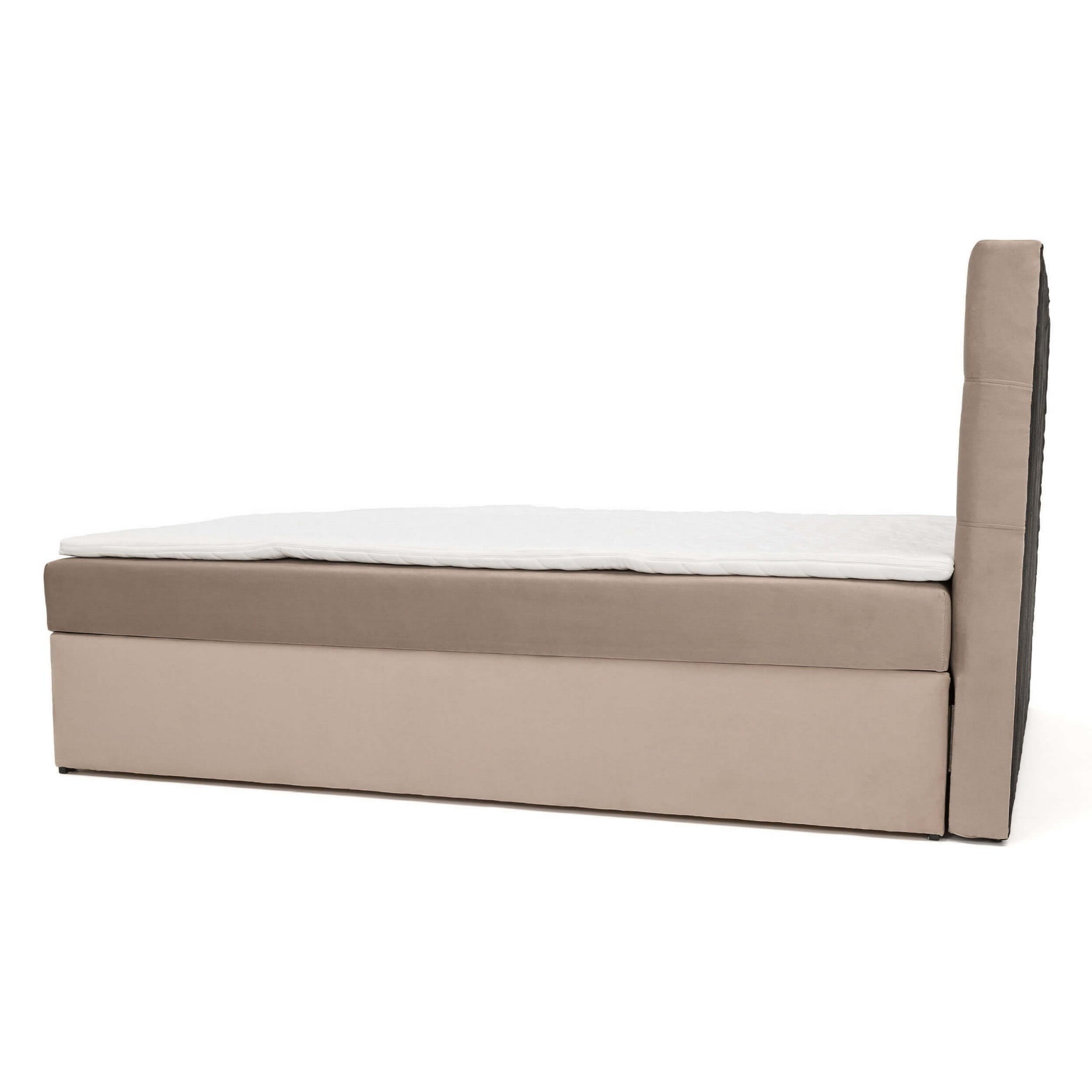 Łóżko kontynentalne z pojemnikiem CORA | 140x200 | Ciemny beżowy | Topper