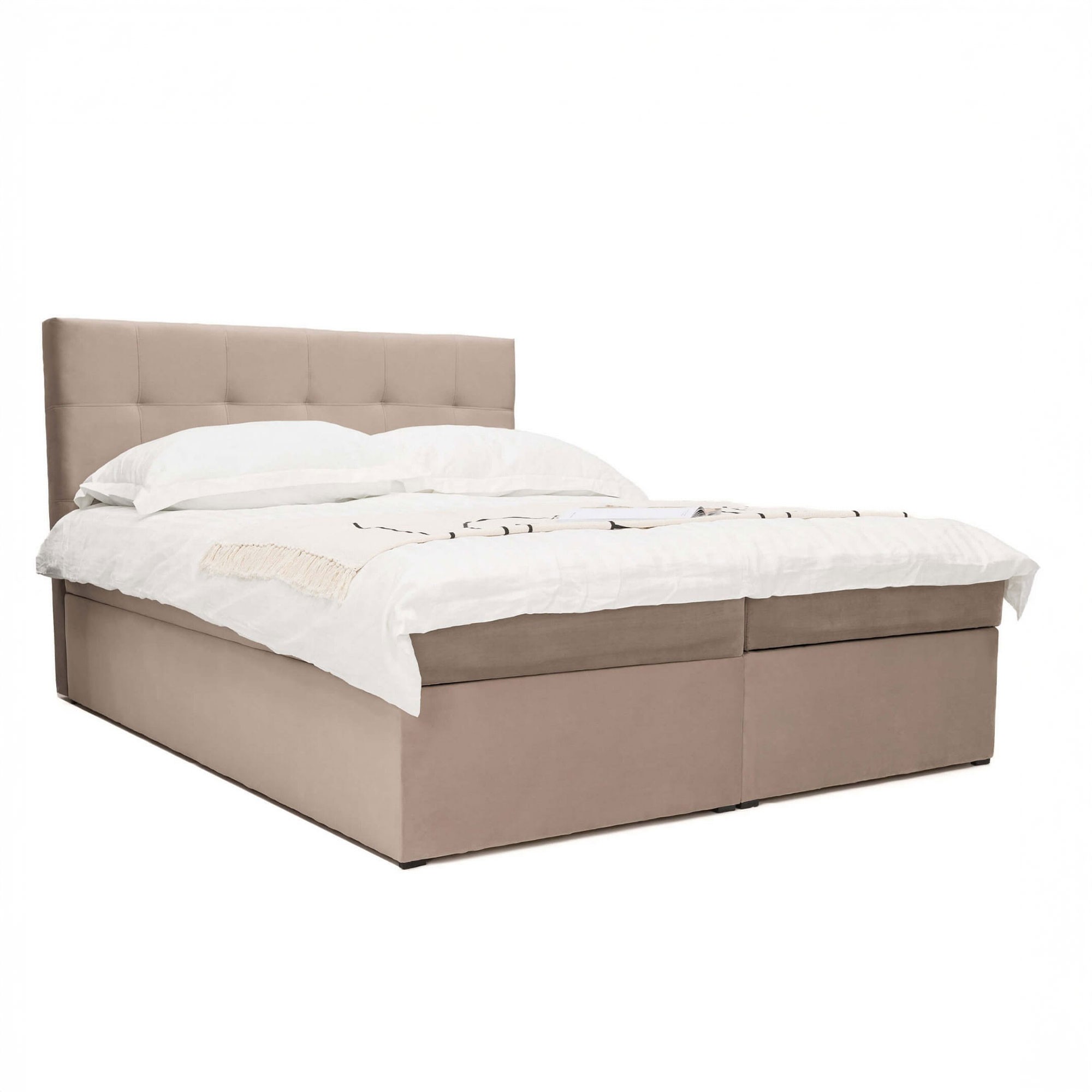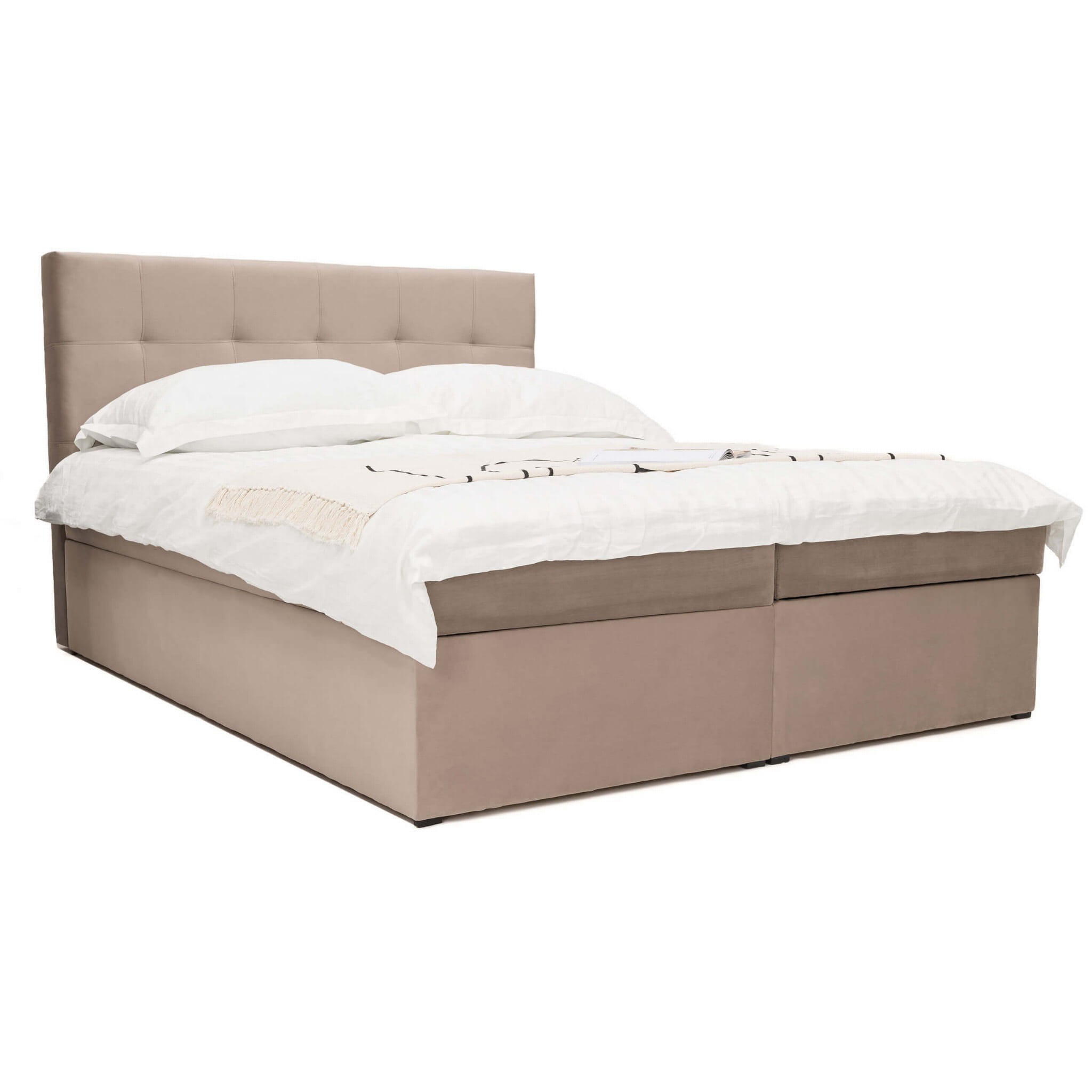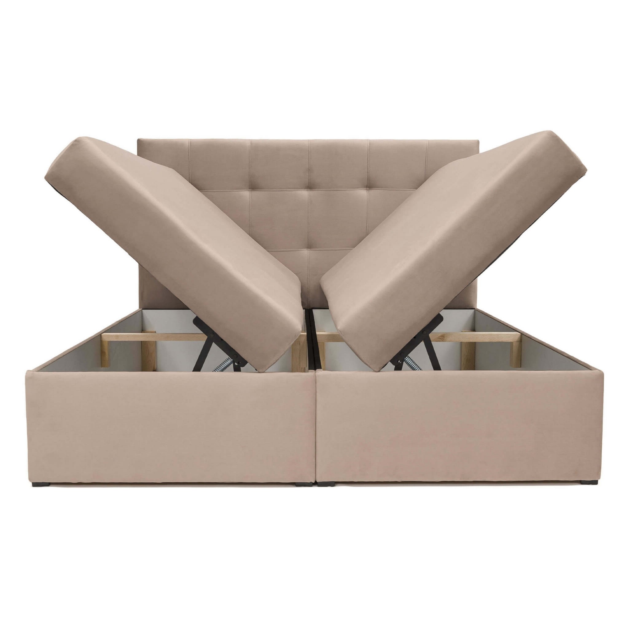 Łóżko kontynentalne z pojemnikiem CORA | 140x200 | Ciemny beżowy | Topper