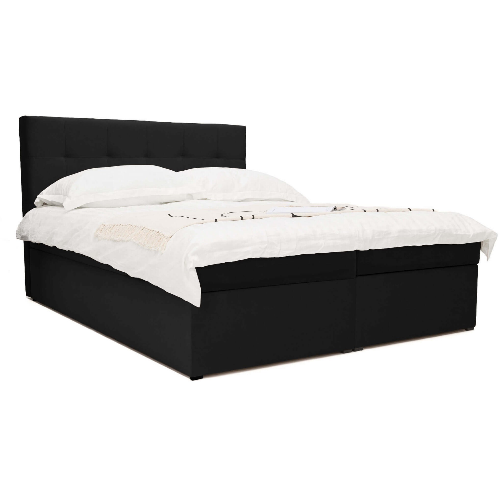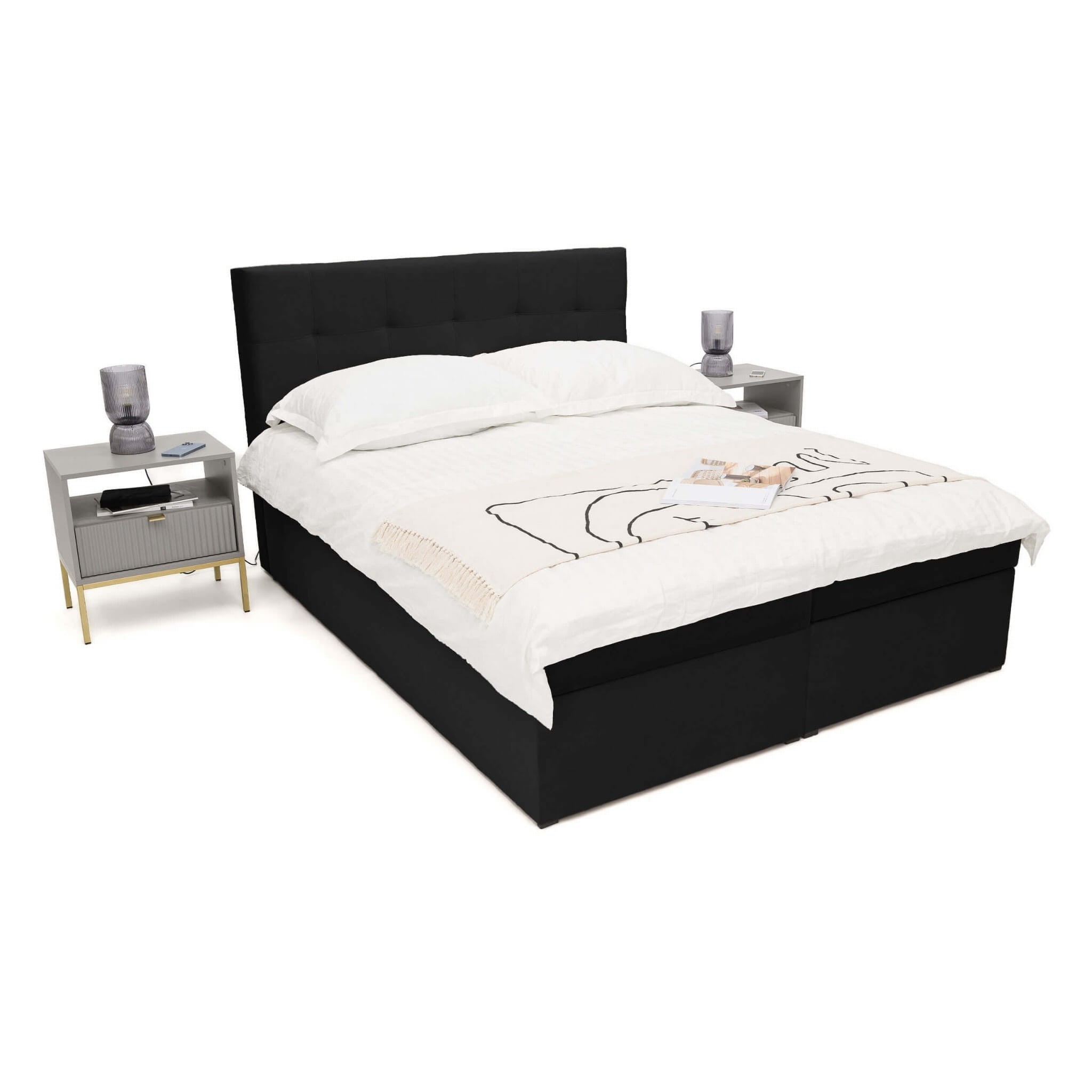 Łóżko kontynentalne z pojemnikiem CORA | 140x200 | Czarny | Topper