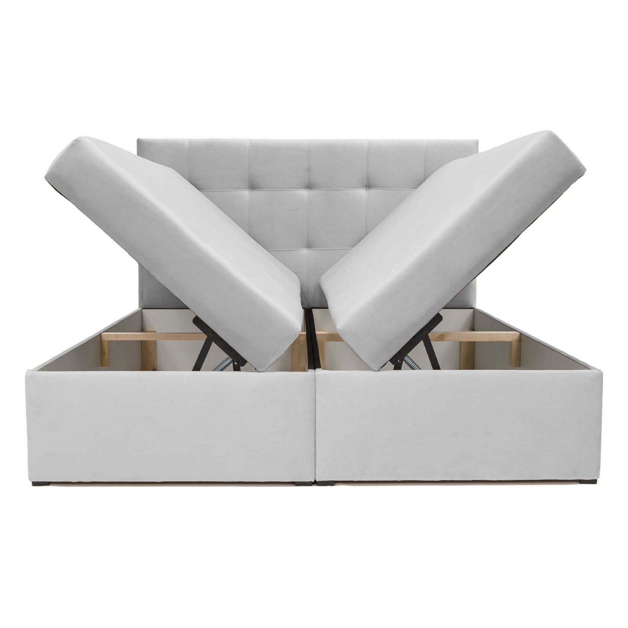 Łóżko kontynentalne z pojemnikiem CORA | 140x200 | Jasny szary | Topper