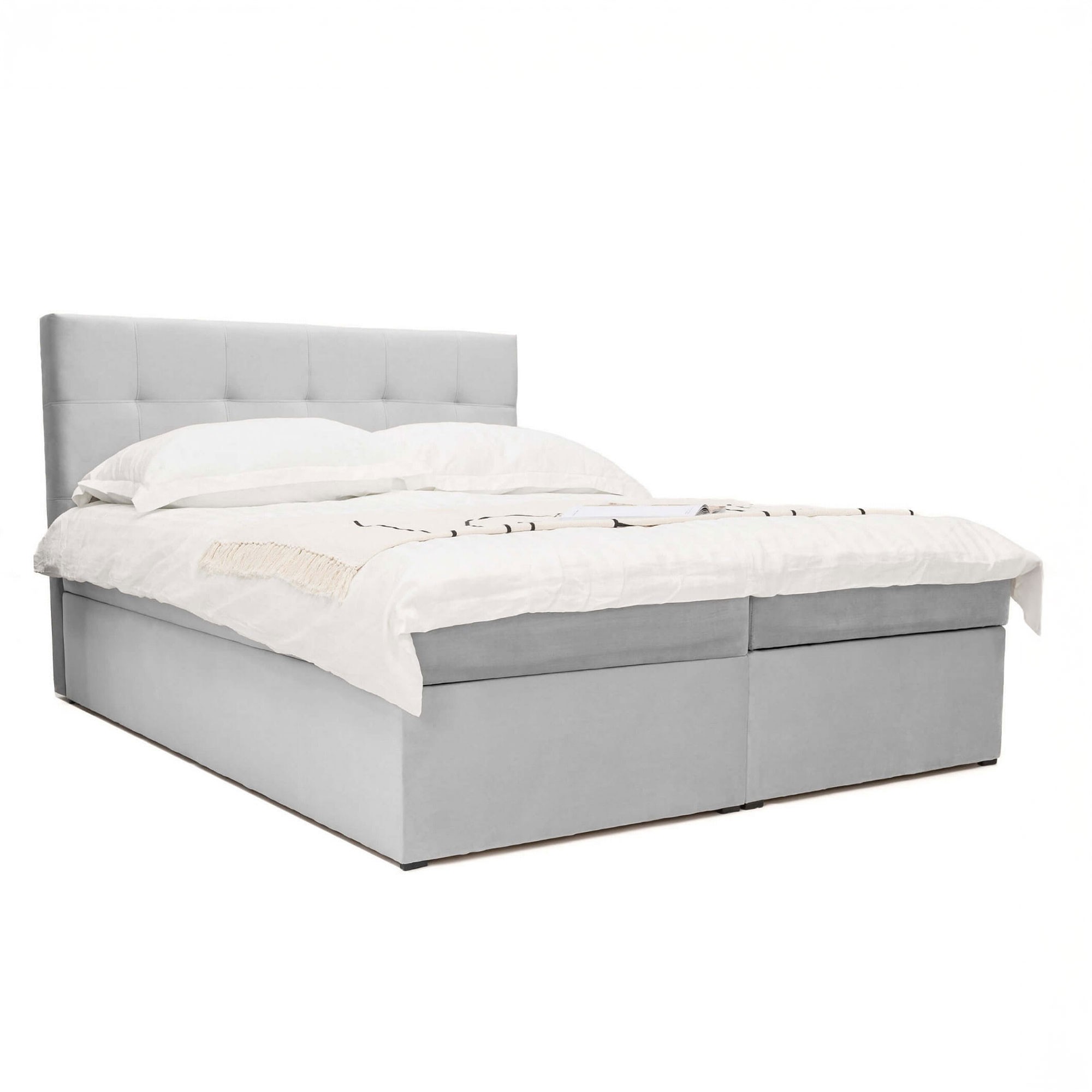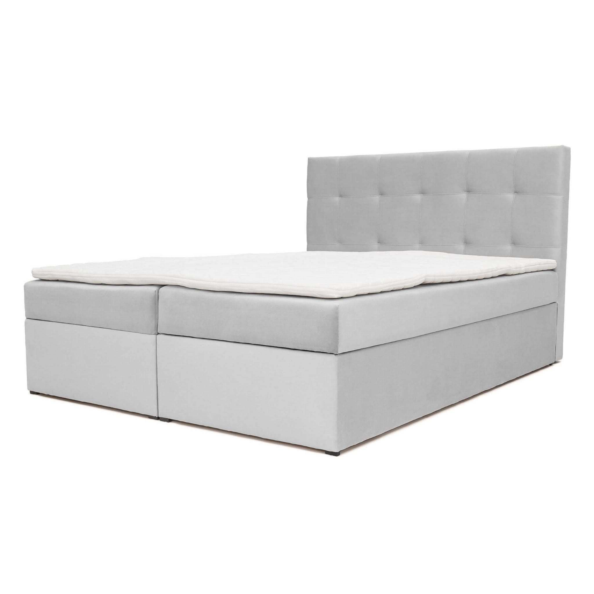 Łóżko kontynentalne z pojemnikiem CORA | 160x200 | Jasny szary | Topper