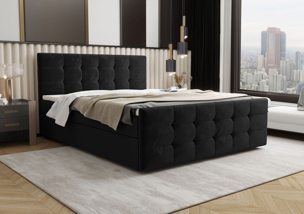 Łóżko kontynentalne z pojemnikiem CORA-2 o wymiarach 140x200 cm to idealny wybór dla osób poszukujących połączenia nowoczesnego designu, wygody i funkcjonalności. Starannie zaprojektowane i solidnie wykonane, doskonale sprawdzi się zarówno w klasycznych, jak i nowoczesnych aranżacjach wnętrz. Dzięki możliwości wyboru koloru tapicerki, łóżko z łatwością dopasujesz do wystroju swojej sypialni, nadając jej indywidualny, dopracowany charakter. Mebel oparty jest na wytrzymałej konstrukcji wykonanej z drewna i płyty meblowej, co zapewnia stabilność i trwałość przez długie lata użytkowania. Jednym z największych atutów modelu CORA-2 jest praktyczny pojemnik na pościel, który pomieści dodatkowe kołdry, poduszki czy sezonową odzież. Dostęp do schowka ułatwia mechanizm podnoszenia ze wspomaganiem gazowym – rozwiązanie wygodne i bezpieczne w codziennym użytkowaniu. Łóżko tapicerowane zostało miękkim welurem, który nie tylko świetnie się prezentuje, ale także podnosi komfort wypoczynku. Wypełnienie z wysoko elastycznej pianki sprawia, że zarówno wezgłowie, jak i boki łóżka są przyjemne w dotyku i wygodne w użytkowaniu. Eleganckie pikowanie w formie kwadratów zdobi zarówno wezgłowie, jak i front mebla, nadając całości wyjątkowego charakteru. Zastosowanie dyskretnych uchwytów oraz niewidocznych nóżek pozwala utrzymać minimalistyczną formę, jednocześnie zapewniając pełną funkcjonalność. Model CORA-2 to idealna propozycja dla osób, które cenią sobie wysoki standard wykonania, wygodę oraz estetykę. To łóżko, które nie tylko pięknie wygląda, ale przede wszystkim gwarantuje komfortowy sen i maksymalne wykorzystanie przestrzeni w sypialni. Jeśli szukasz mebla, który łączy praktyczność z elegancją, łóżko kontynentalne CORA-2 140x200 cm będzie doskonałym wyborem.