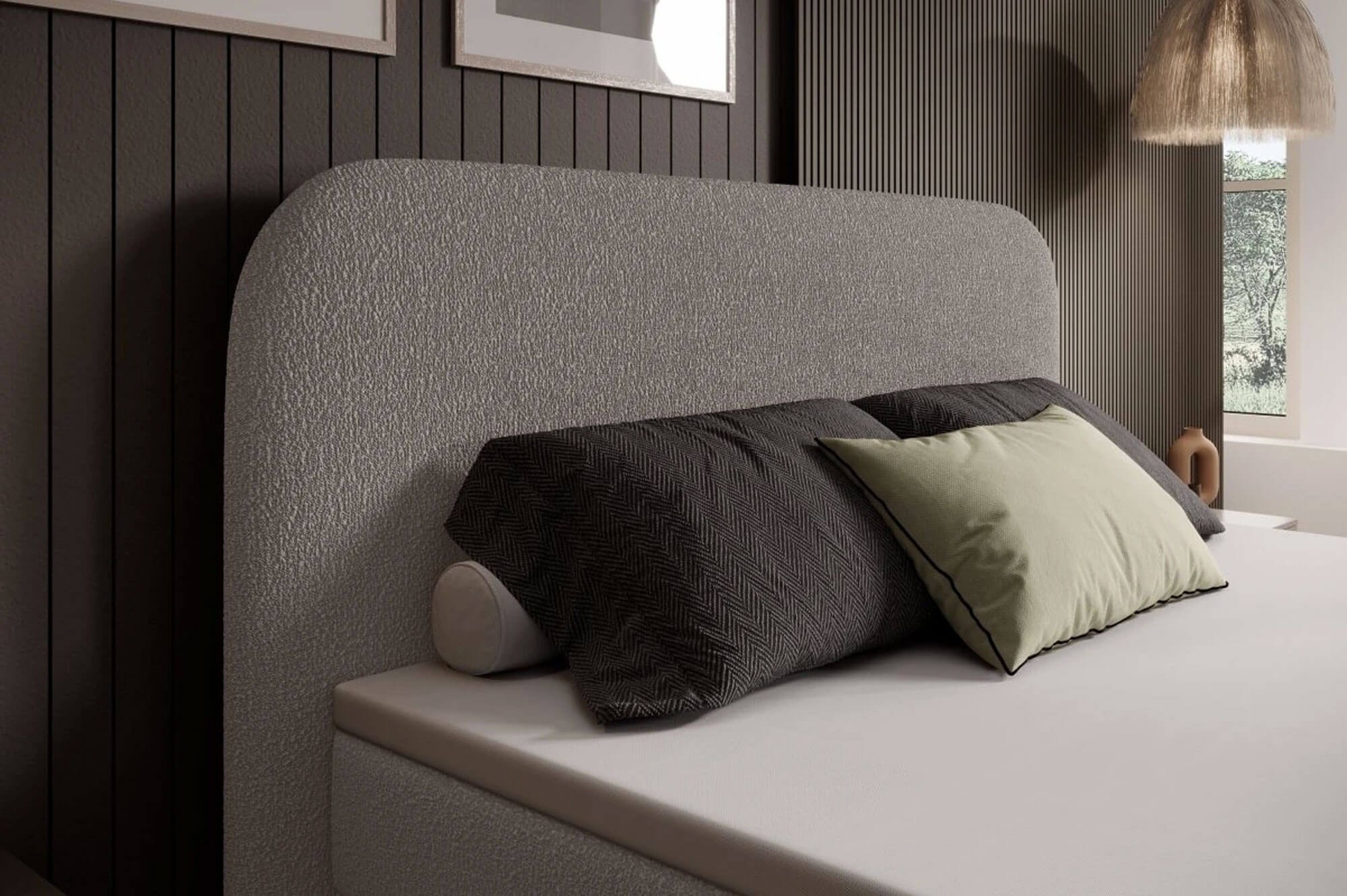 Zagłowie o nowoczesnym kształcie podkreśla stylowy charakter mebla i sprawia, że łóżko GAVIN staje się centralnym punktem każdej sypialni. Wysokość spania wynosząca około 55 cm zwiększa komfort użytkowania, zwłaszcza dla osób starszych lub mających problemy z kręgosłupem.